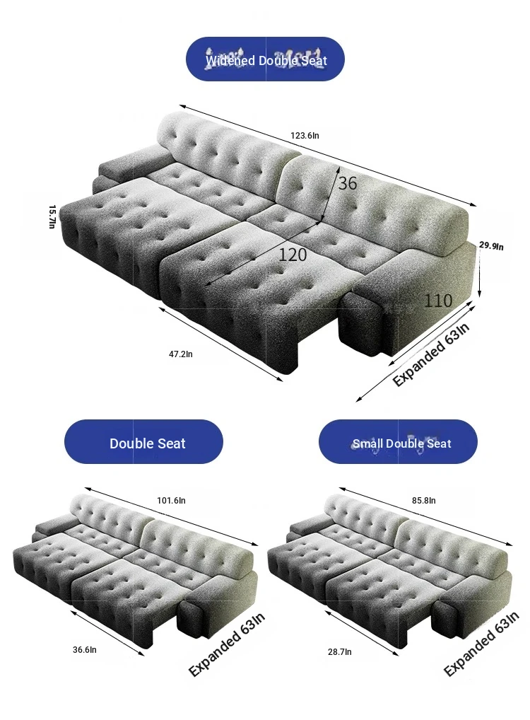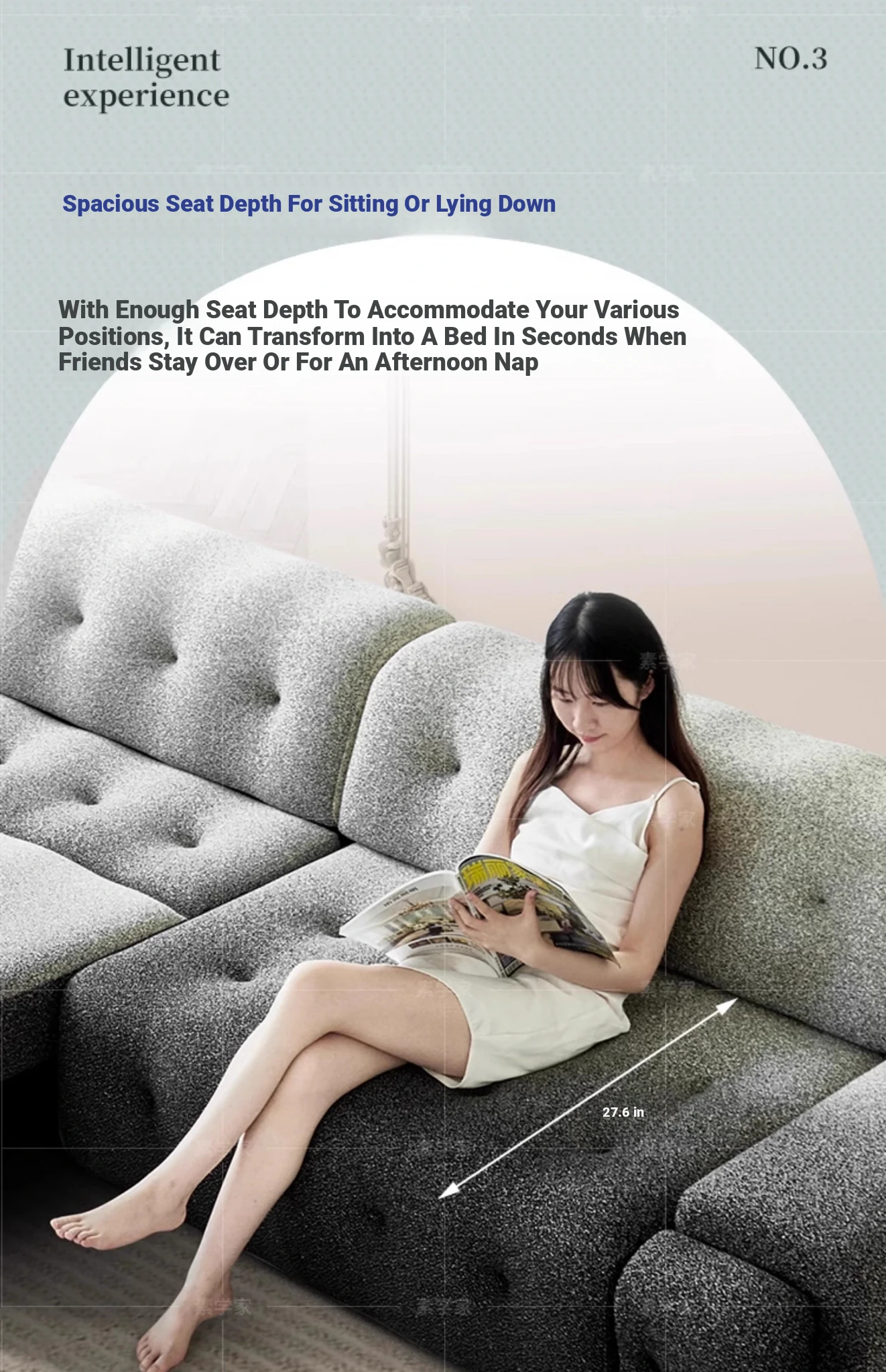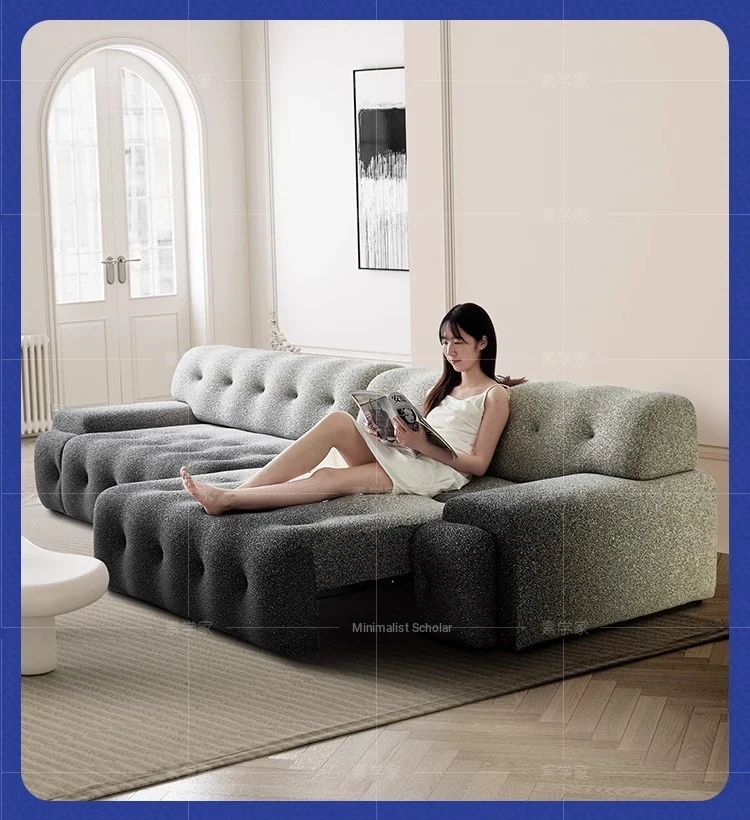 Modern Minimalist Gradient Color Reclining Sofa Bed - Versatile Italian Design with Expandable Functionality and Stylish Fabric Upholstery