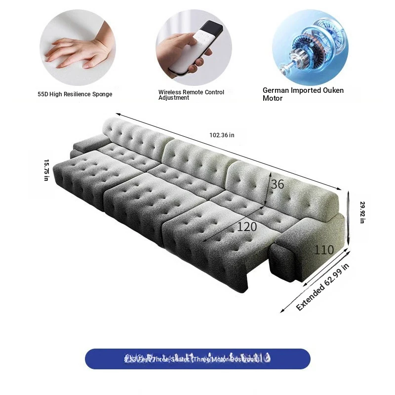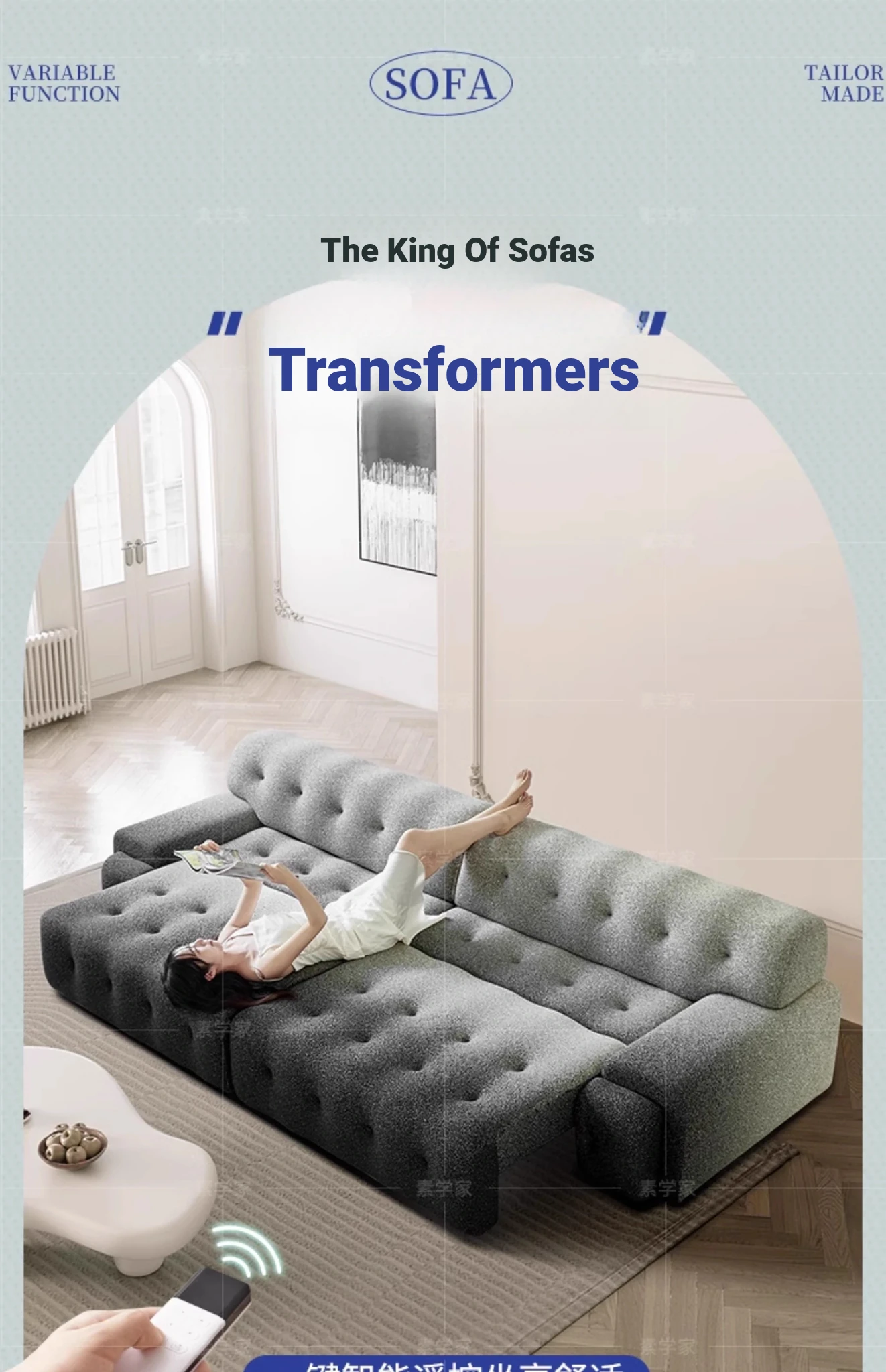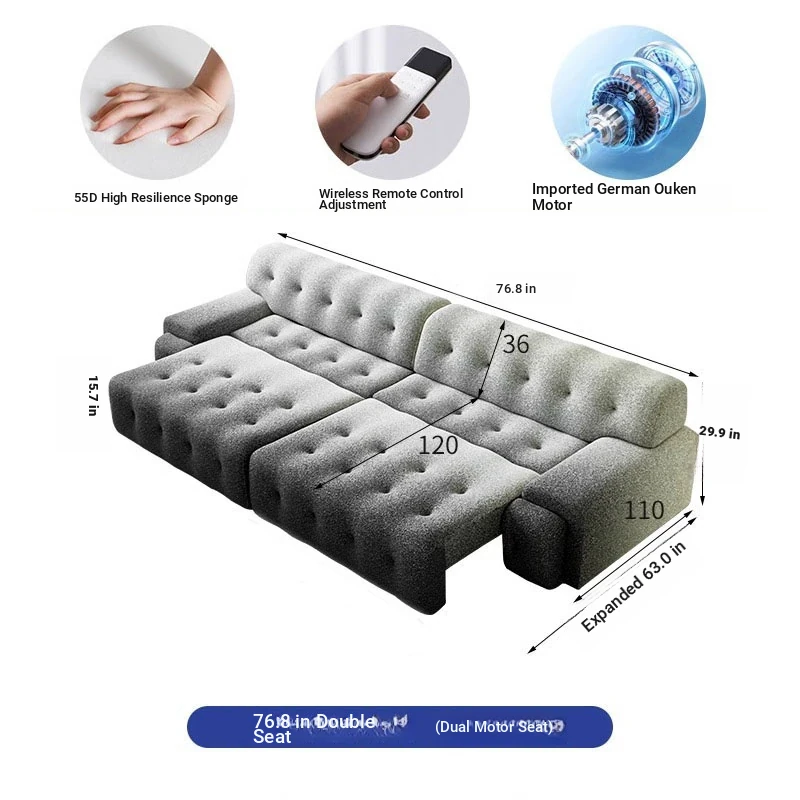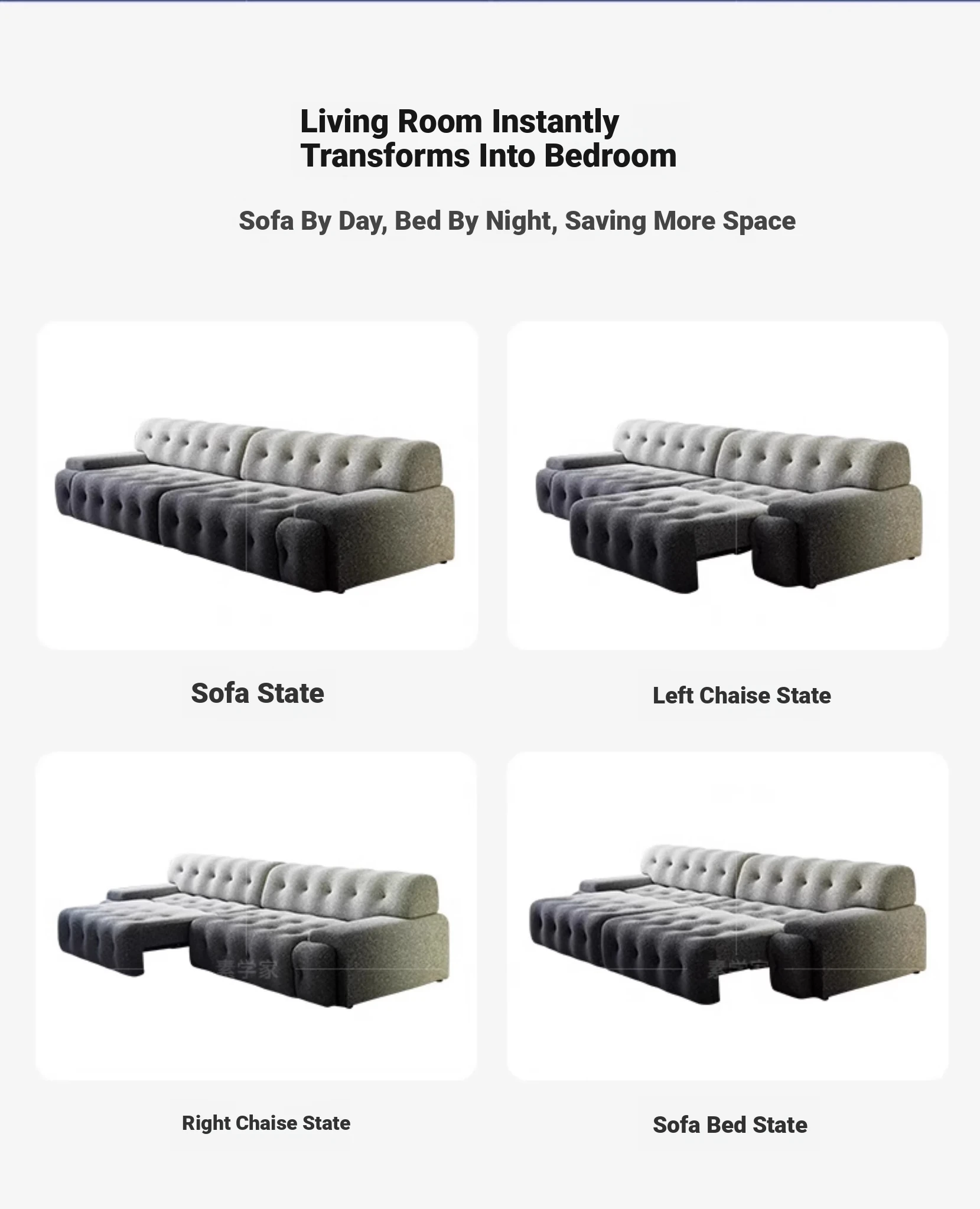 Modern Minimalist Gradient Color Reclining Sofa Bed - Versatile Italian Design with Expandable Functionality and Stylish Fabric Upholstery