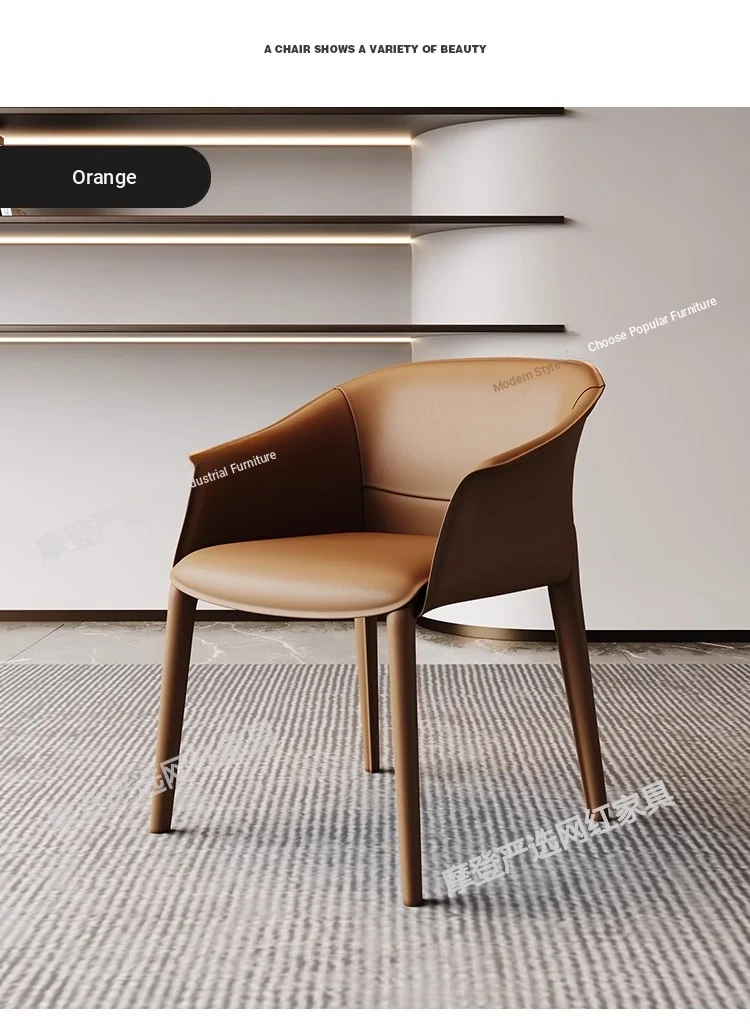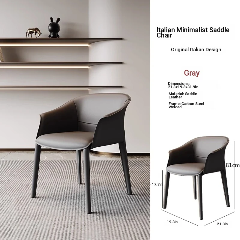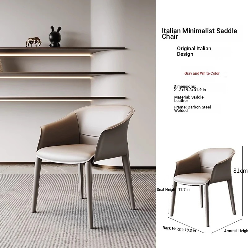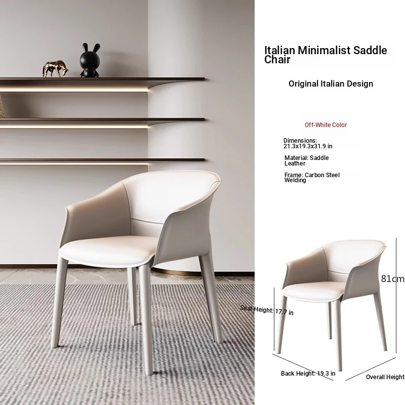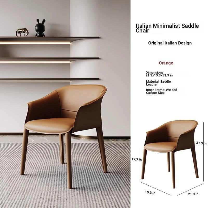 Modern Minimalist Saddle Leather Dining Chair - Elegant Armchair for Home Use, Stylish Tea Chair with Italian Design, Perfect for Dining Room and Study