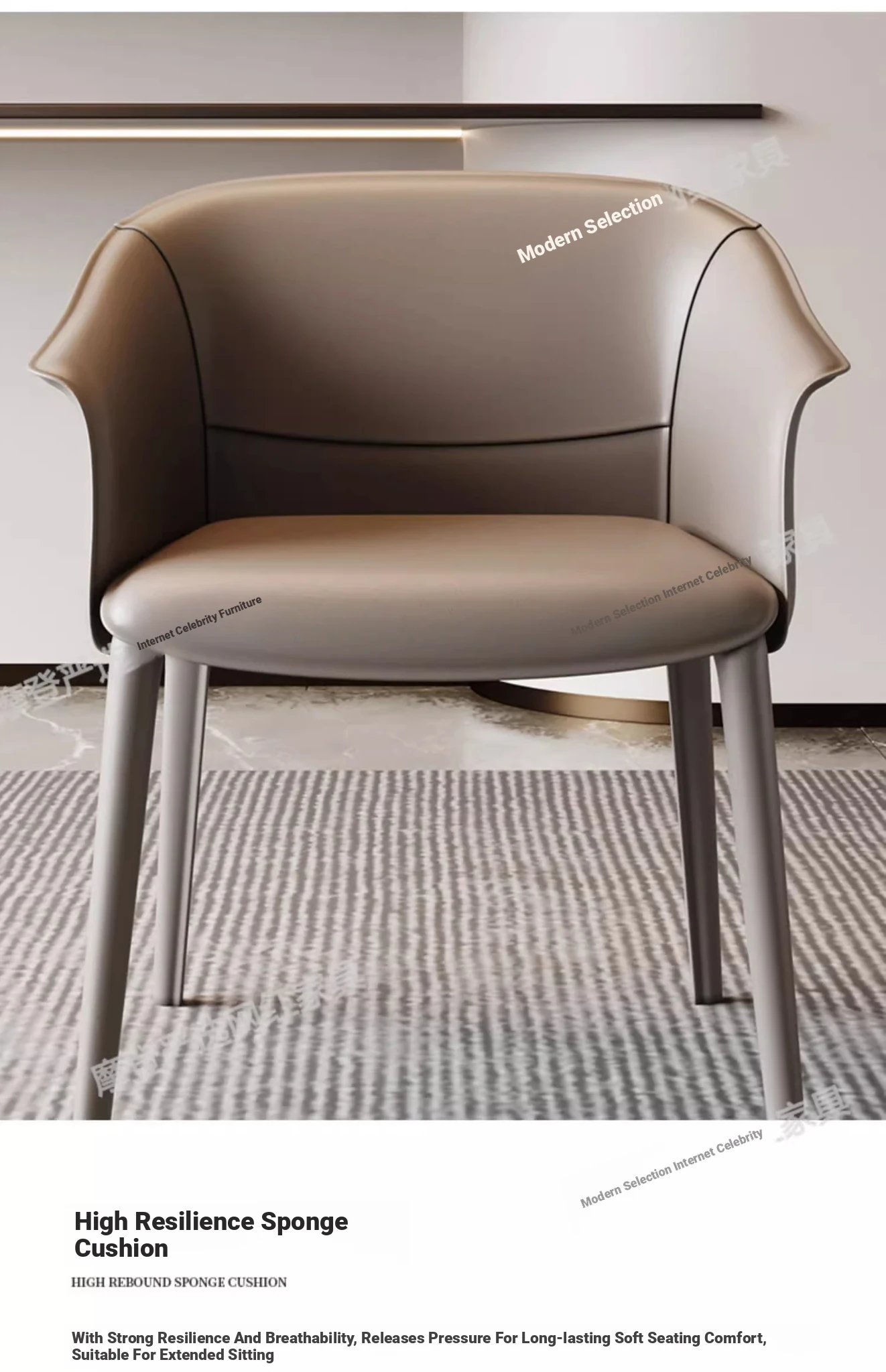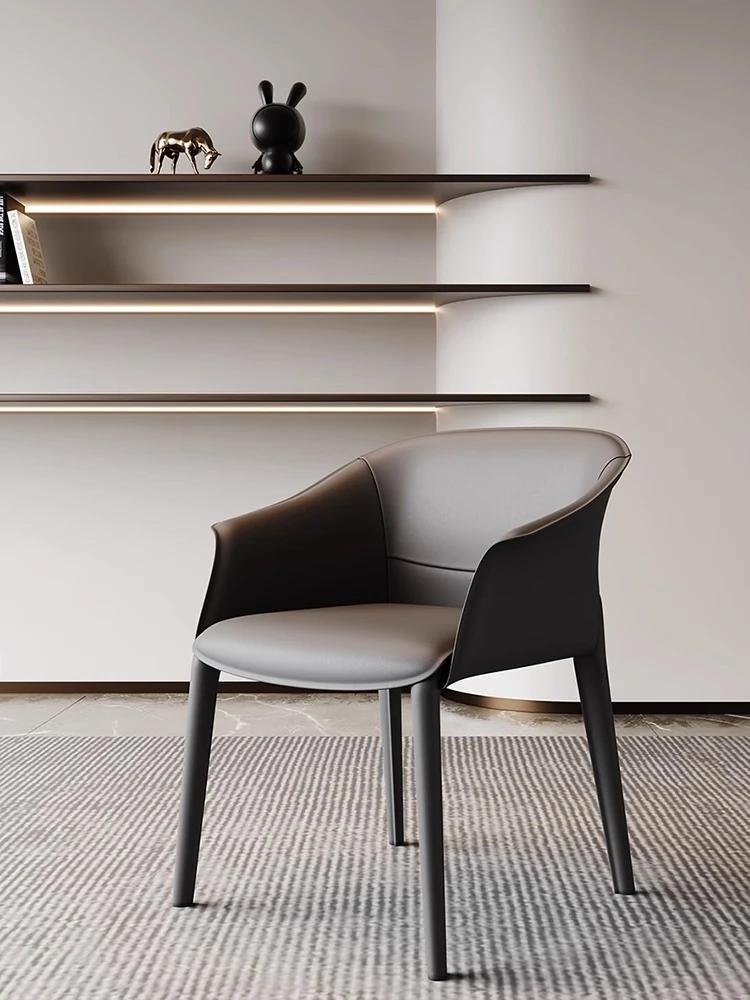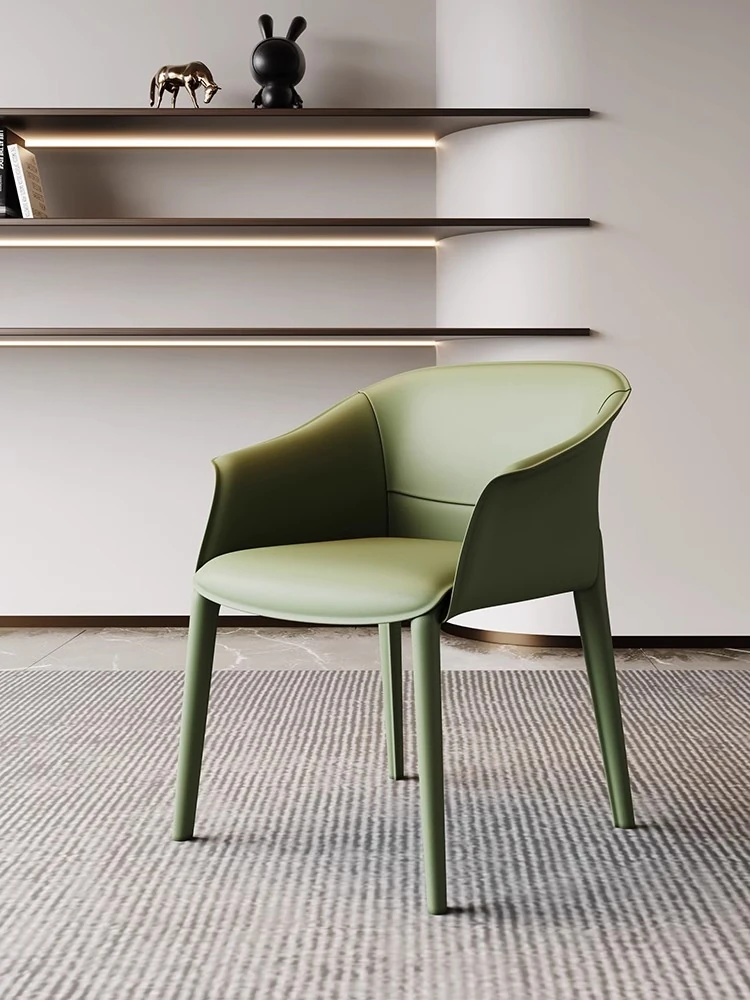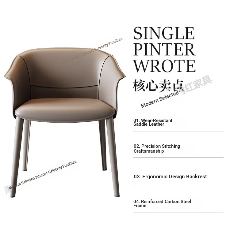 Modern Minimalist Saddle Leather Dining Chair - Elegant Armchair for Home Use, Stylish Tea Chair with Italian Design, Perfect for Dining Room and Study