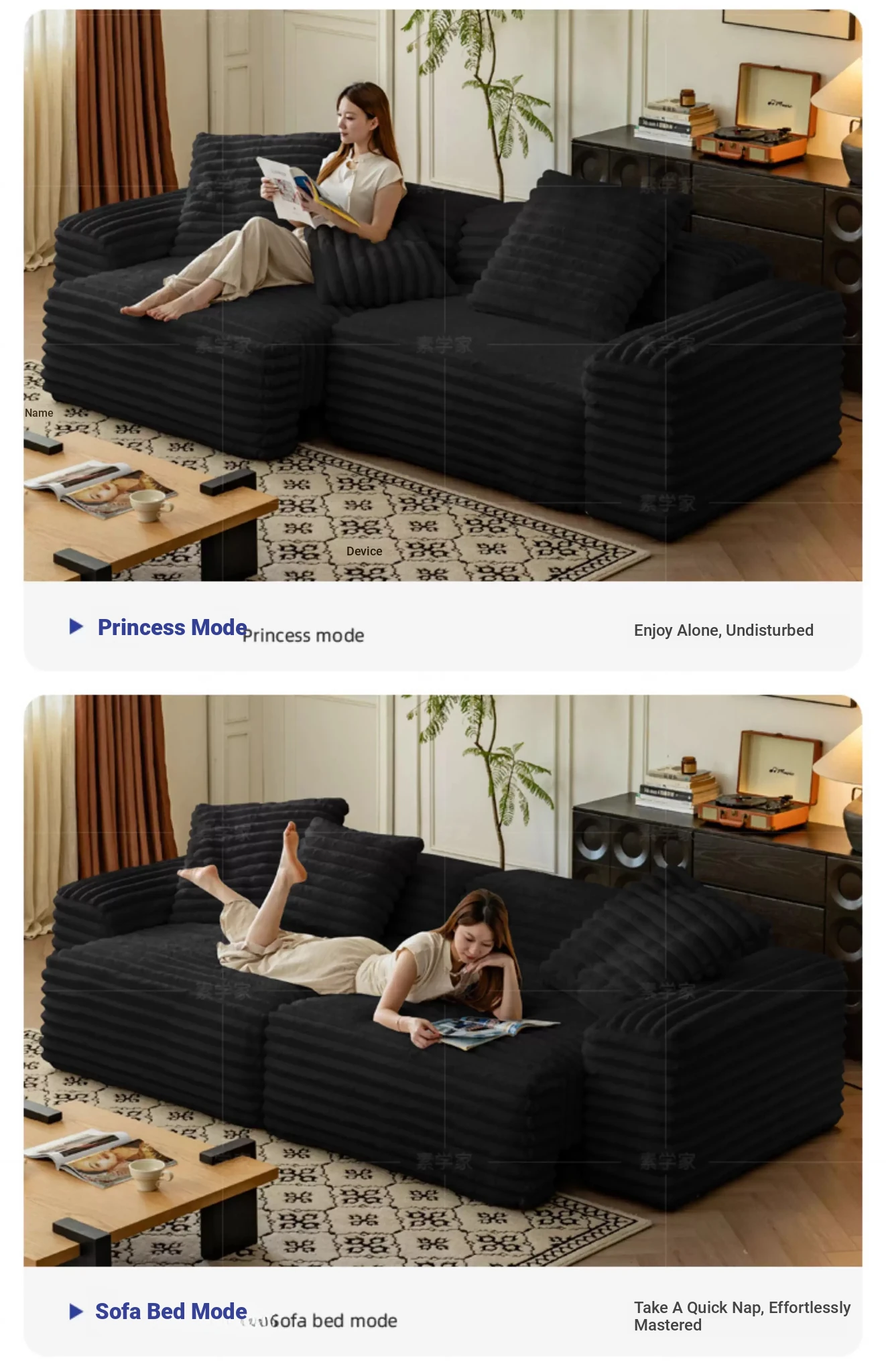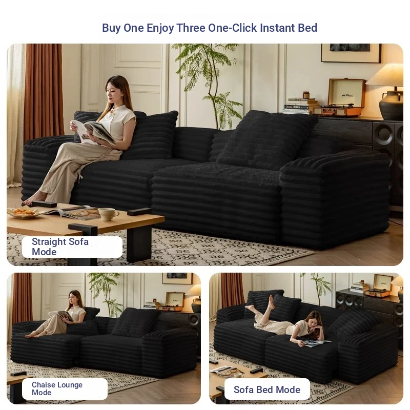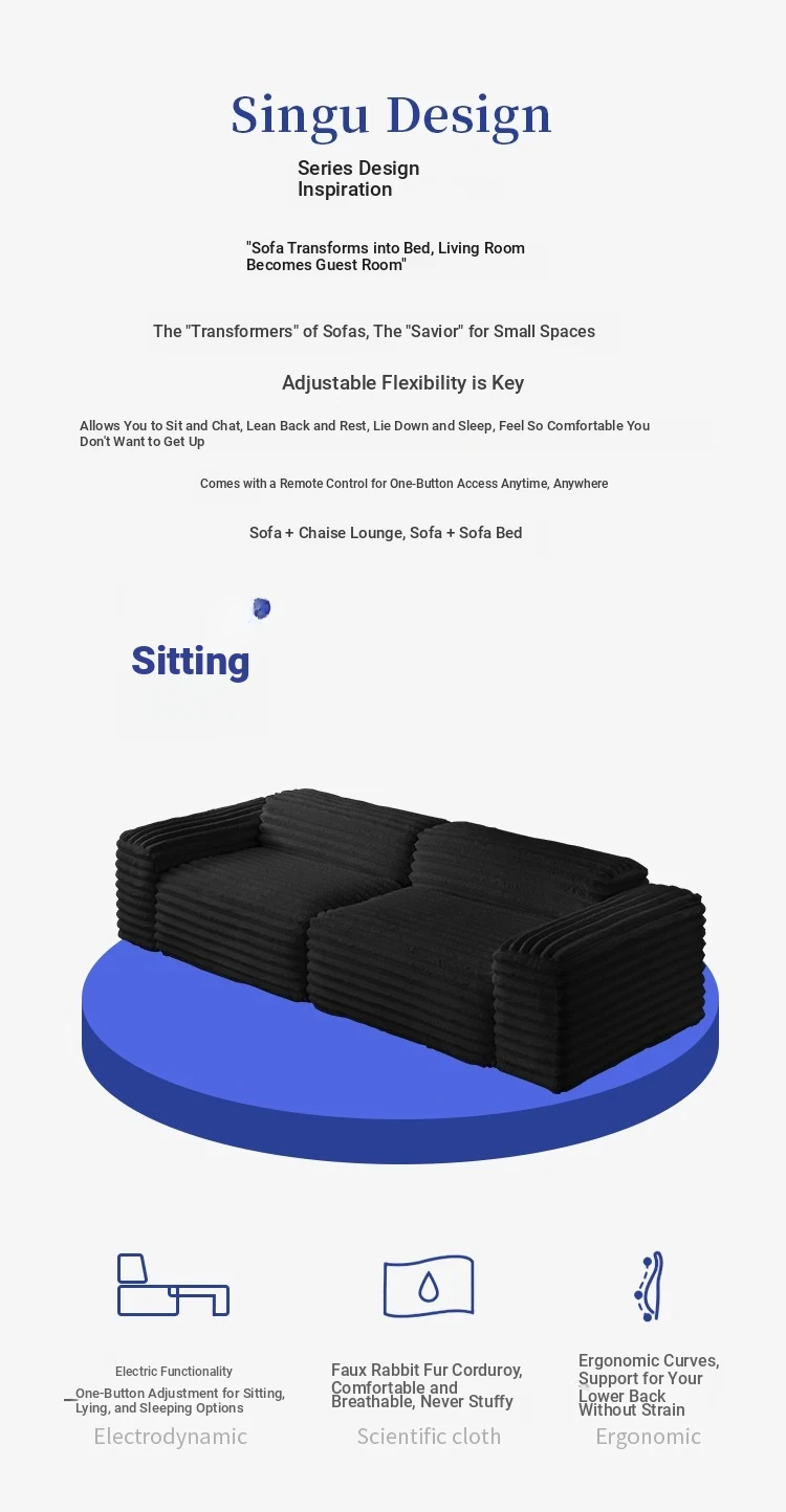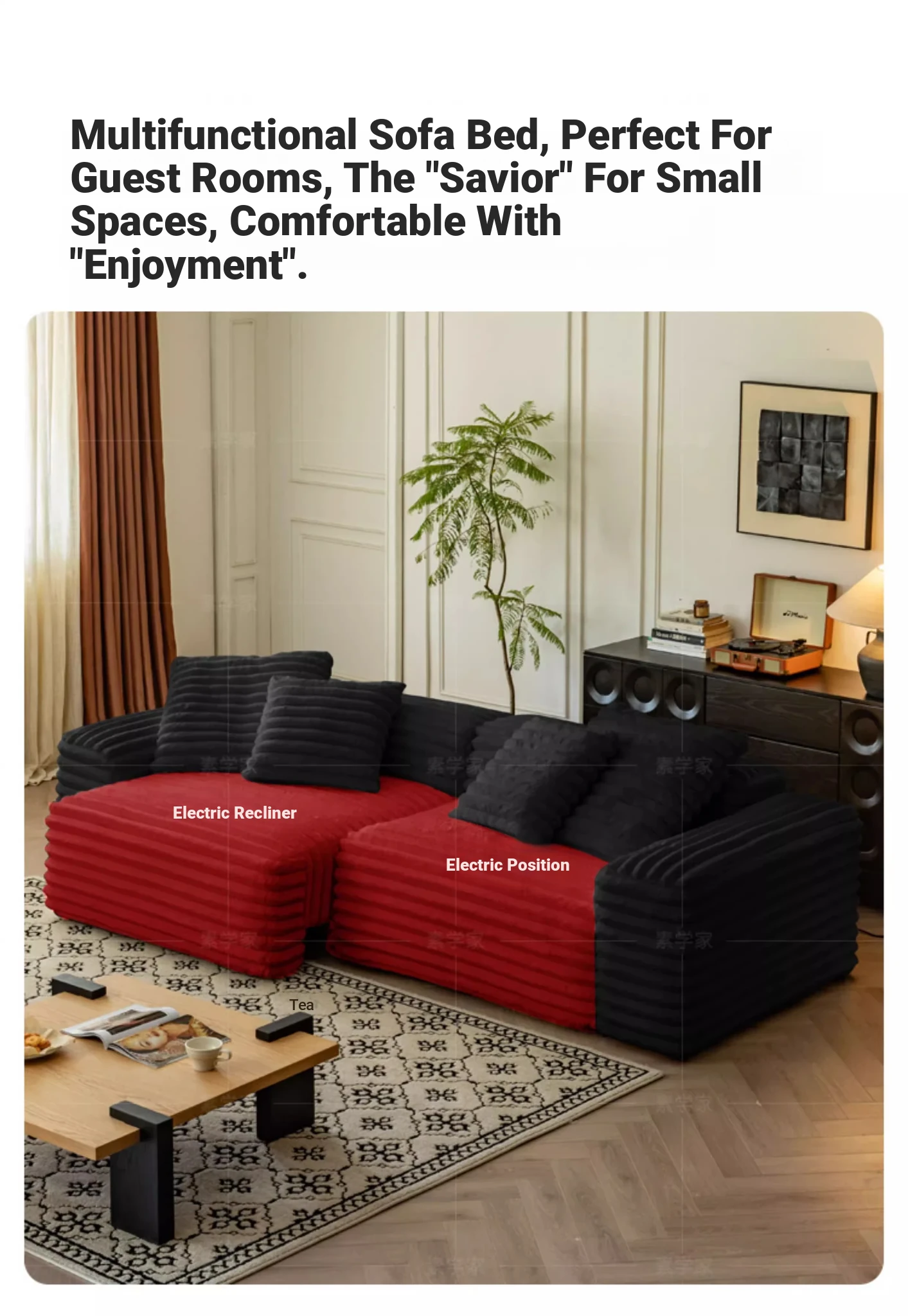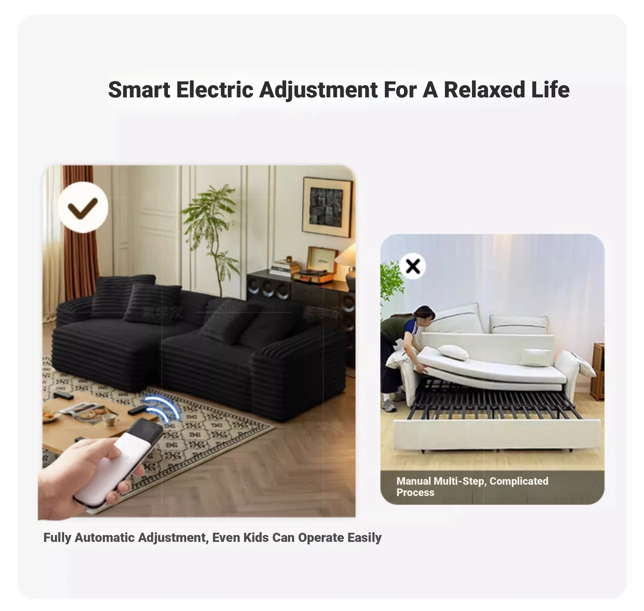 Modern Velvet Tofu Block Electric Sofa Bed - Adjustable French Vintage Style Black Fabric Couch for Living Room