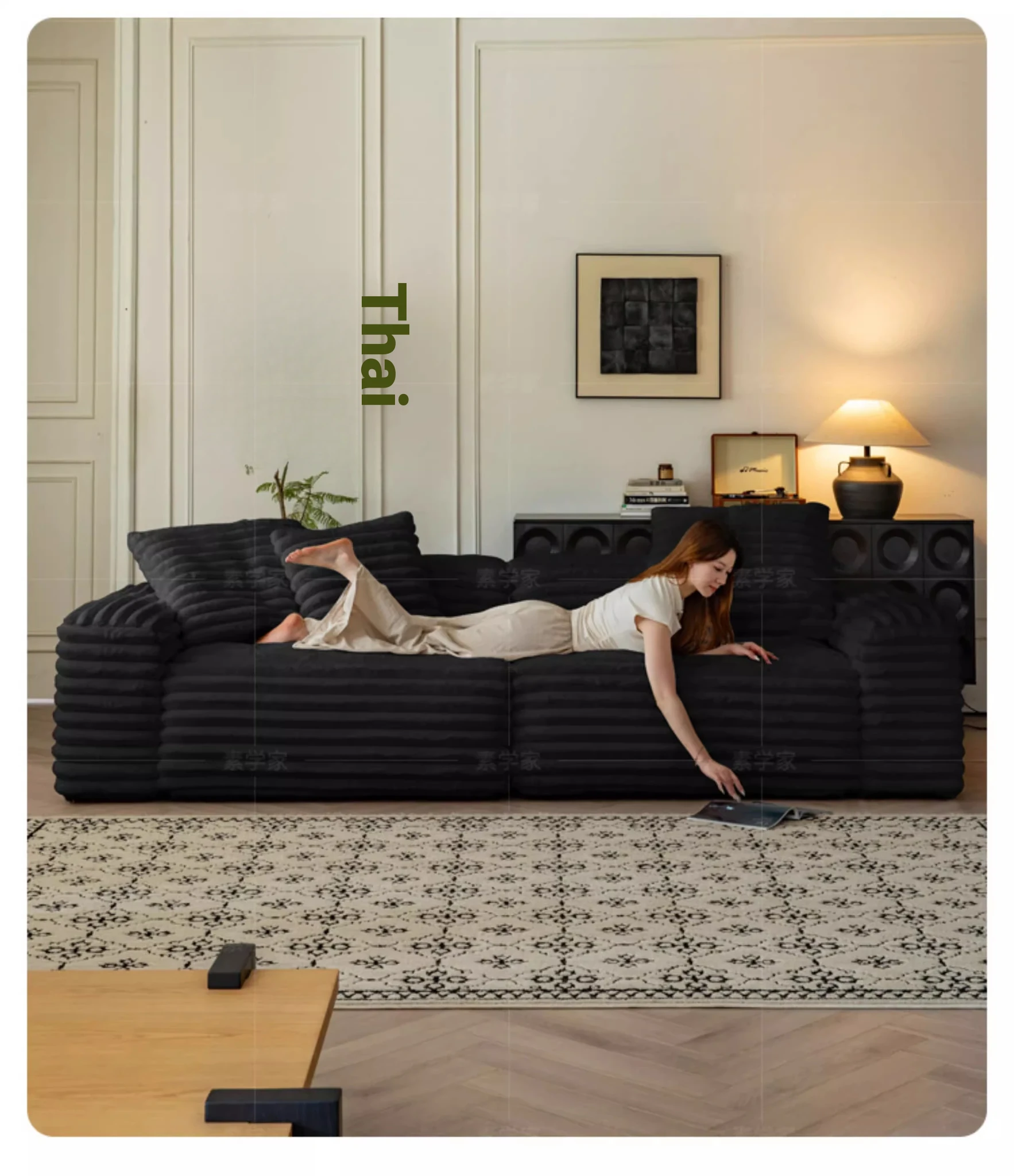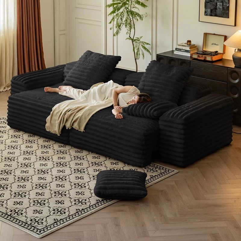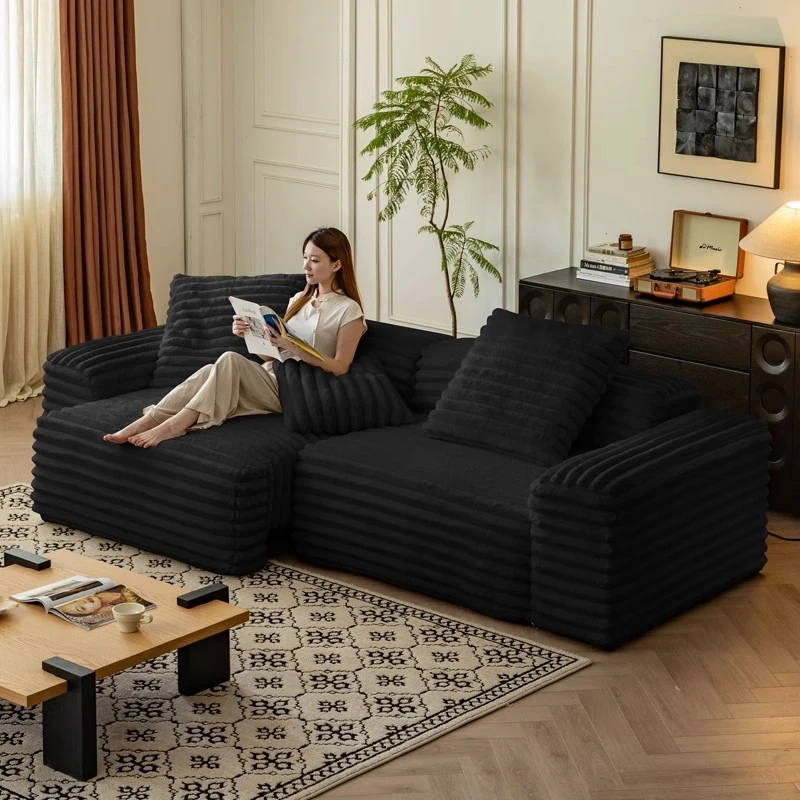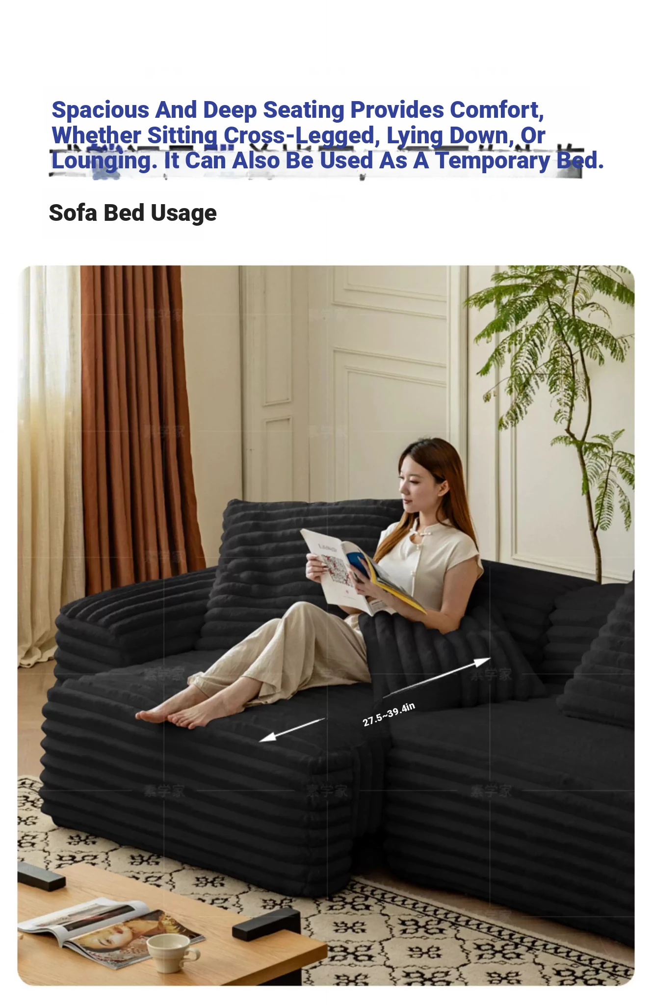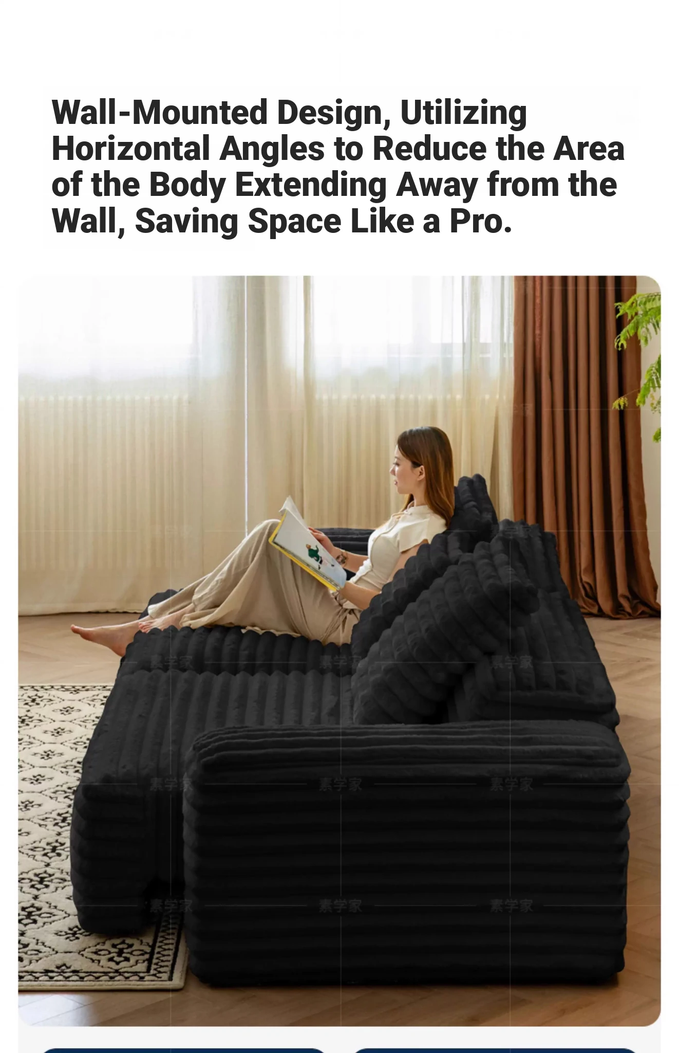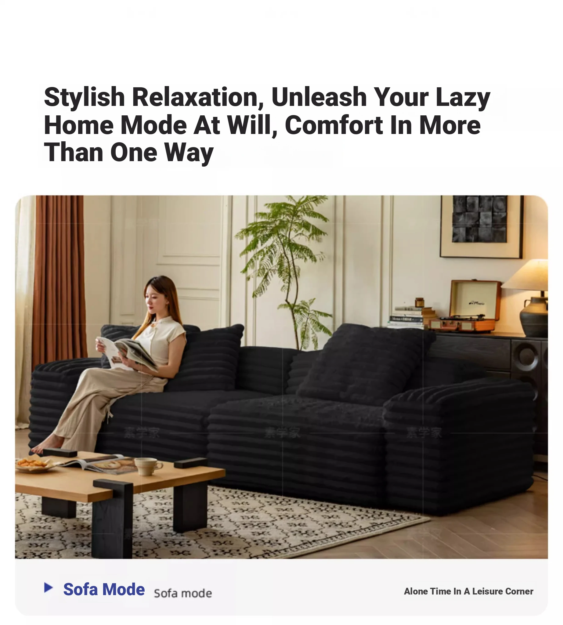 Modern Velvet Tofu Block Electric Sofa Bed - Adjustable French Vintage Style Black Fabric Couch for Living Room
