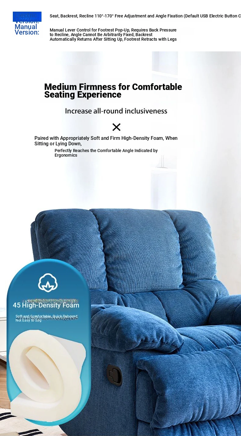 Multifunctional Lazy Sofa for Small Spaces - First-Class Recliner, Perfect for Home Use. Comfortable Electric Single Sofa Chair for Living Room, Ideal for Relaxing and Sleeping.