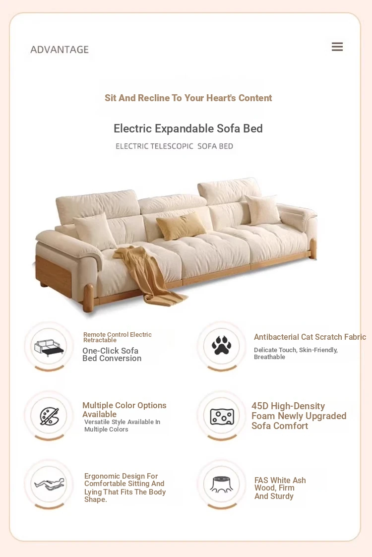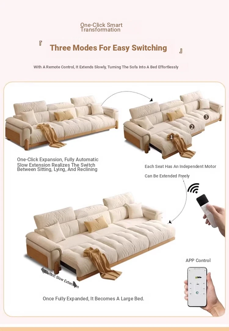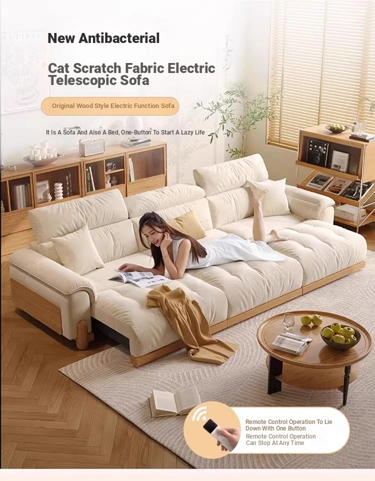 New Multifunctional Electric Sofa Bed - Compact Design for Small Spaces, Japanese Cream-Style Fabric Sofa with Extendable Features for Your Living Room