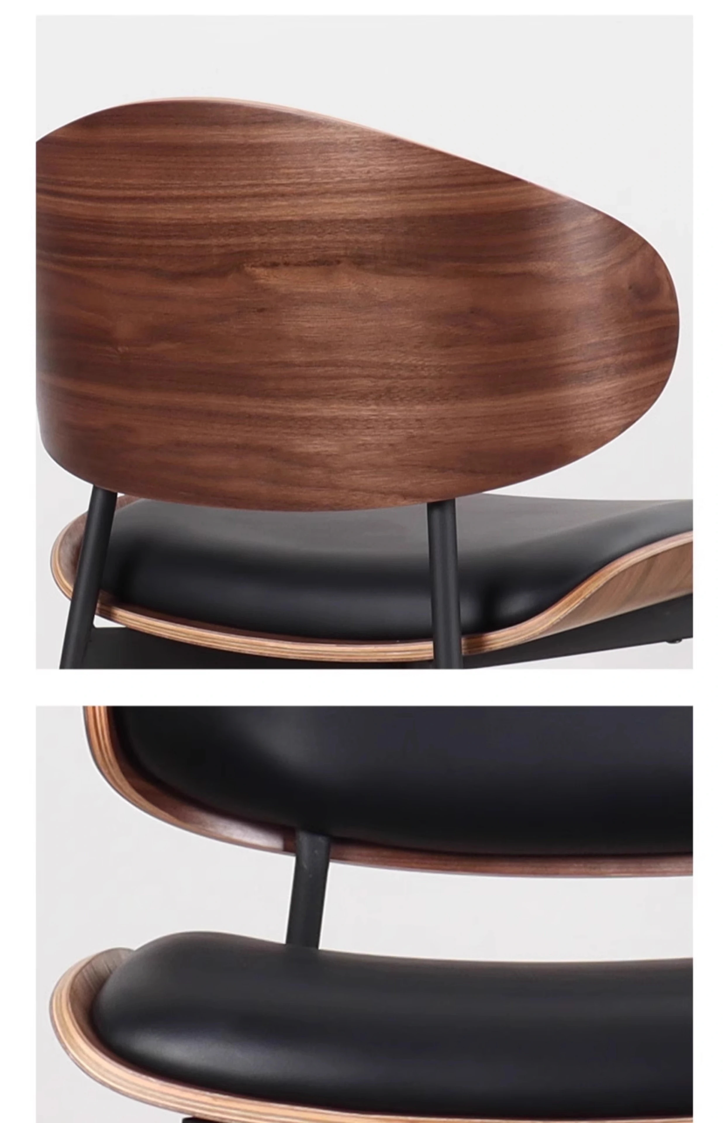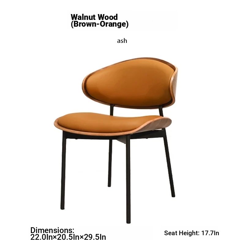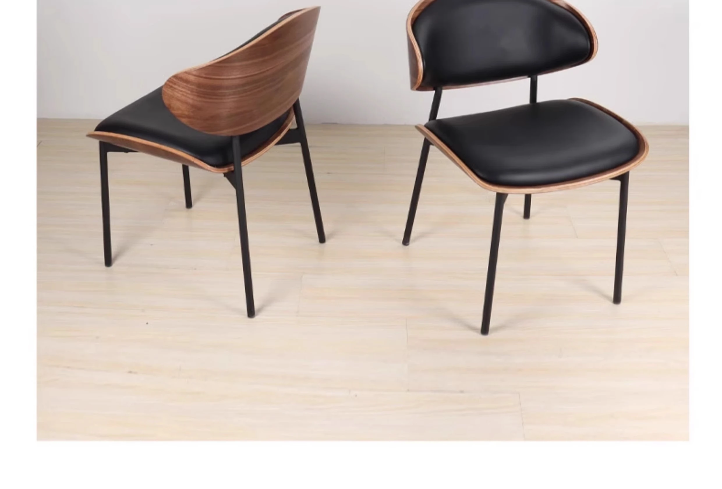 Nordic Light Luxury Italian Designer Dining Chair - Modern Curved Wood Armchair in Leather and Natural Wood, Perfect for Cafés and Meeting Spaces, Combining Comfort and Style.