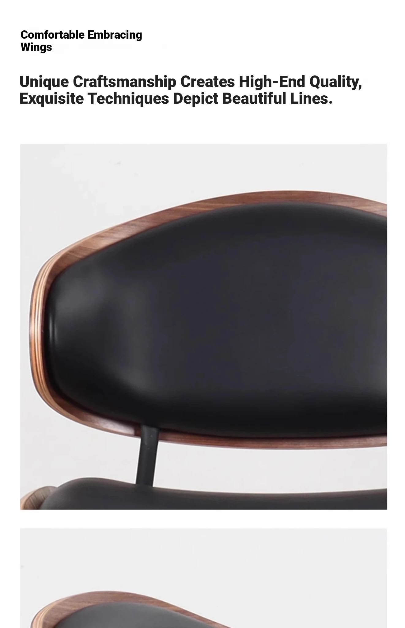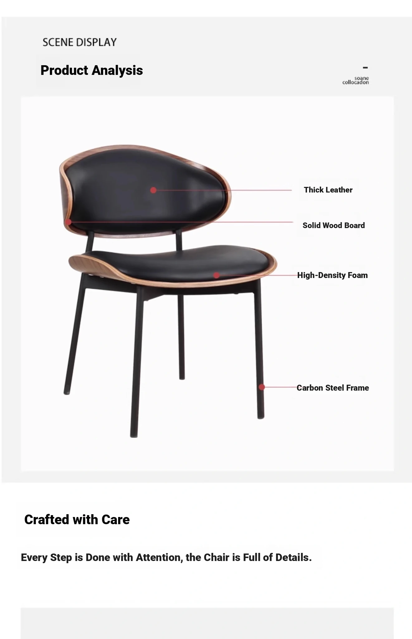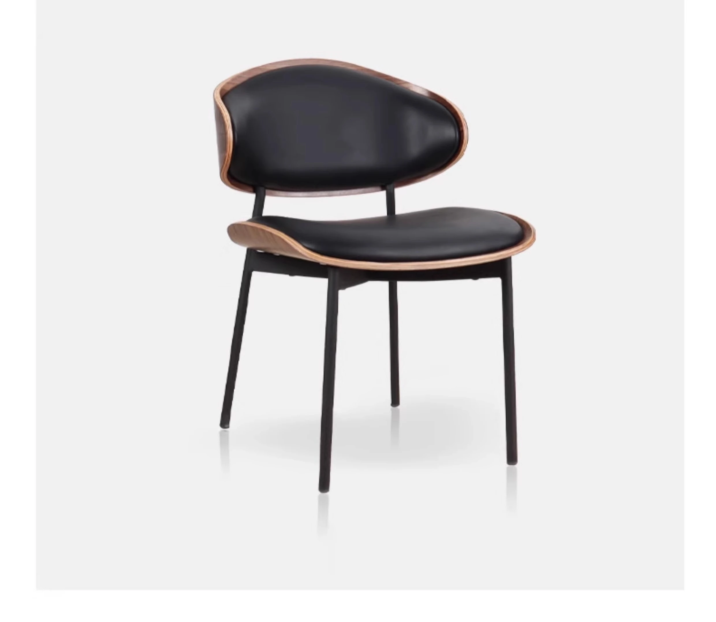 Nordic Light Luxury Italian Designer Dining Chair - Modern Curved Wood Armchair in Leather and Natural Wood, Perfect for Cafés and Meeting Spaces, Combining Comfort and Style.