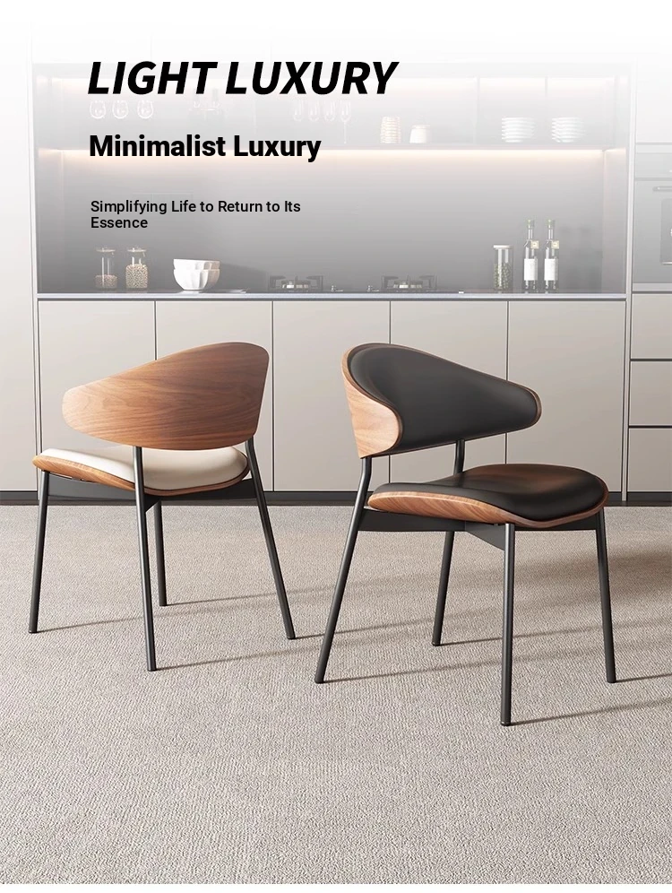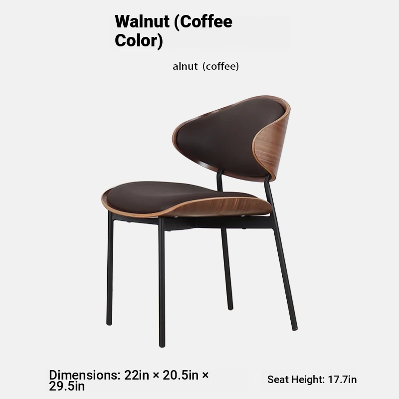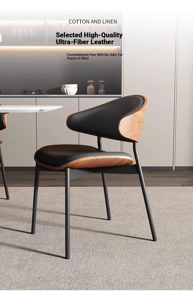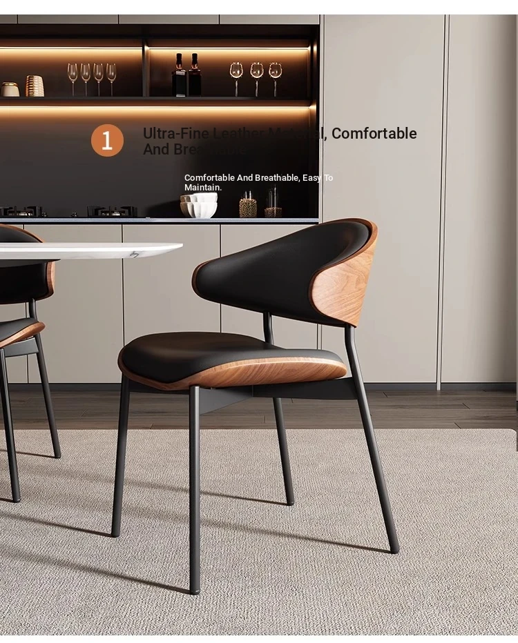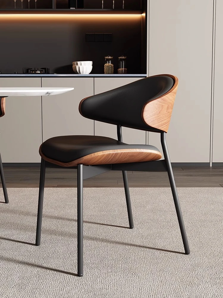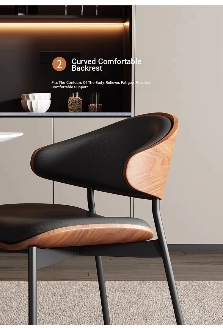 Nordic Luxury Italian Designer Dining Chair - Contemporary Curved Wooden Café Meeting Chair in Leather & Natural Wood, Perfect for Comfort and Style