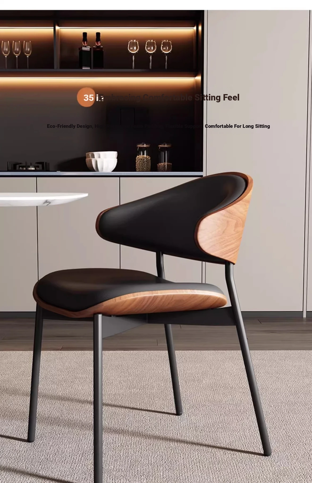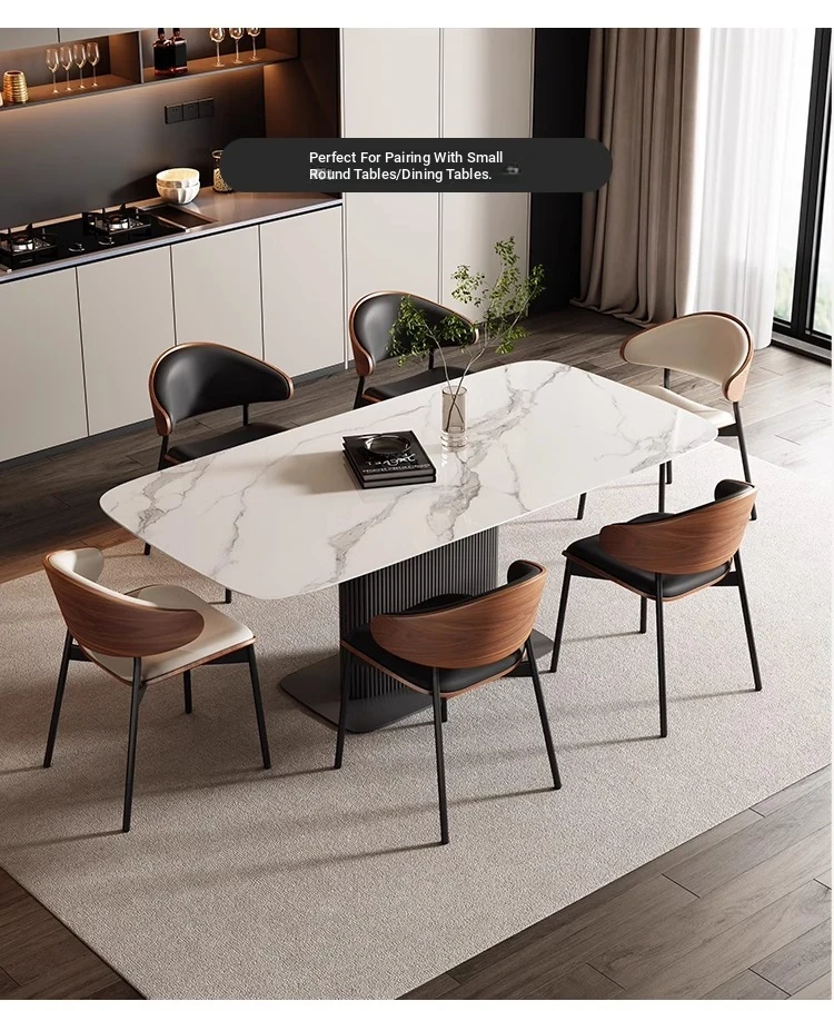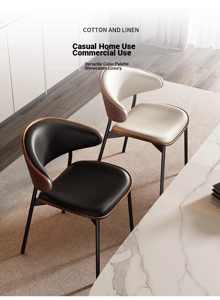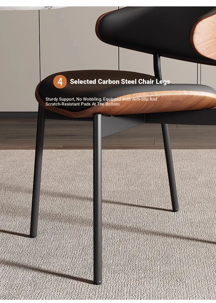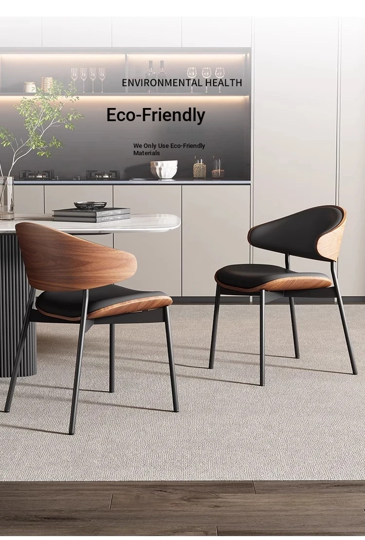 Nordic Luxury Italian Designer Dining Chair - Contemporary Curved Wooden Café Meeting Chair in Leather & Natural Wood, Perfect for Comfort and Style