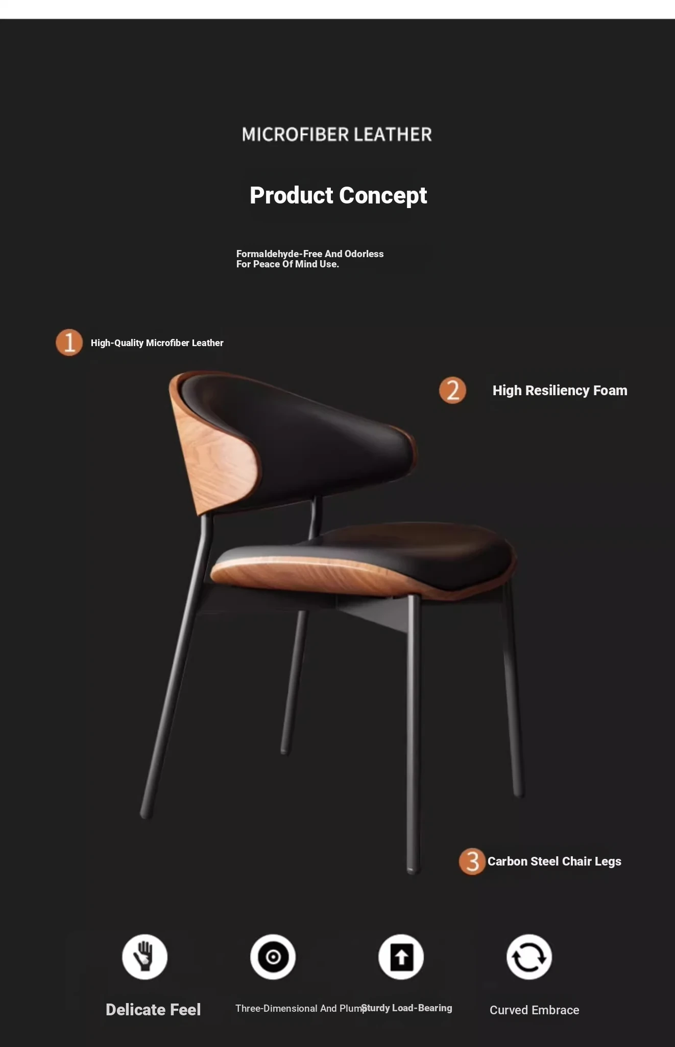 2 Start shooting [black fiber leather] thickened solid wood bending board Eames Popular Retro dining chair
