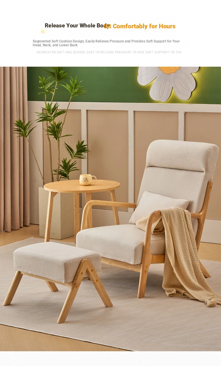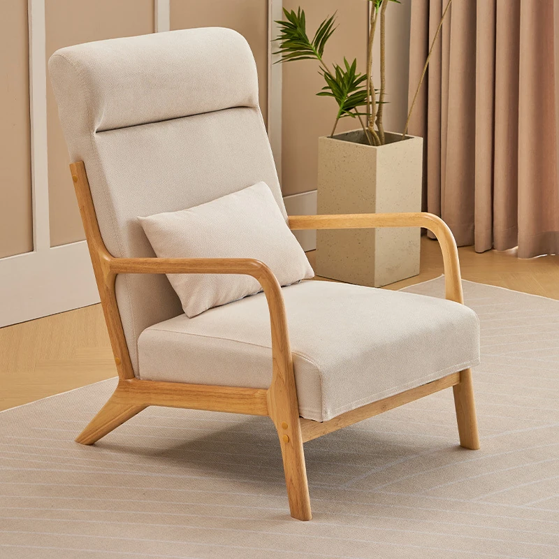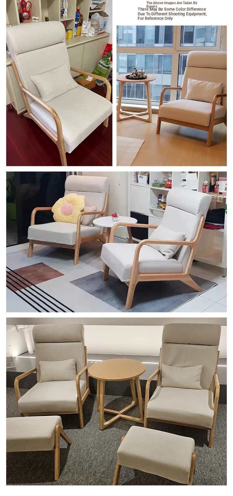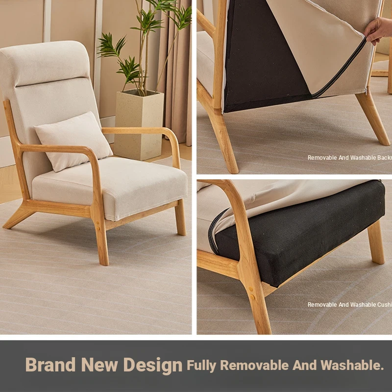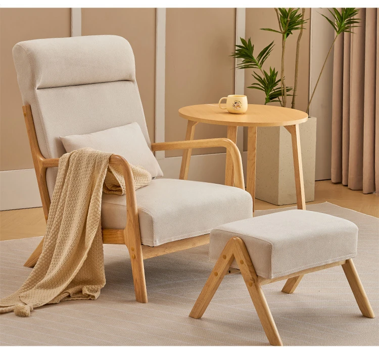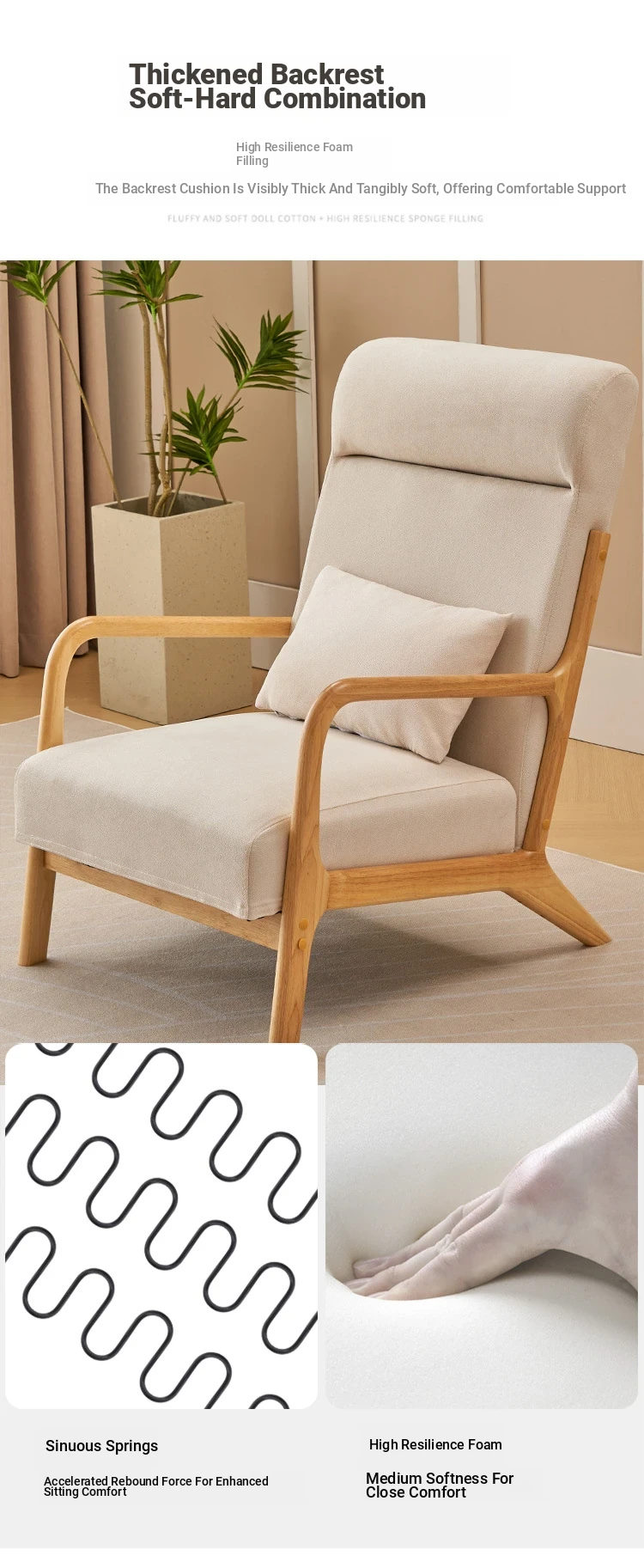 Nordic Style Single Lazy Sofa - Modern Armchair for Balcony and Living Room, High Backrest, Solid Wood Small Couch, Perfect for Relaxation and Comfort