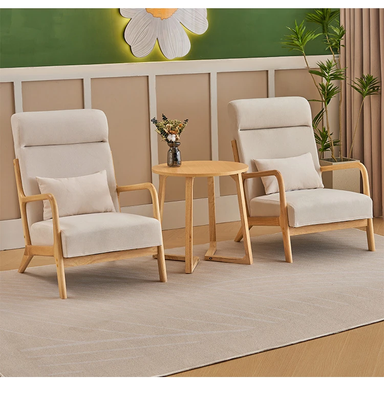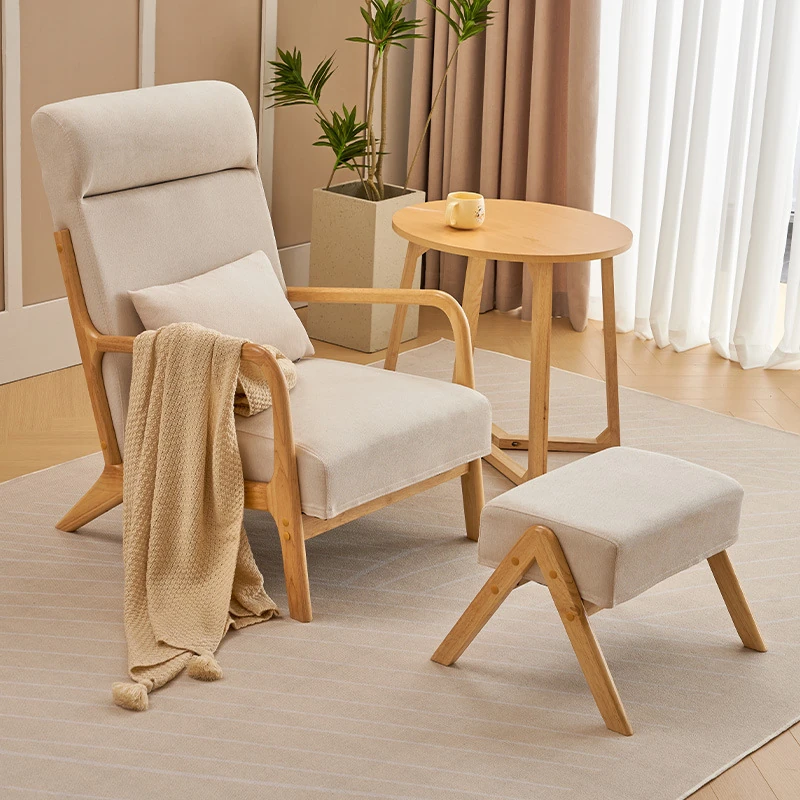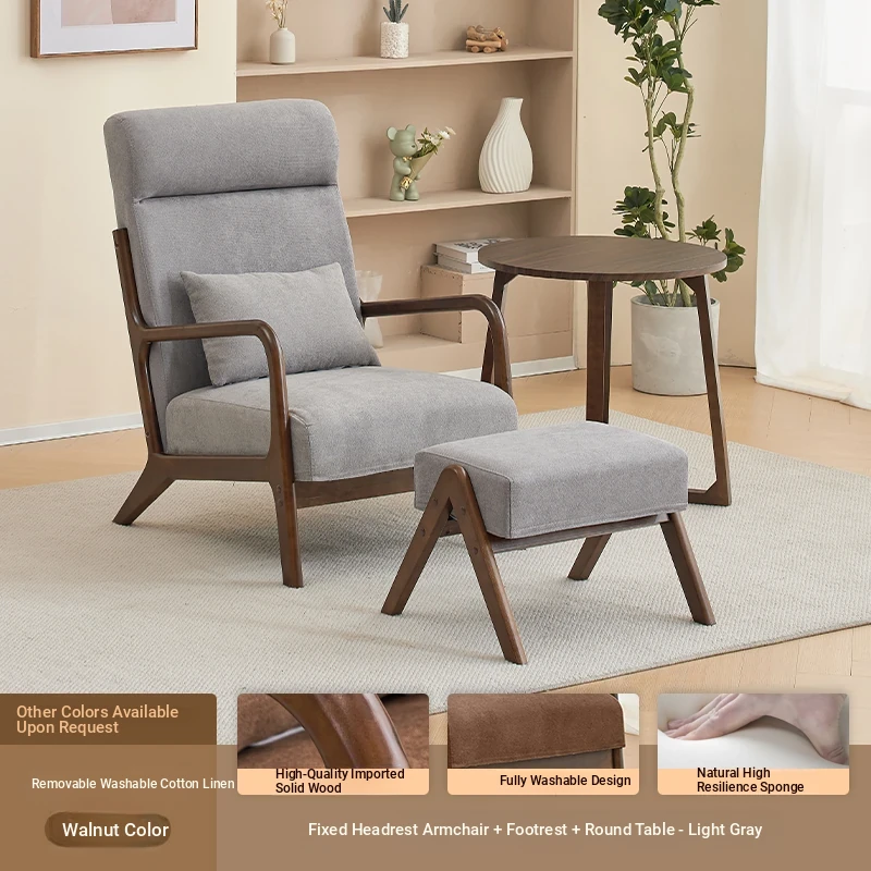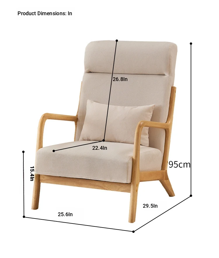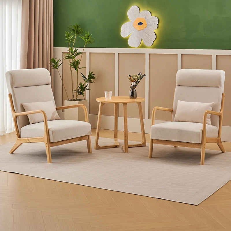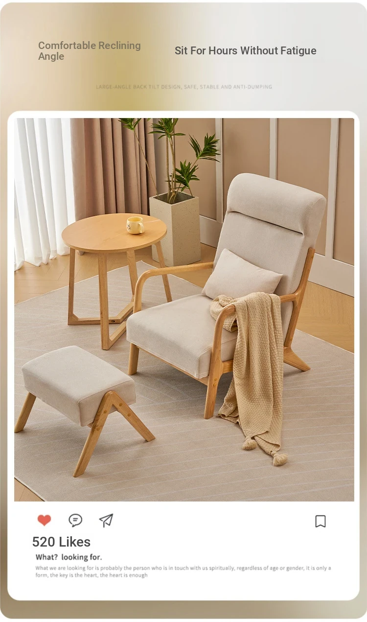 Nordic Style Single Lazy Sofa - Modern Armchair for Balcony and Living Room, High Backrest, Solid Wood Small Couch, Perfect for Relaxation and Comfort