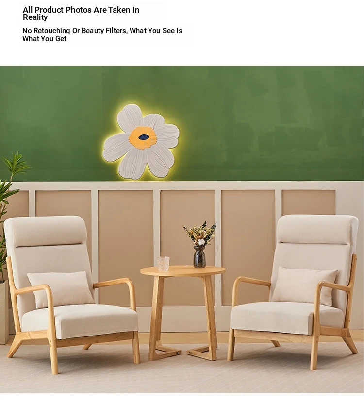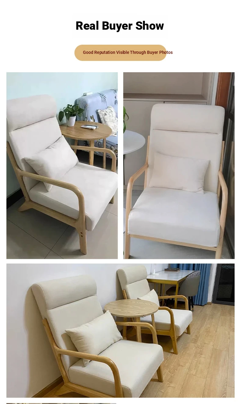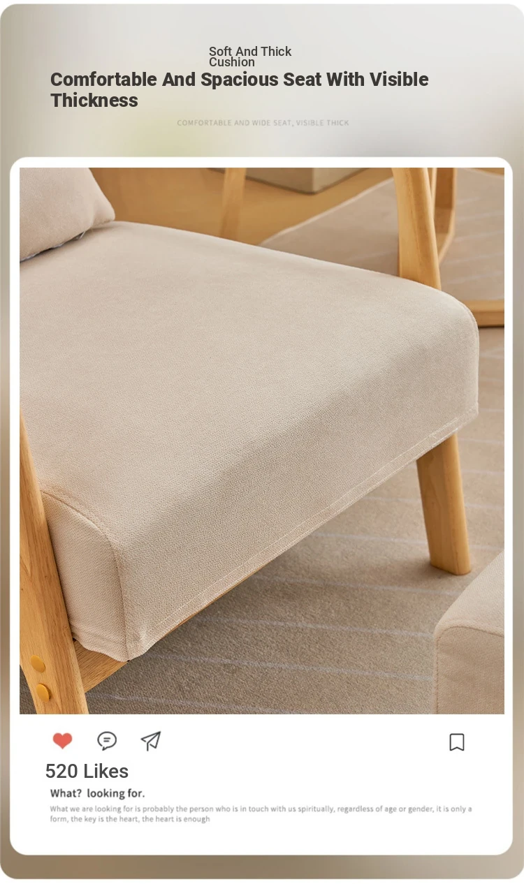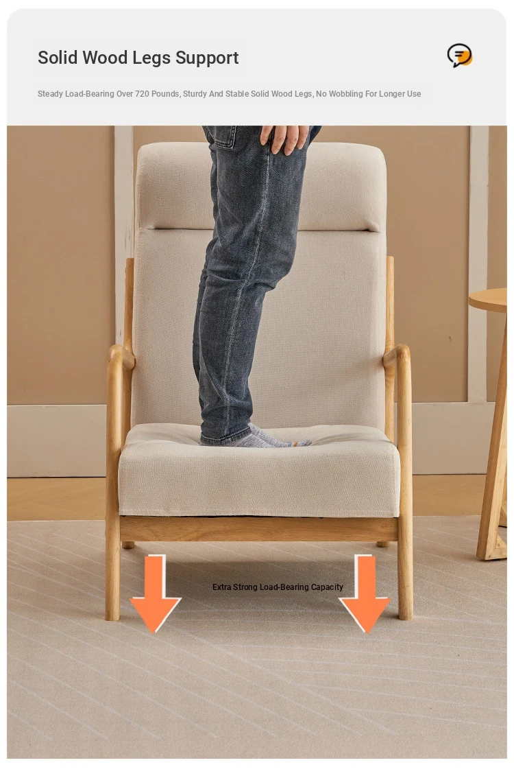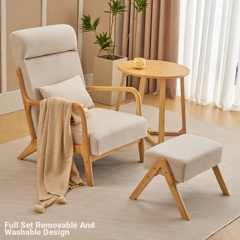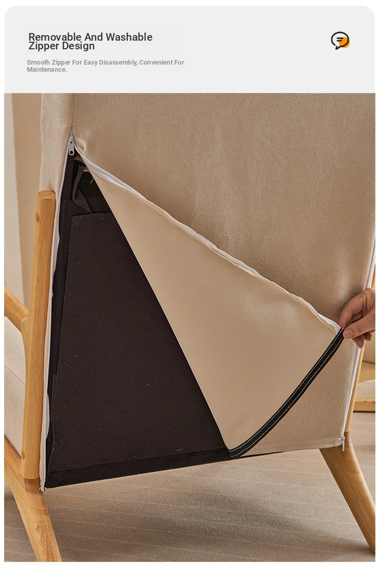 Nordic Style Single Lazy Sofa - Modern Armchair for Balcony and Living Room, High Backrest, Solid Wood Small Couch, Perfect for Relaxation and Comfort