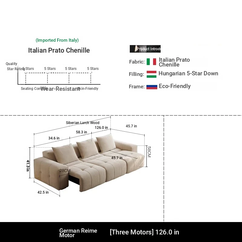 Pixel Electric Sofa - Movable & Expandable Chenille Fabric Three-Seater Couch, Perfect for Living Rooms & Wall-Free Spaces, Multi-Functional Sofa Bed for Ultimate Comfort and Style!