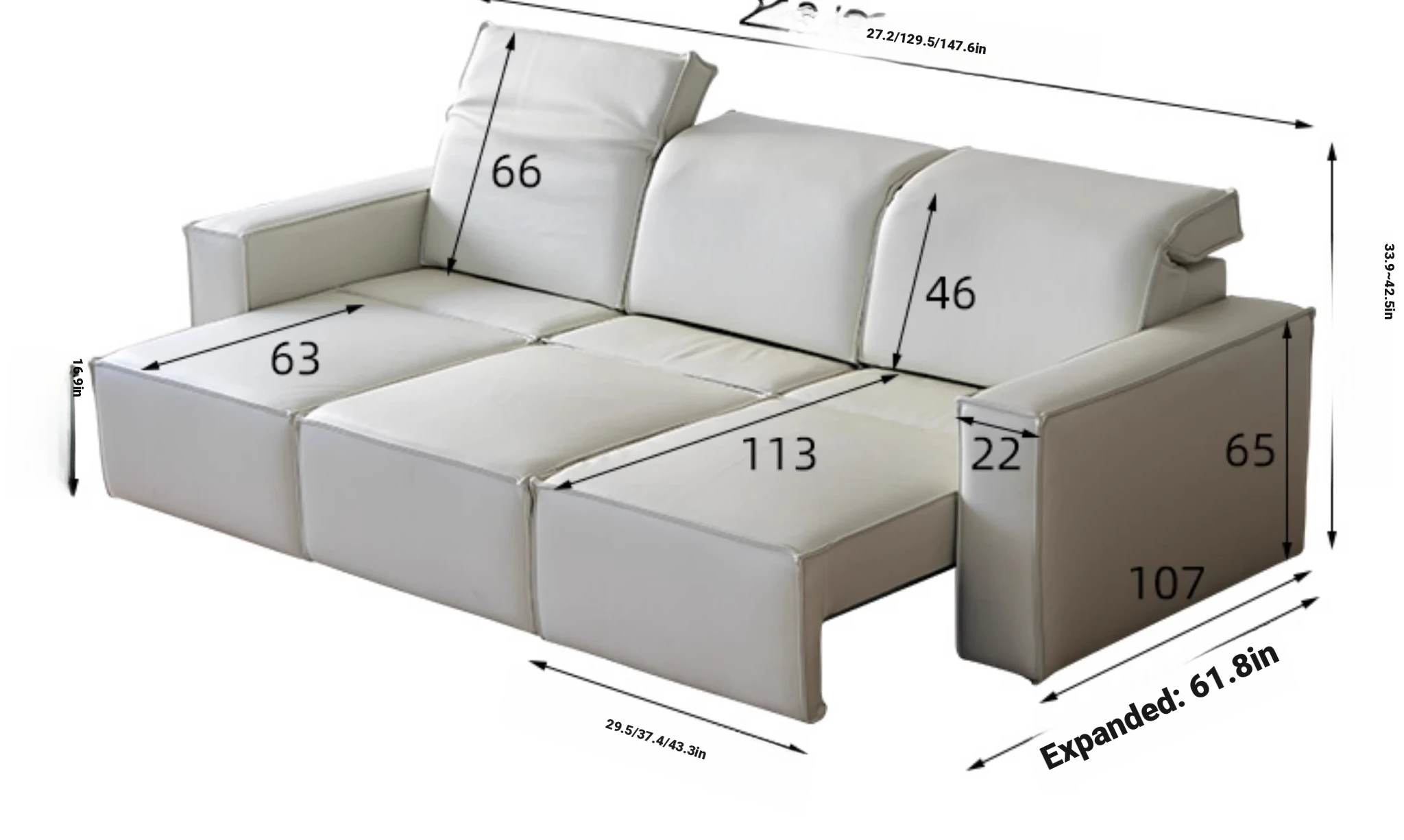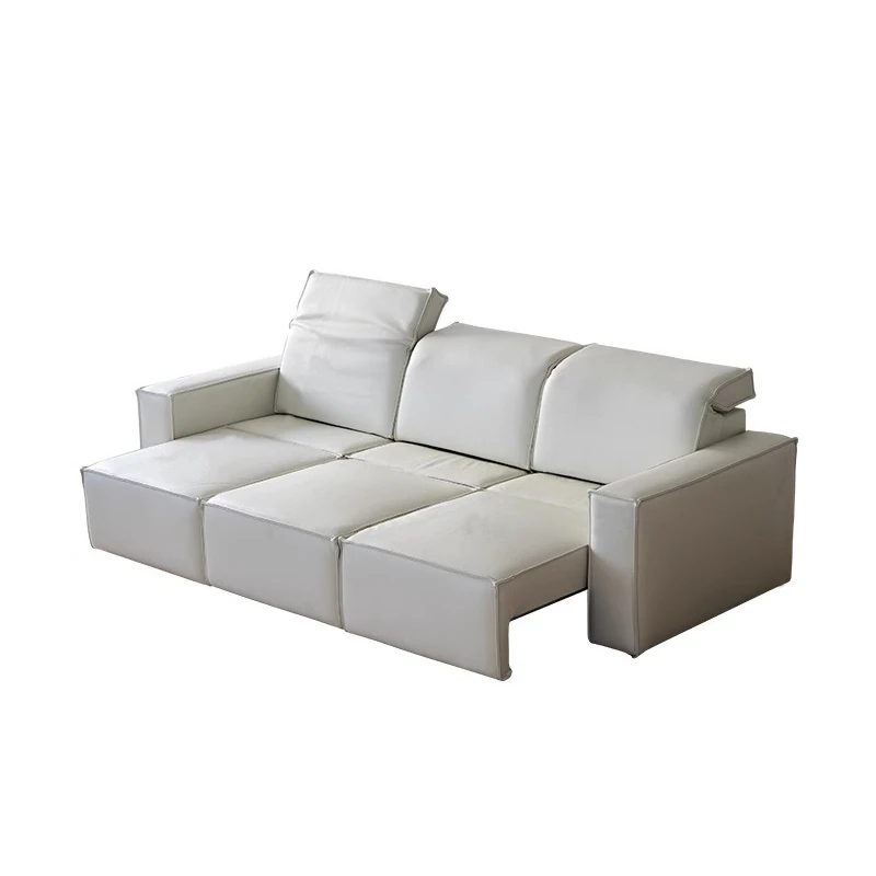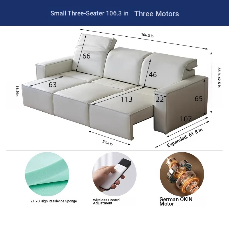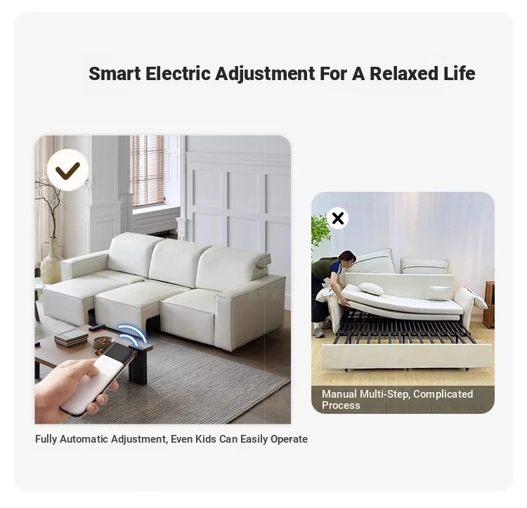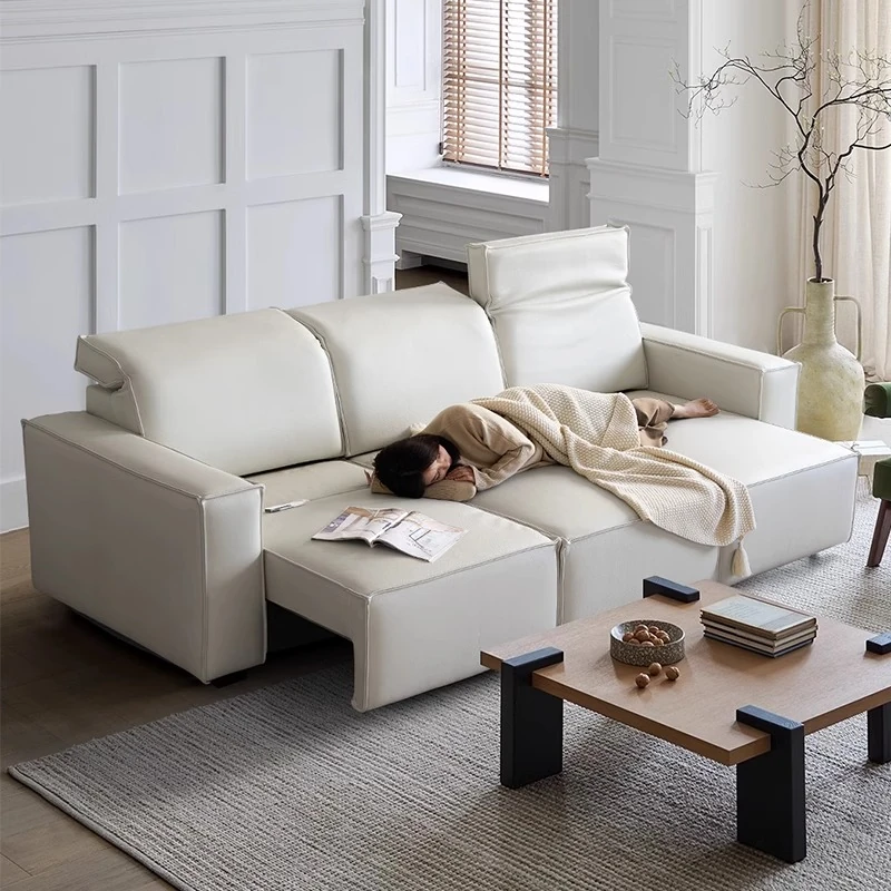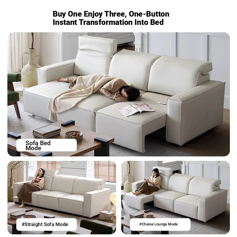 Premium Genuine Leather Electric Sofa with Adjustable Backrest - Spacious Black Cowhide Sofa Bed with Extendable Features for Comfortable Living Room Experience