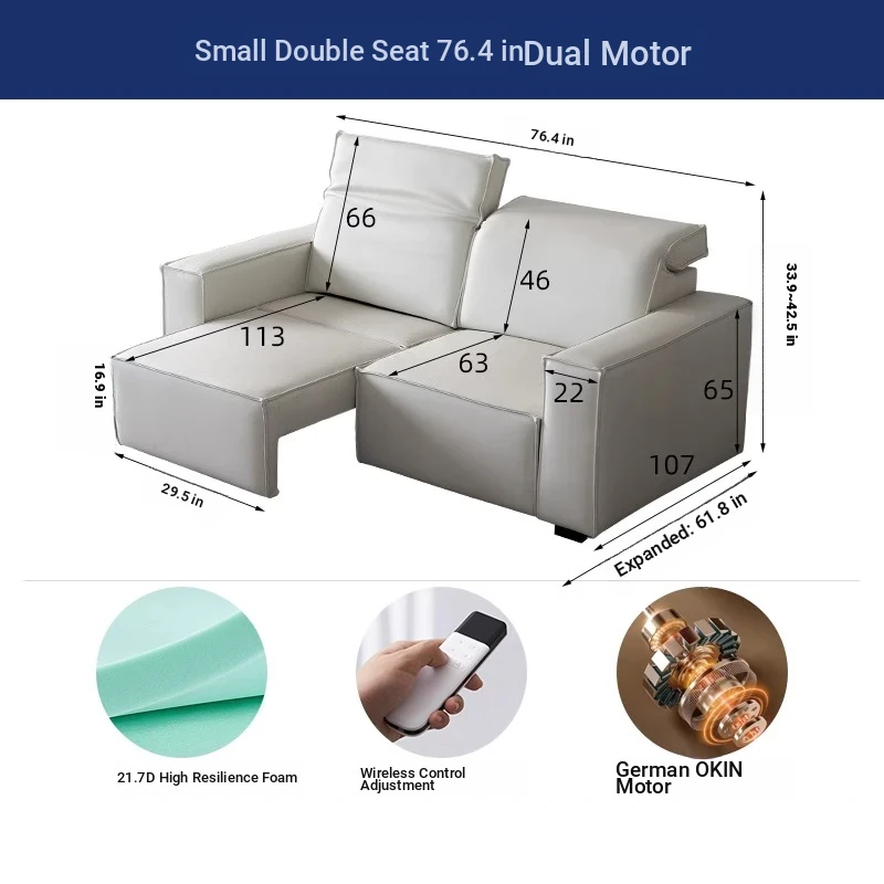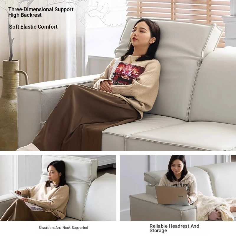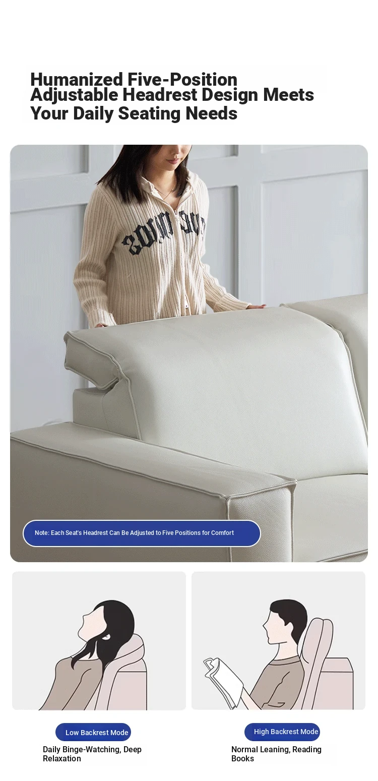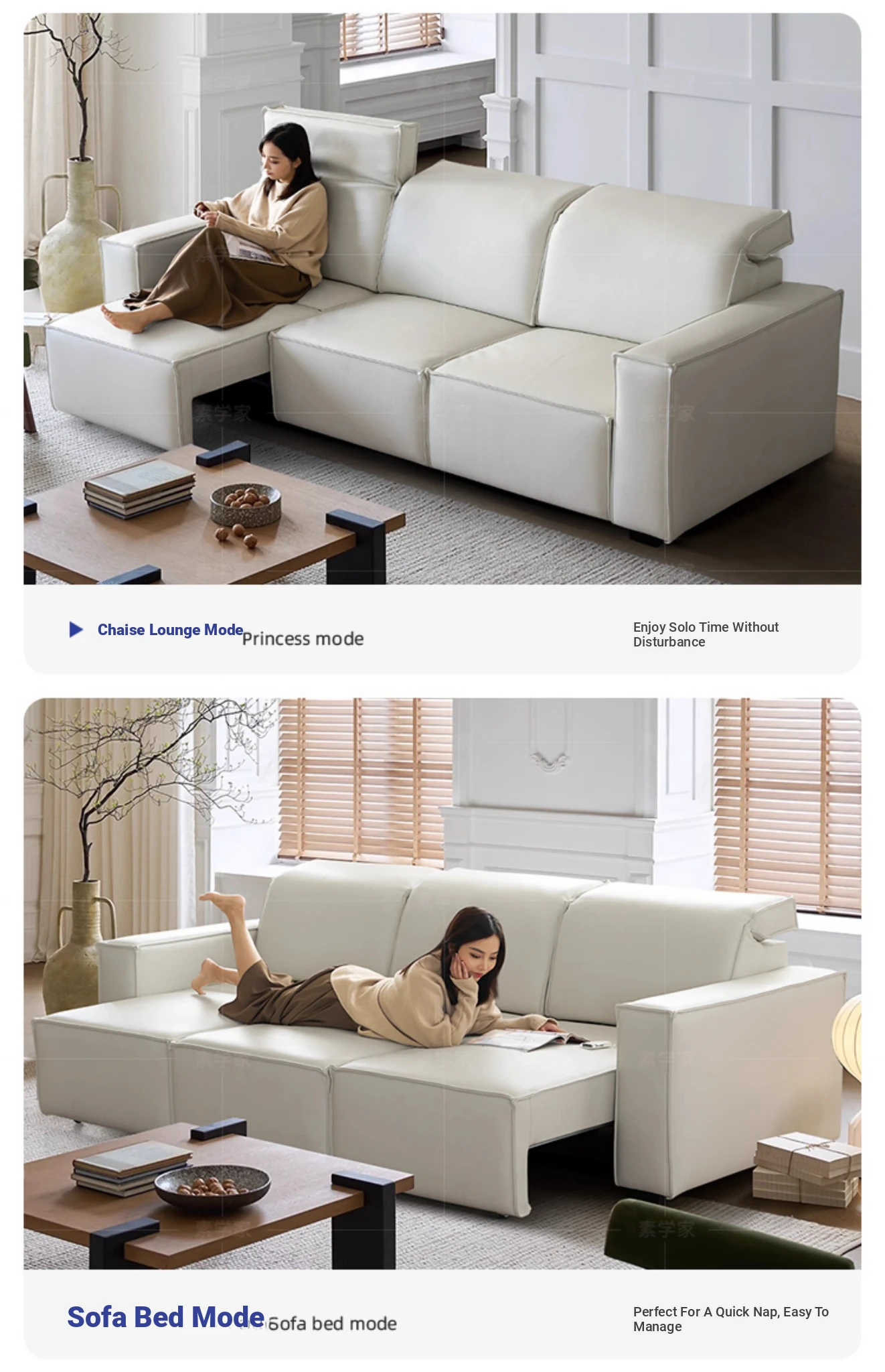 Premium Genuine Leather Electric Sofa with Adjustable Backrest - Spacious Black Cowhide Sofa Bed with Extendable Features for Comfortable Living Room Experience