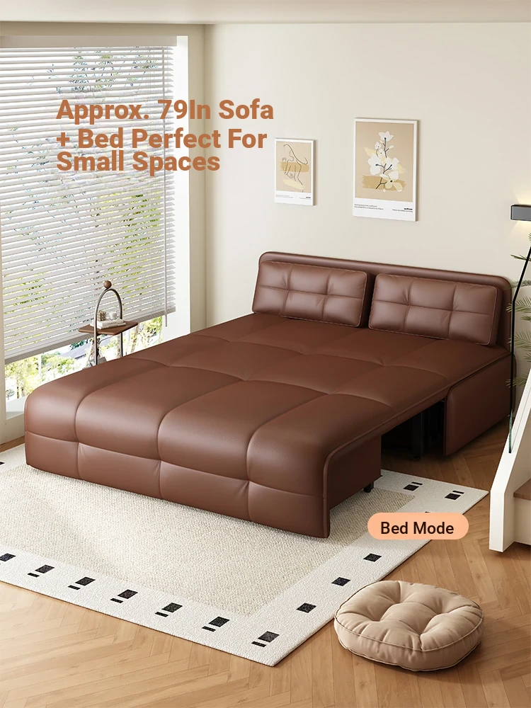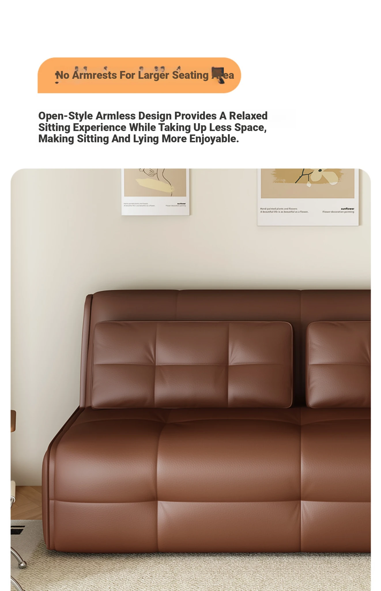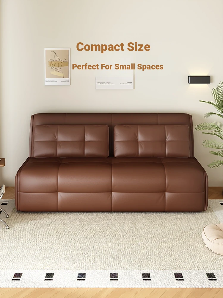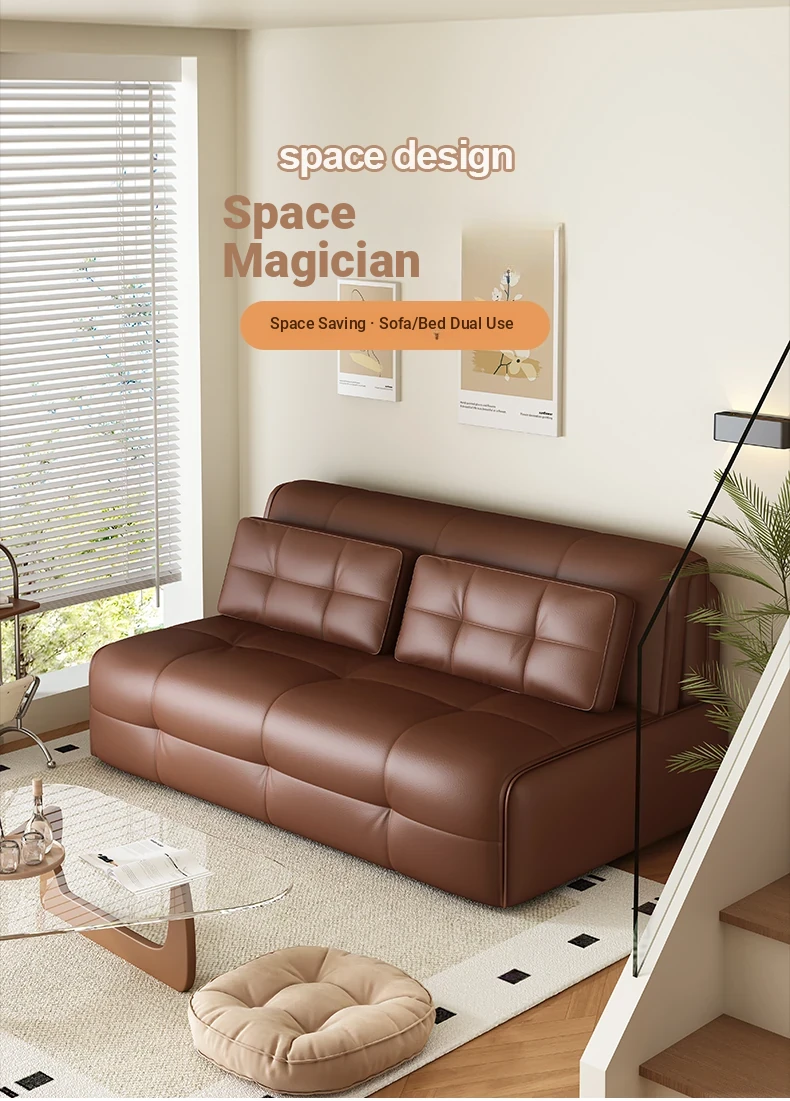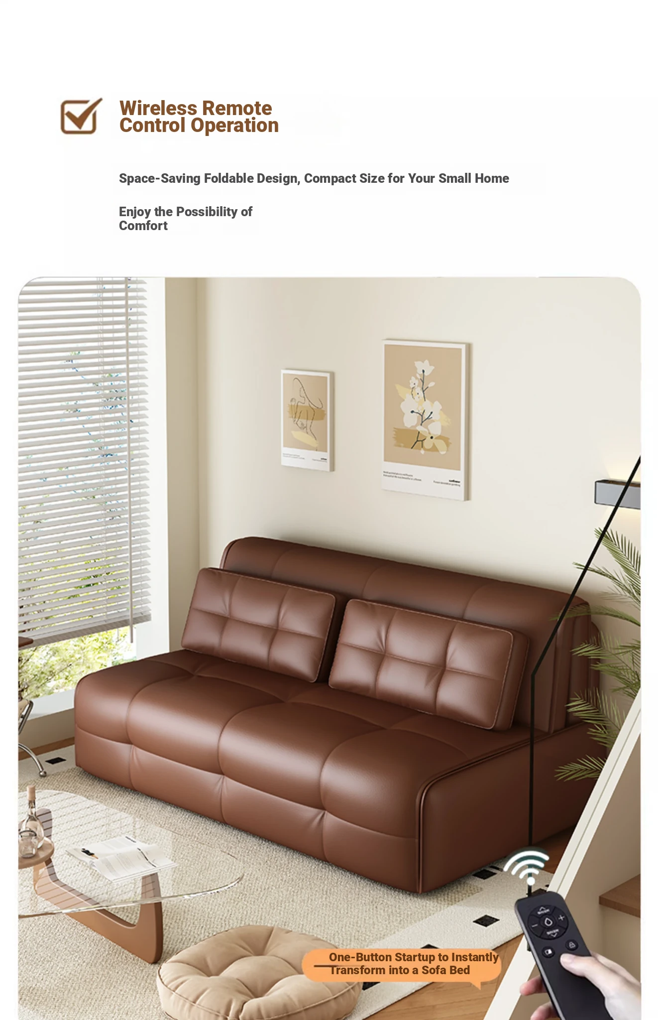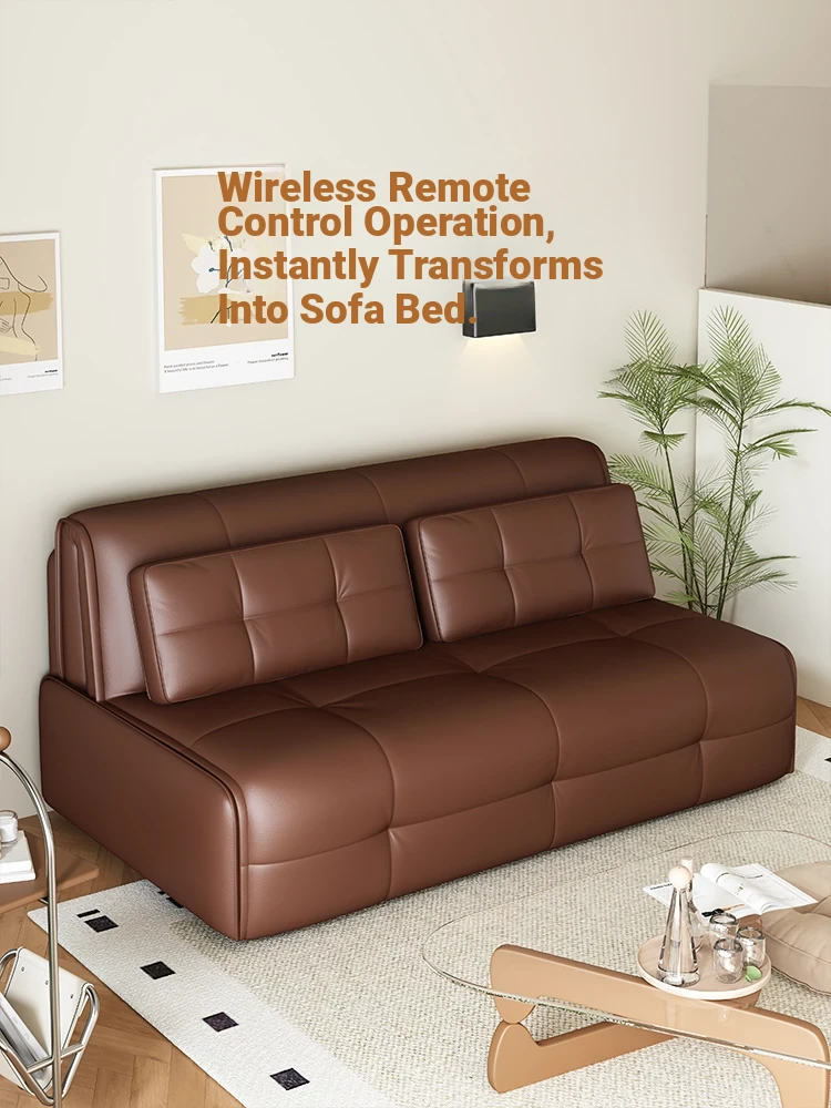 Retro Electric Adjustable Leather Sofa Bed - Foldable 2-in-1 Design, 2025 New Luxury Collection for Small Apartments, Multifunctional Living Room Essential