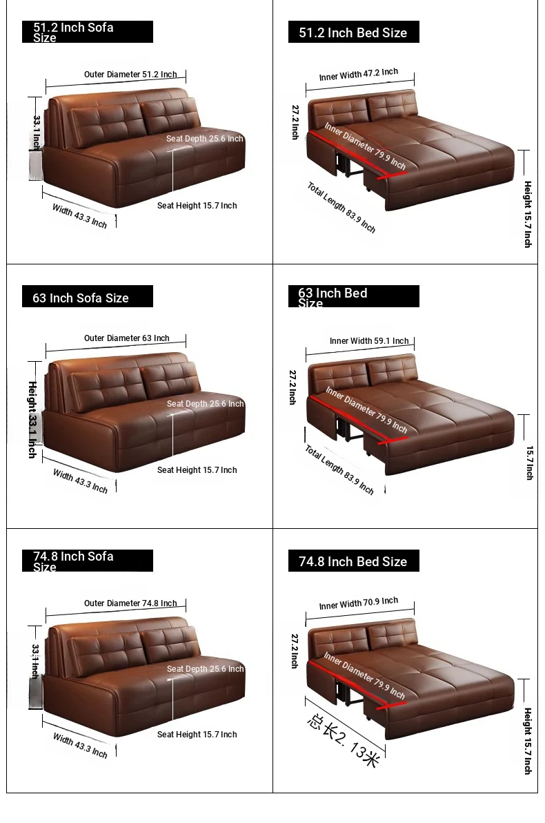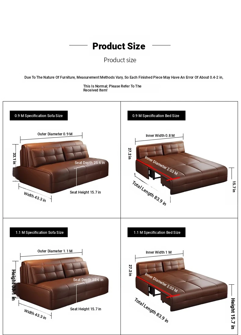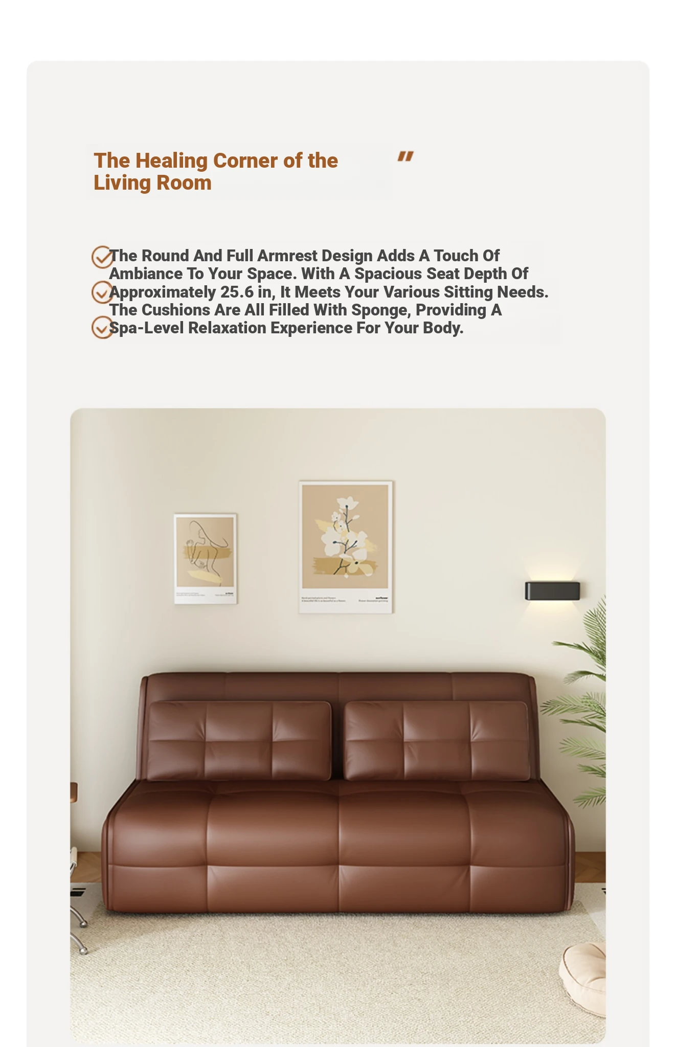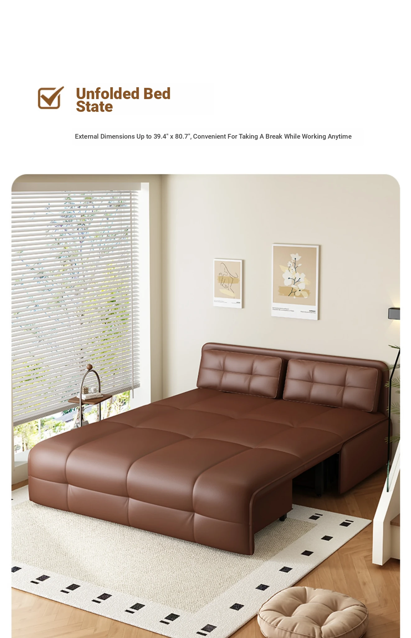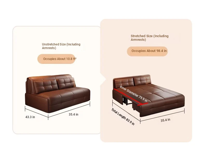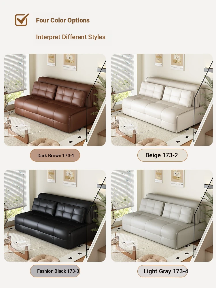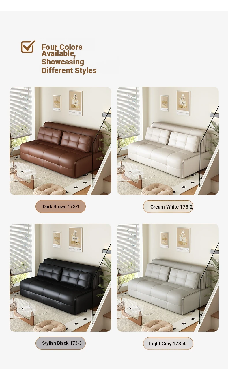 Retro Electric Adjustable Leather Sofa Bed - Foldable 2-in-1 Design, 2025 New Luxury Collection for Small Apartments, Multifunctional Living Room Essential