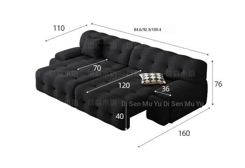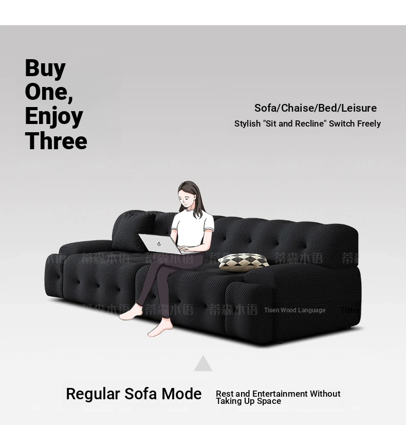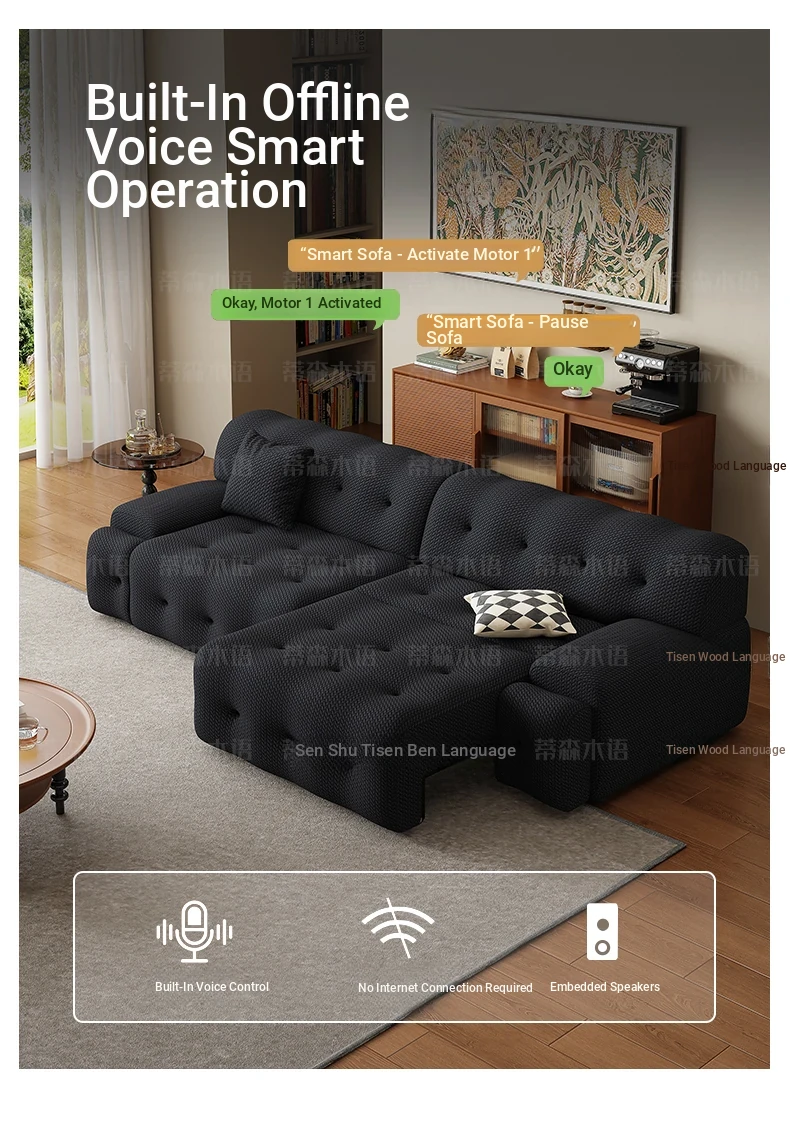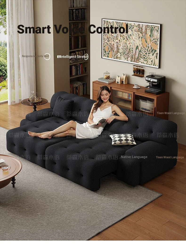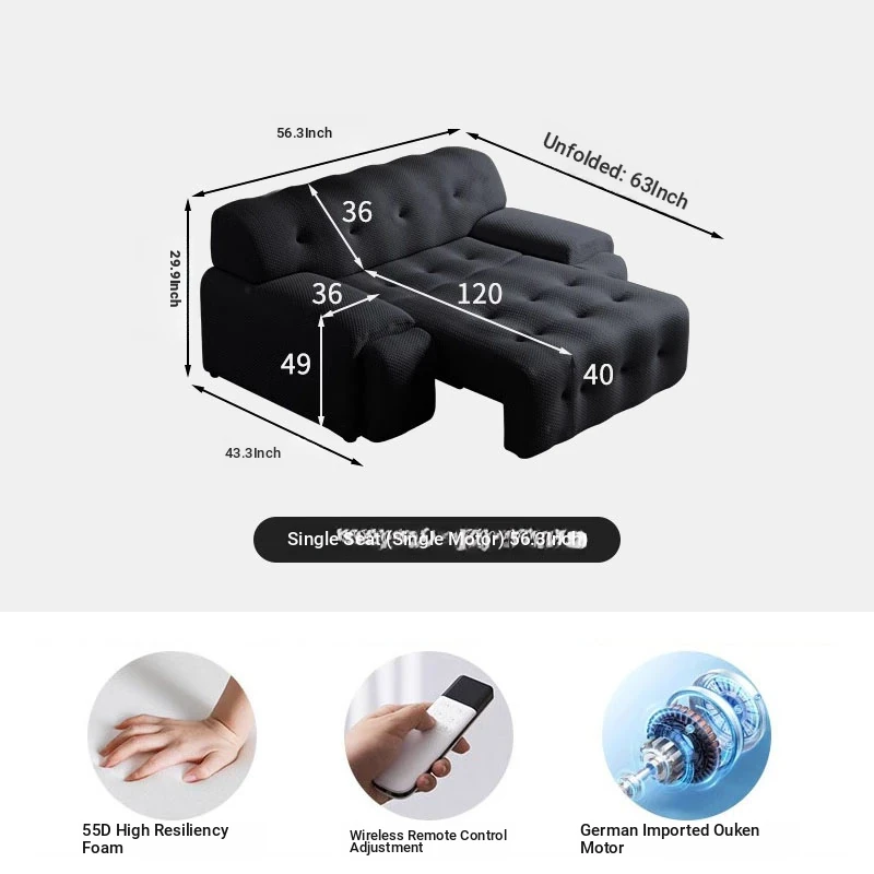 Rochburg Electric Sofa Bed - Adjustable, Foldable, Multi-Functional Italian Style Black Fabric Sofa for Your Living Room