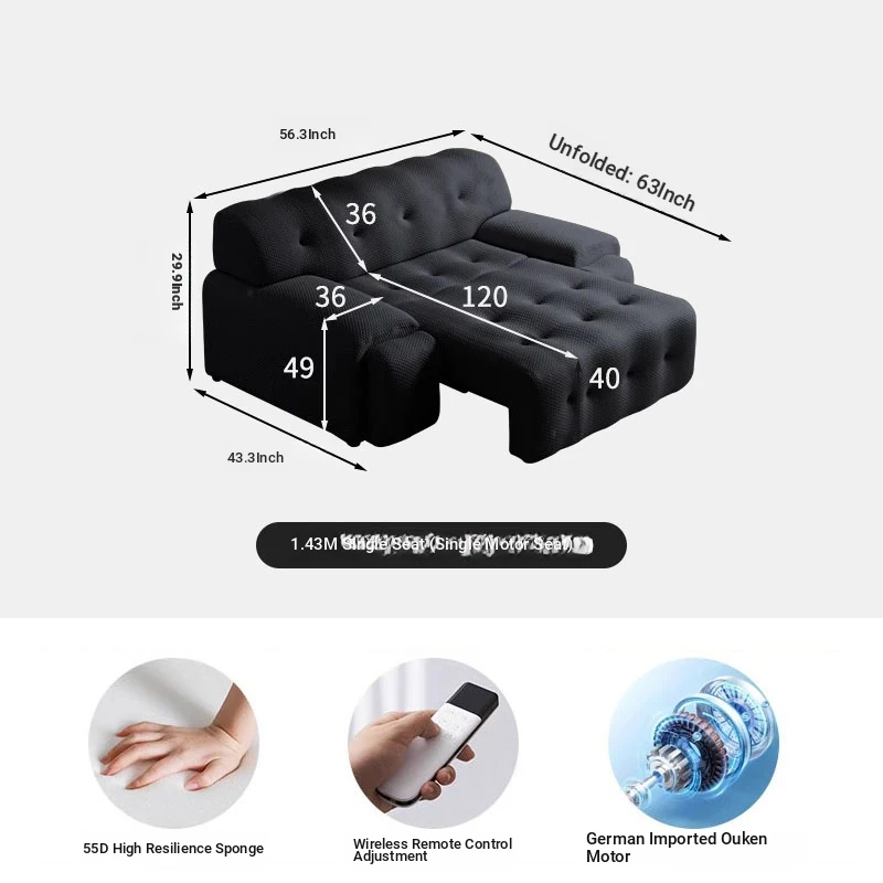 Rochburg Electric Sofa Bed - Versatile Folding Couch for Small Spaces, Stylish Black Fabric Sofa for Trendy Living Rooms, Perfect for Comfort and Functionality!