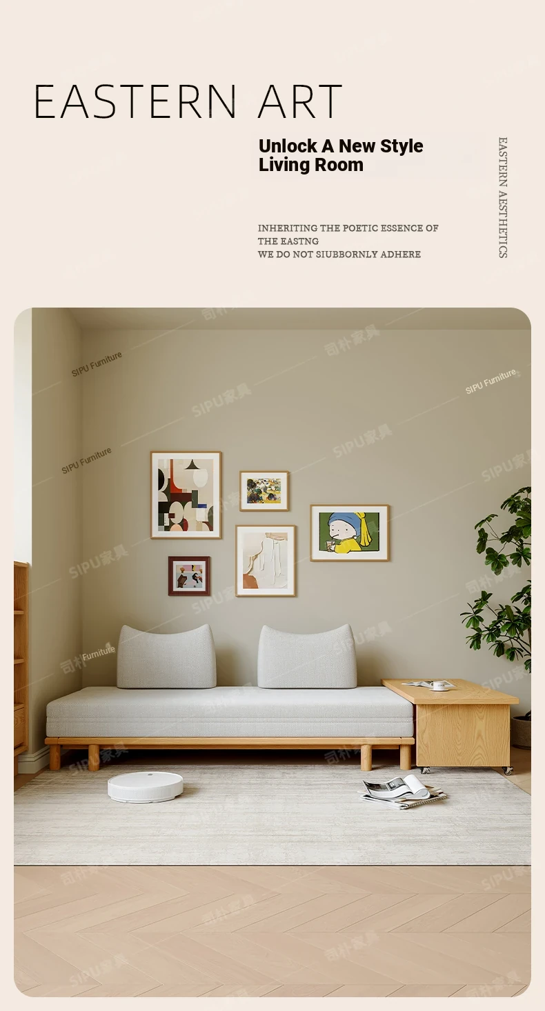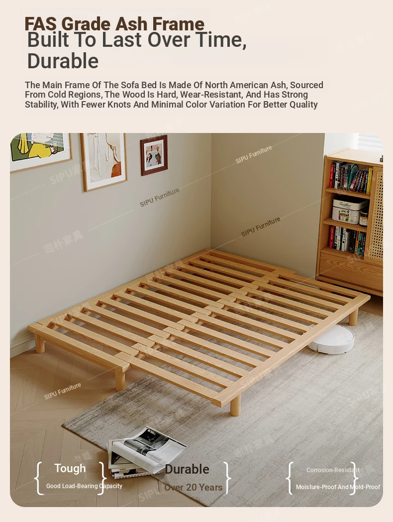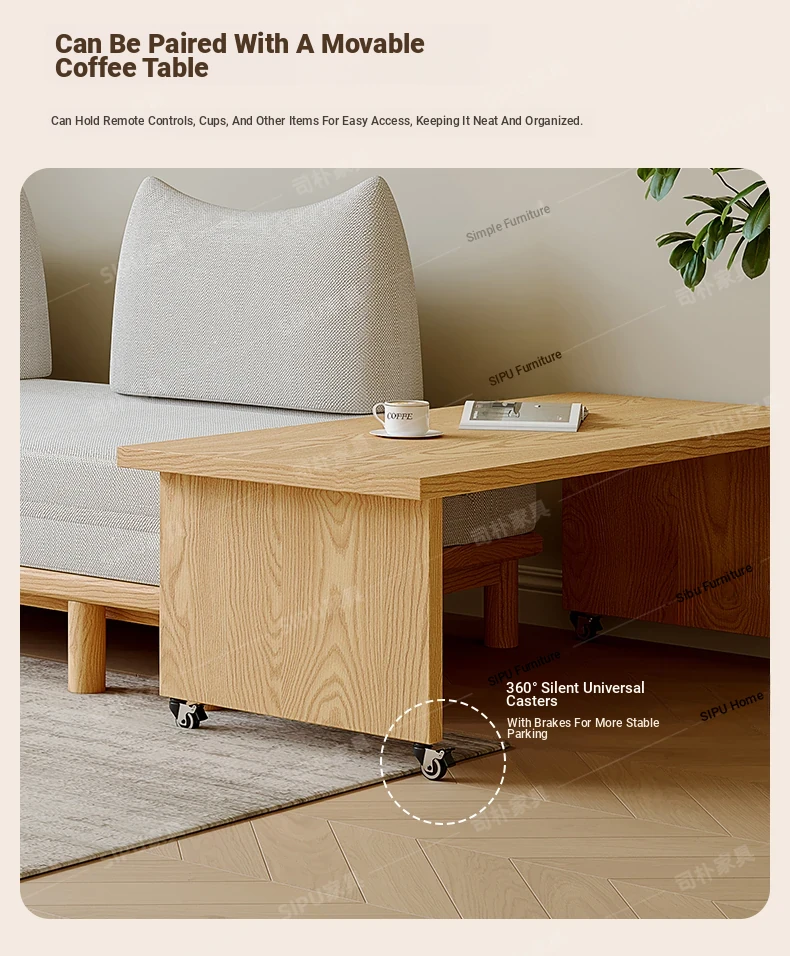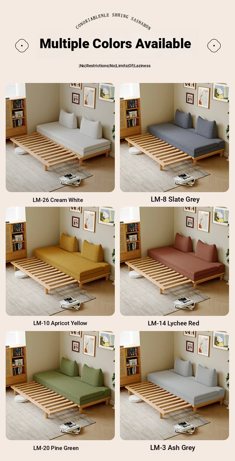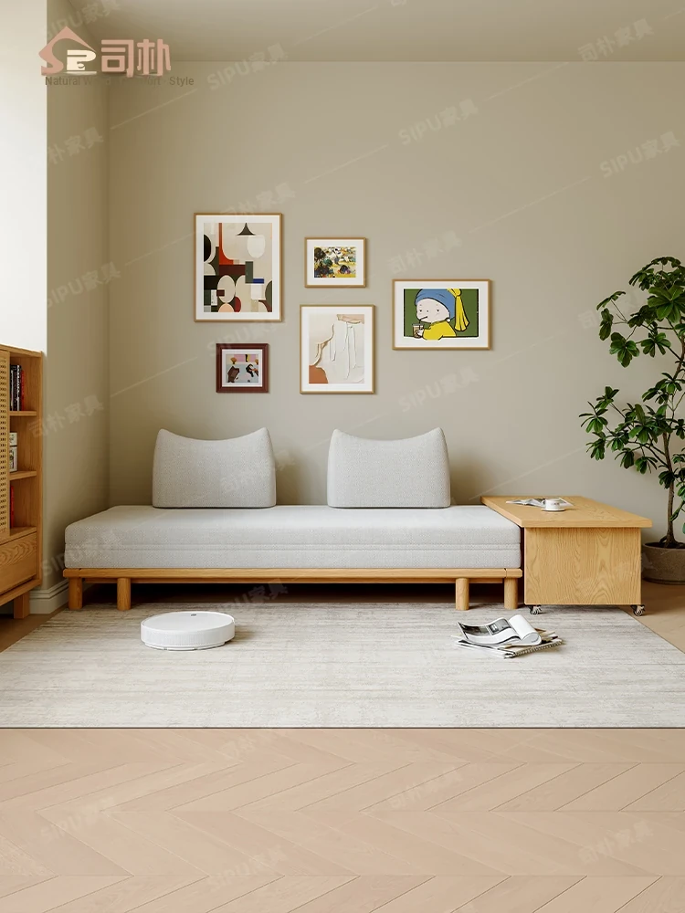 Scandinavian-Japanese Style Wooden Cream Balancing Sofa Bed for Small Living Rooms - Versatile 2-in-1 Design for Compact Spaces