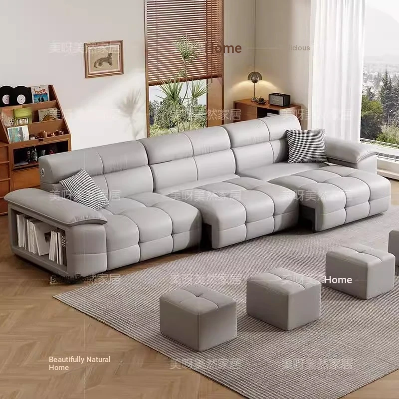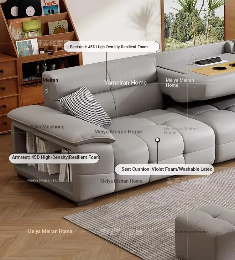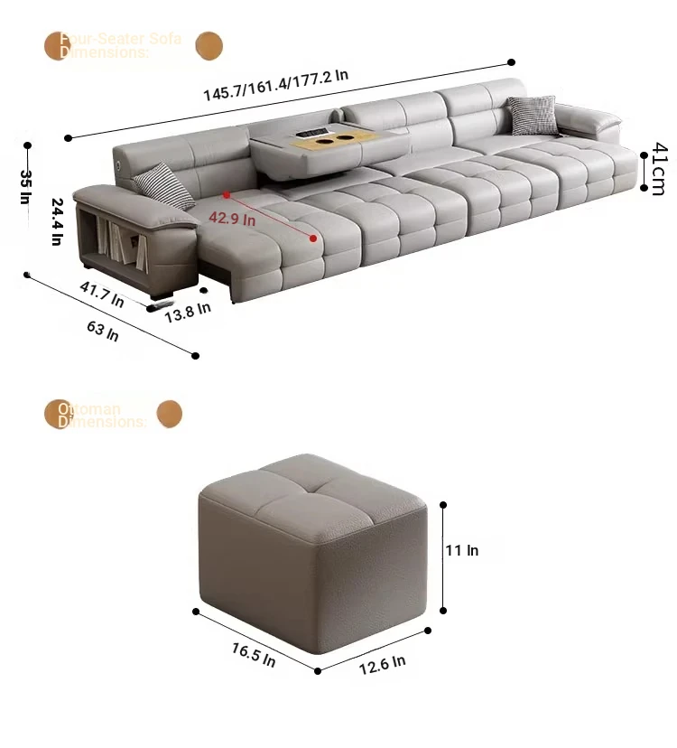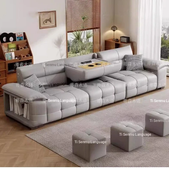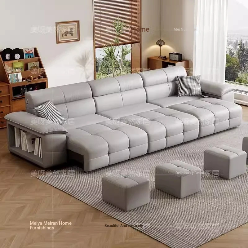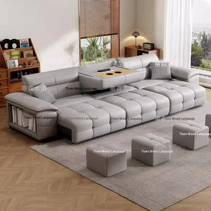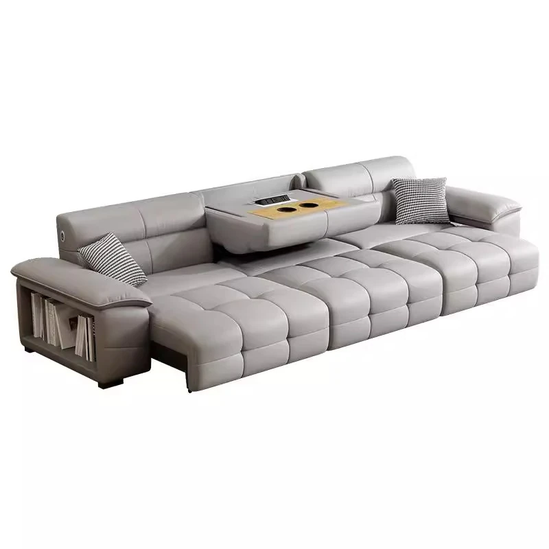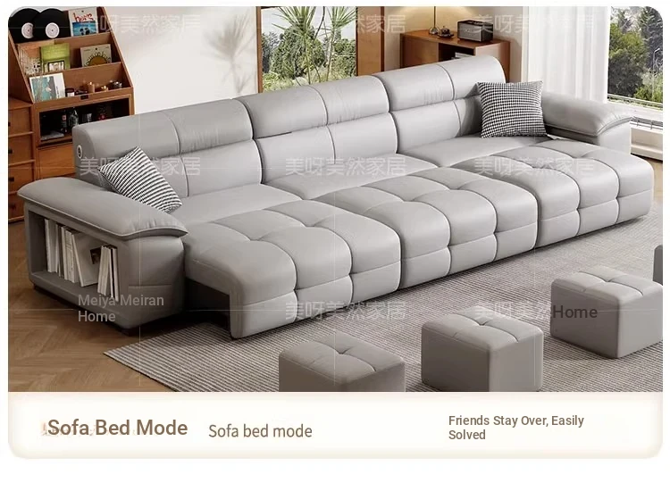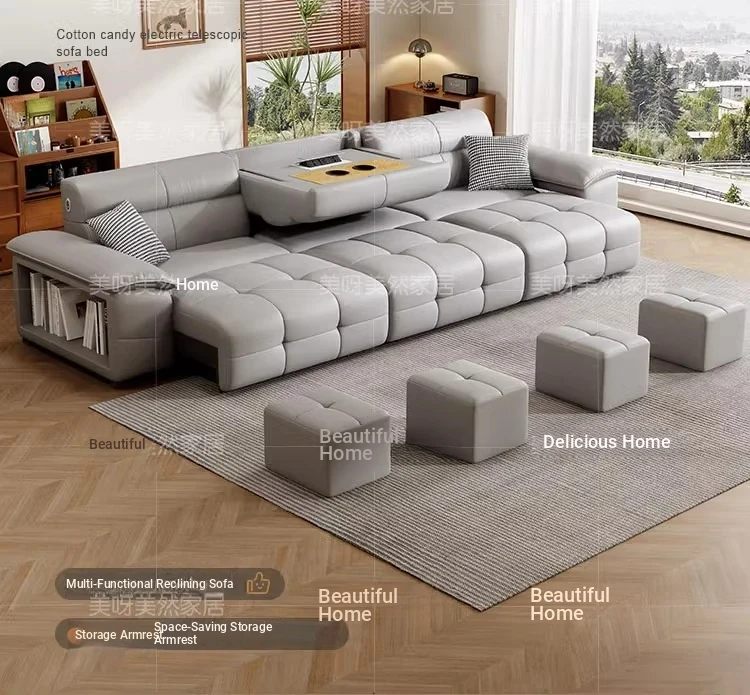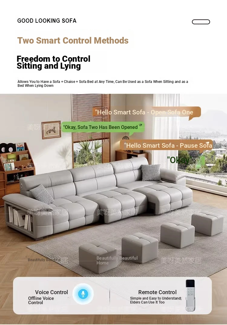 Smart Electric Leather Sofa Bed with Voice Control - Multi-functional, Wall-Free, Remote-Controlled, and Expandable for Your Living Room