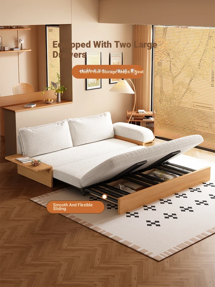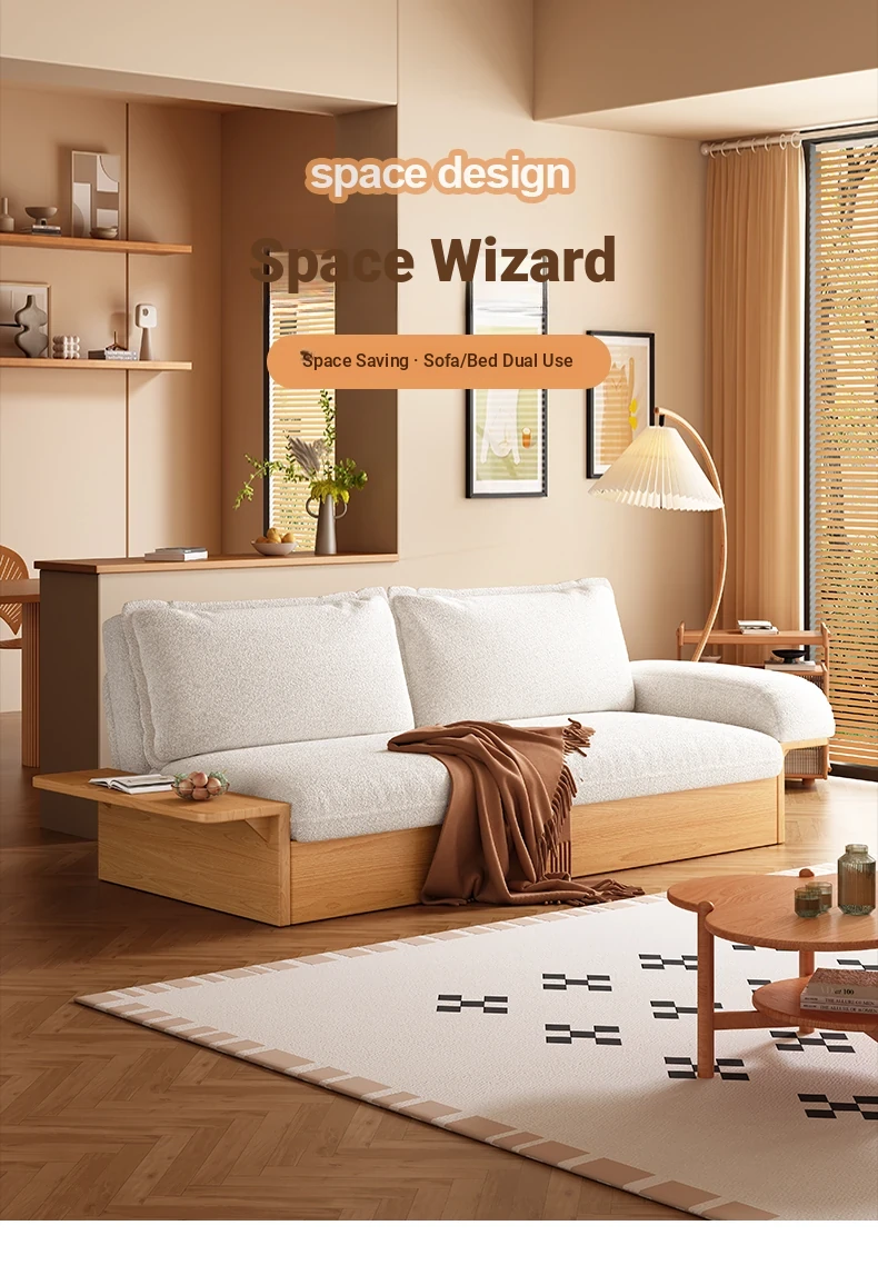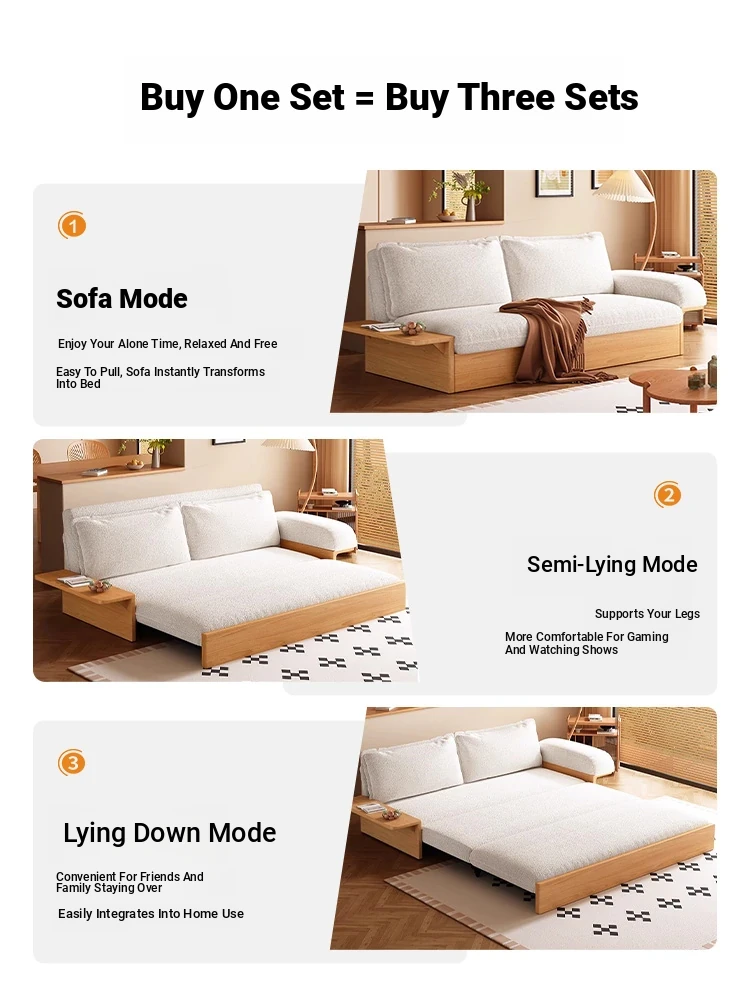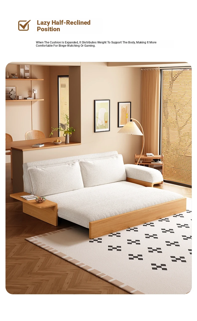 Yisheng Folding Sofa Bed - Modern Minimalist Solid Wood Design for Small Spaces, Versatile and Multi-functional for Your Living Room, Perfect for Cozy Homes