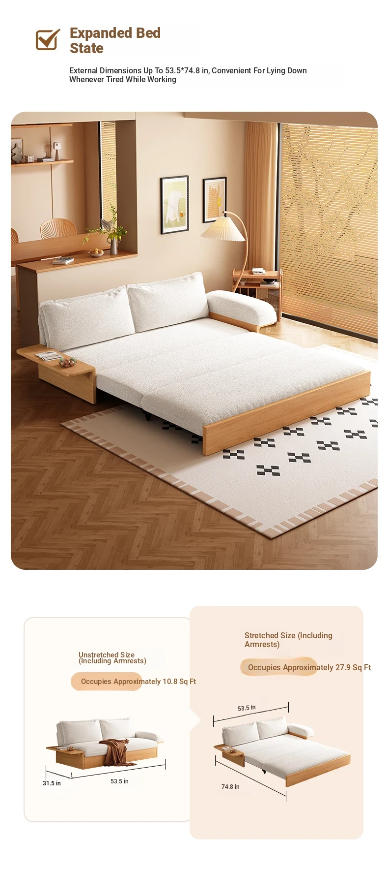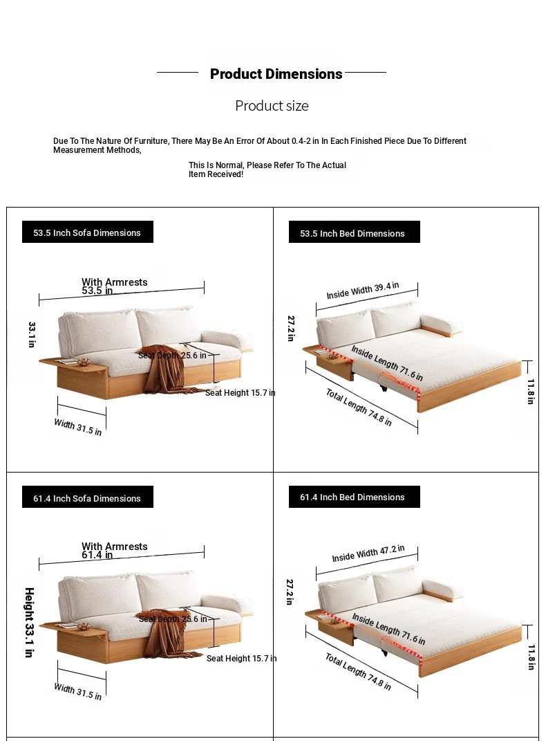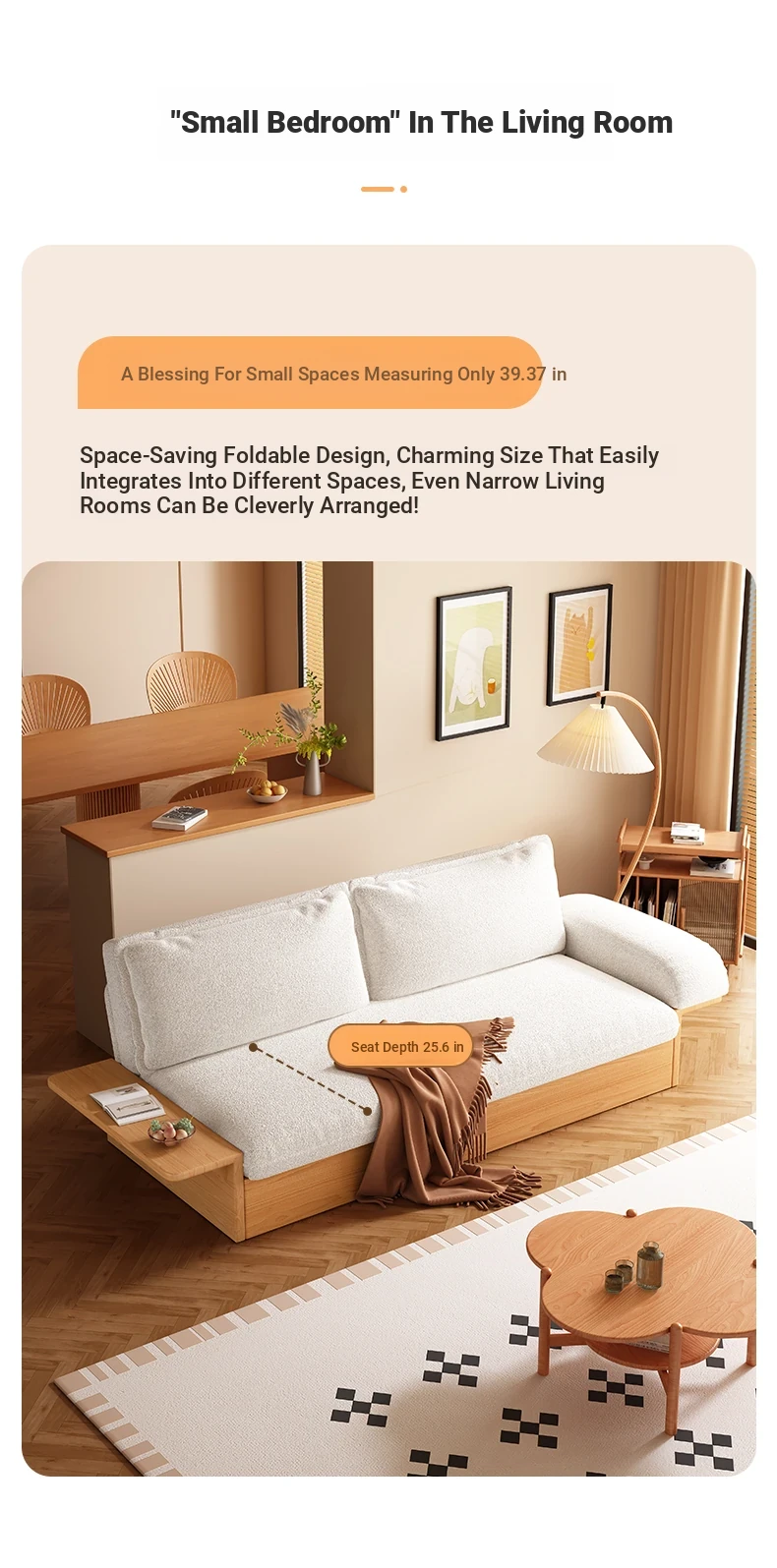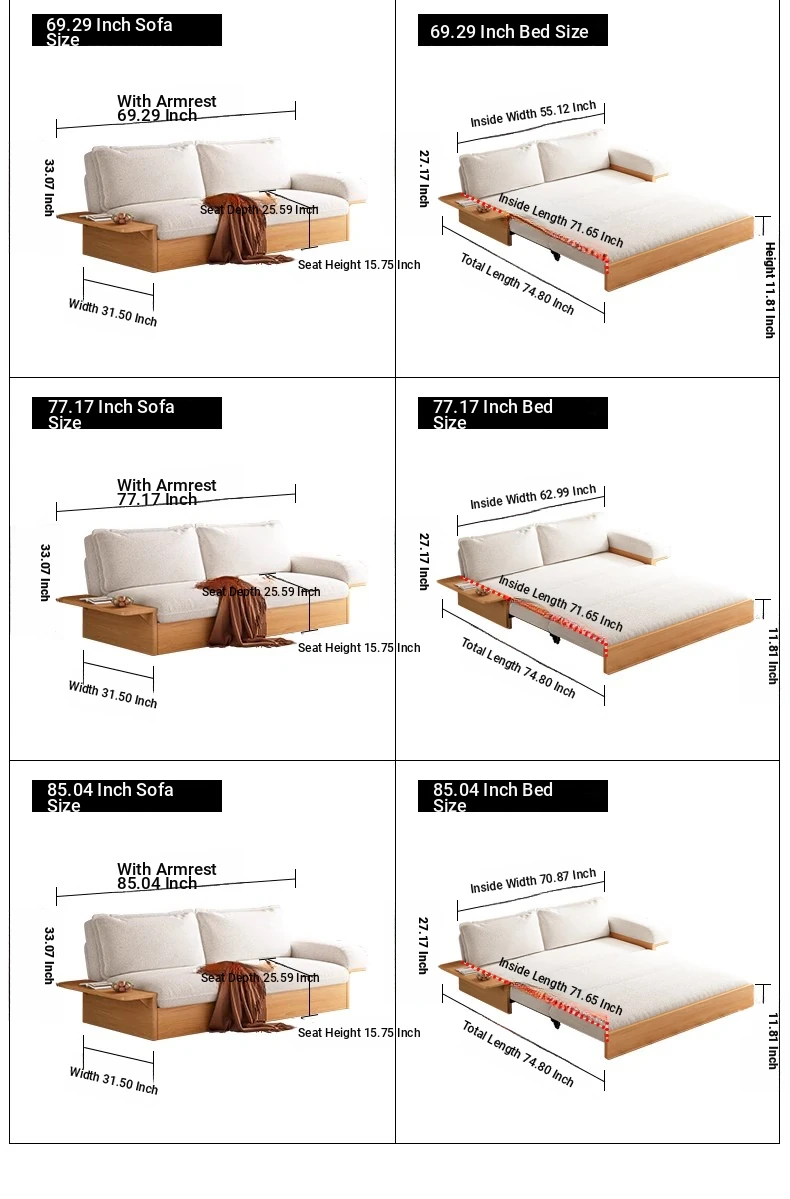 Yisheng Folding Sofa Bed - Modern Minimalist Solid Wood Design for Small Spaces, Versatile and Multi-functional for Your Living Room, Perfect for Cozy Homes
