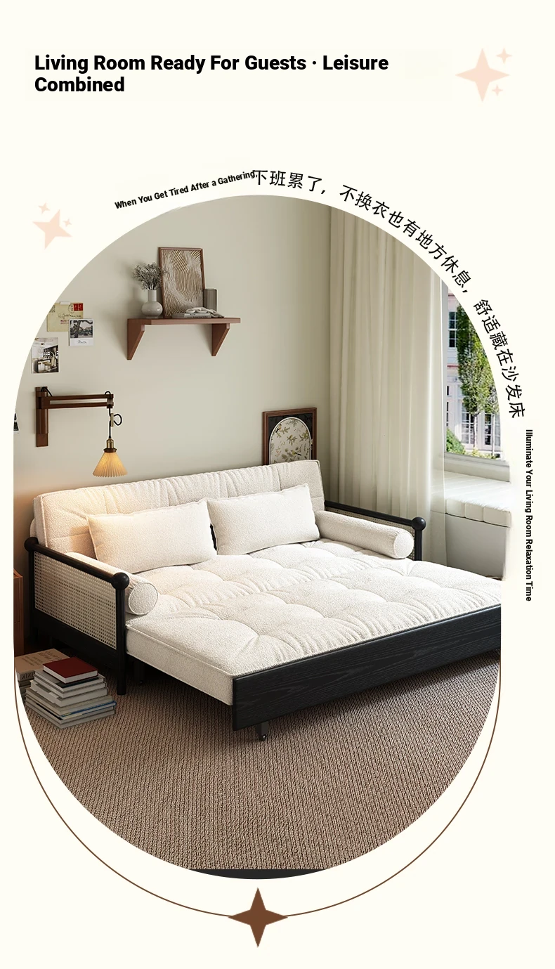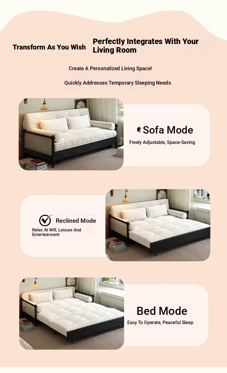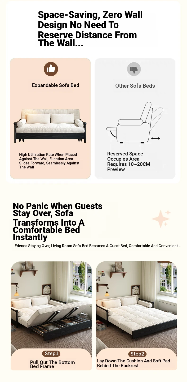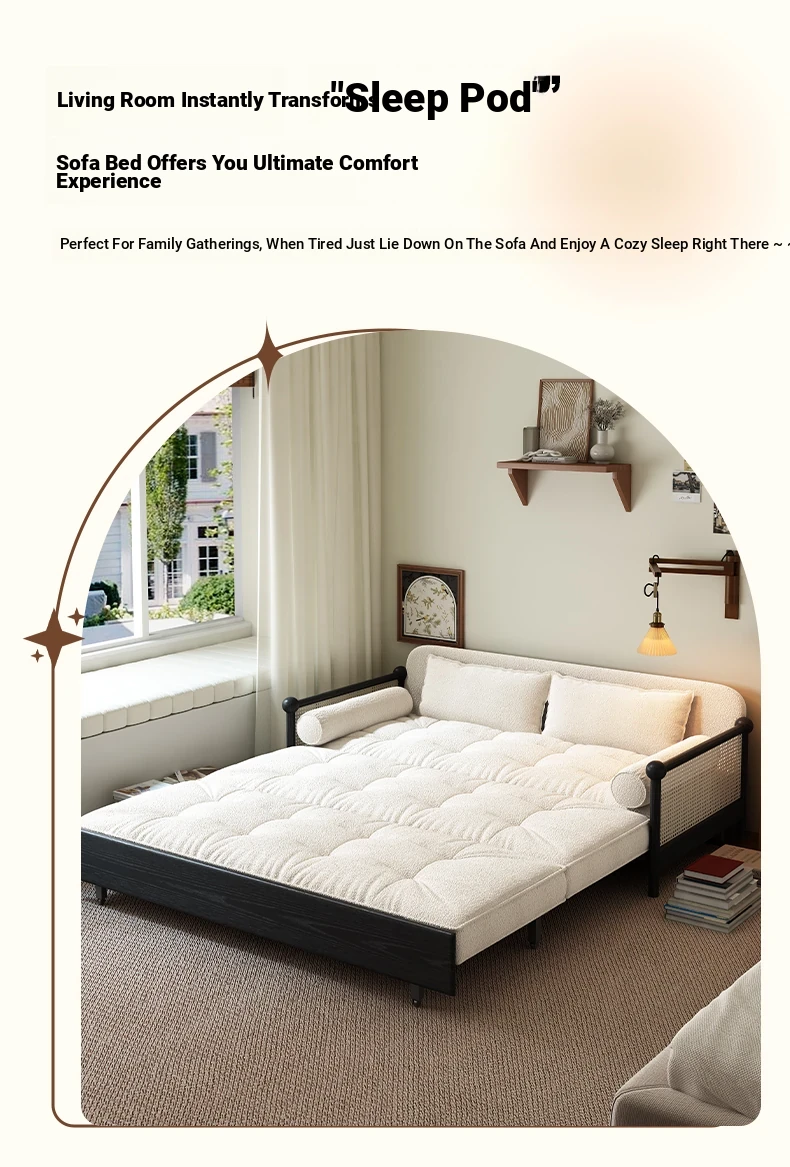 Yisheng Multifunctional Solid Wood Sofa Bed - Foldable 2-in-1 Design for Small Living Rooms, Pull-Out Double Sofa for Space-Saving Comfort