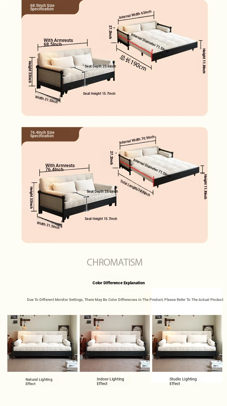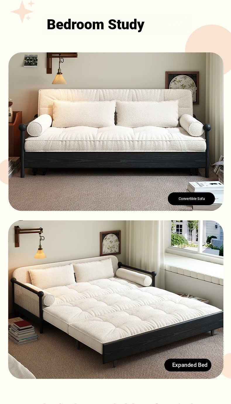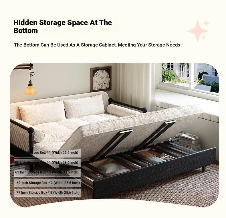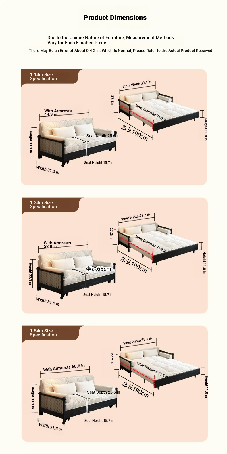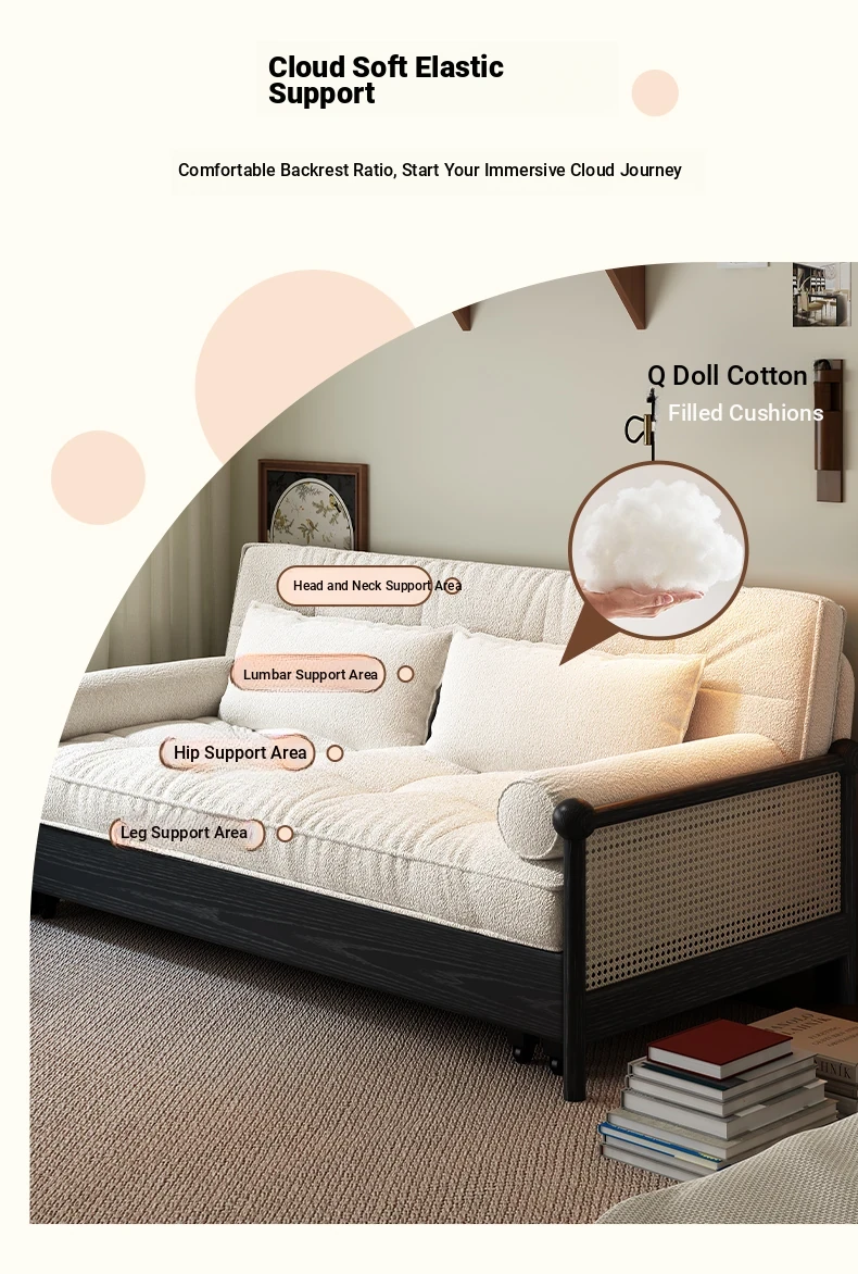 Yisheng Multifunctional Solid Wood Sofa Bed - Foldable 2-in-1 Design for Small Living Rooms, Pull-Out Double Sofa for Space-Saving Comfort