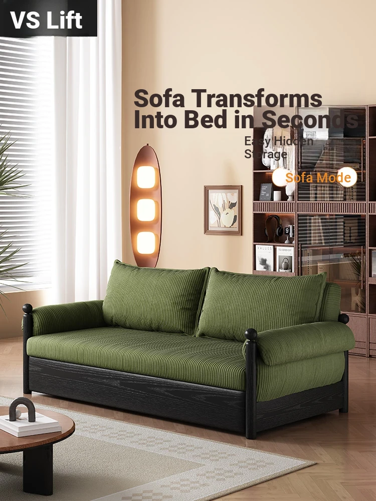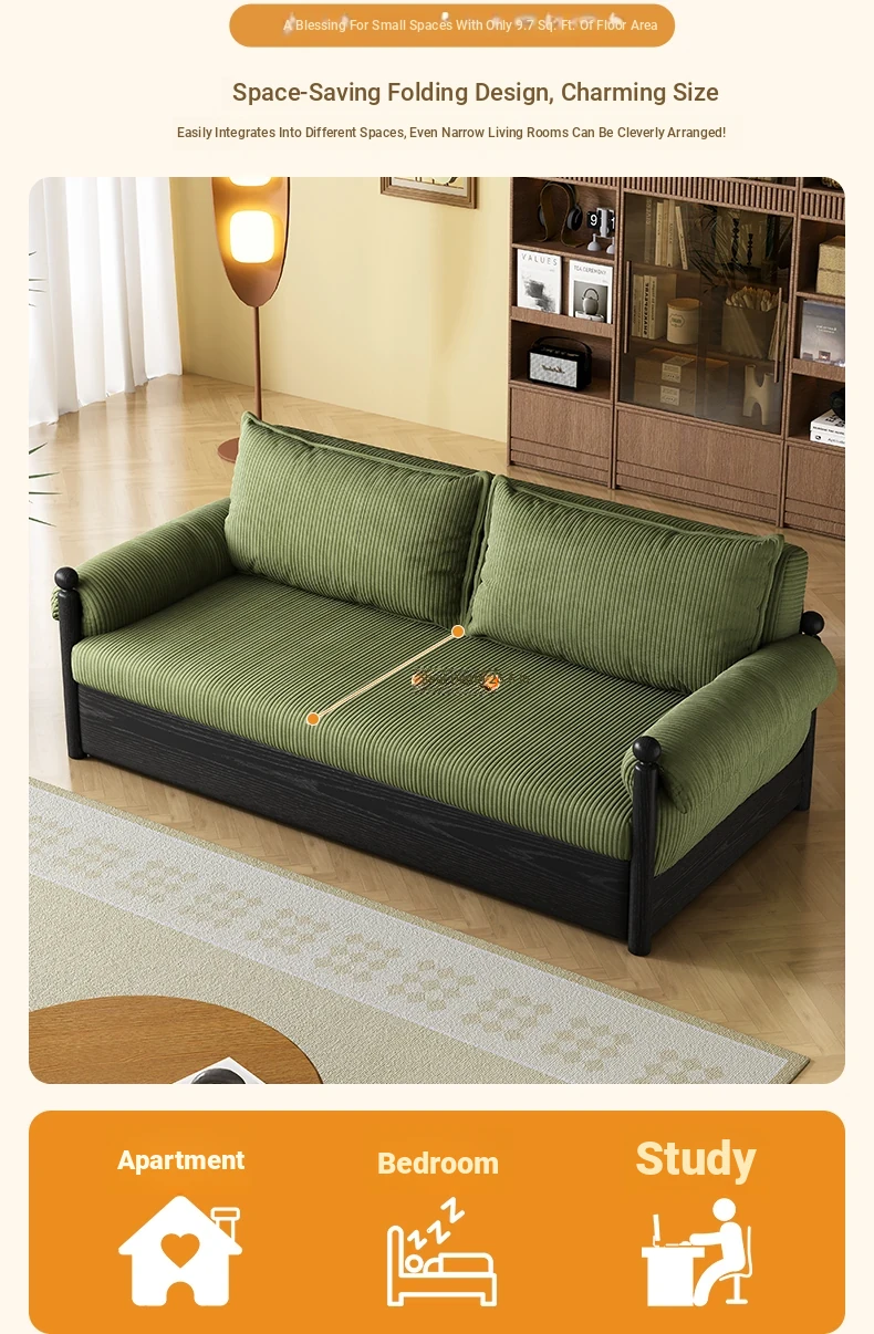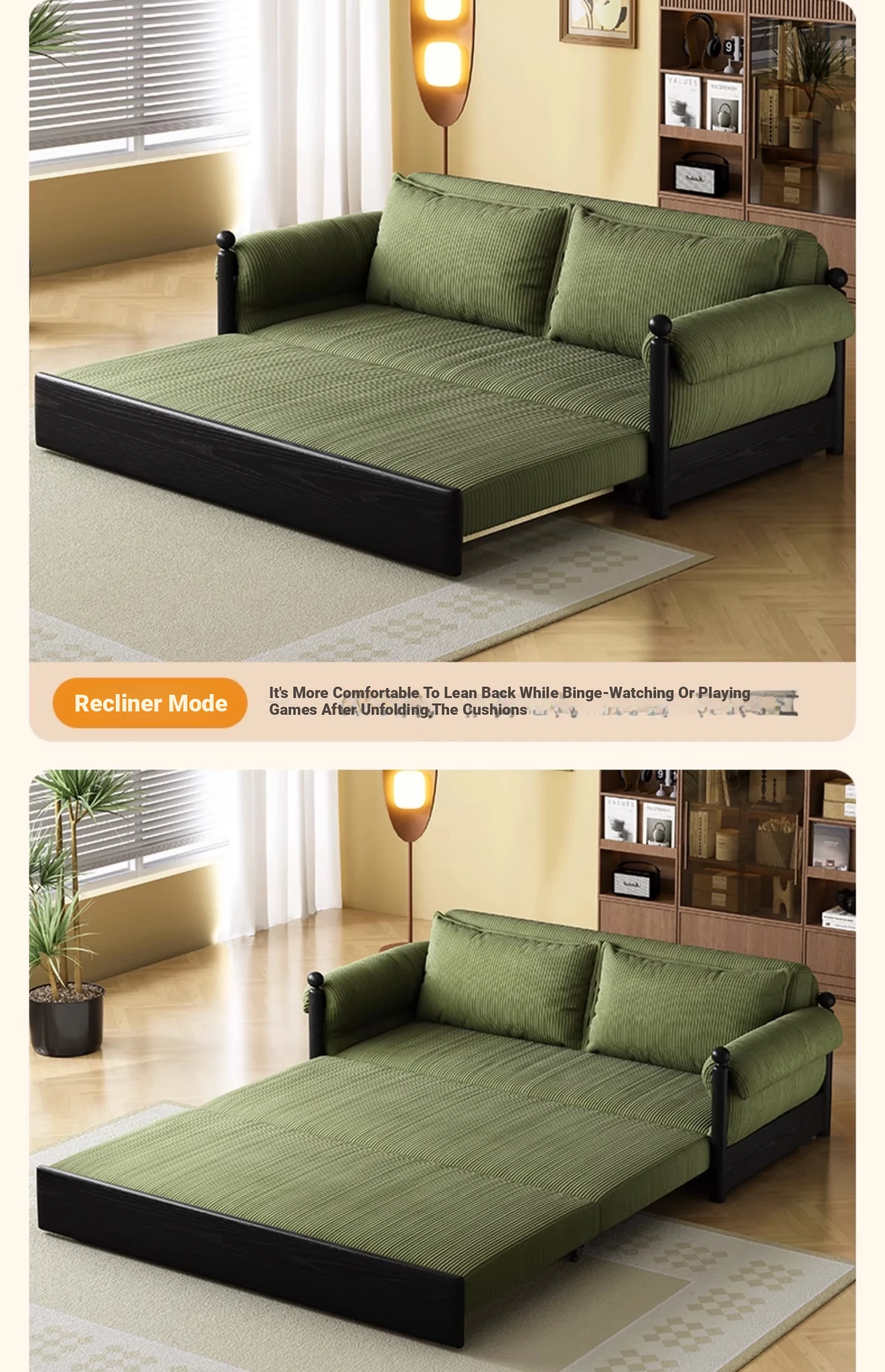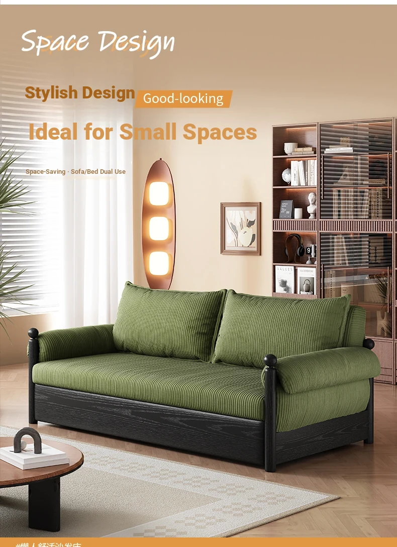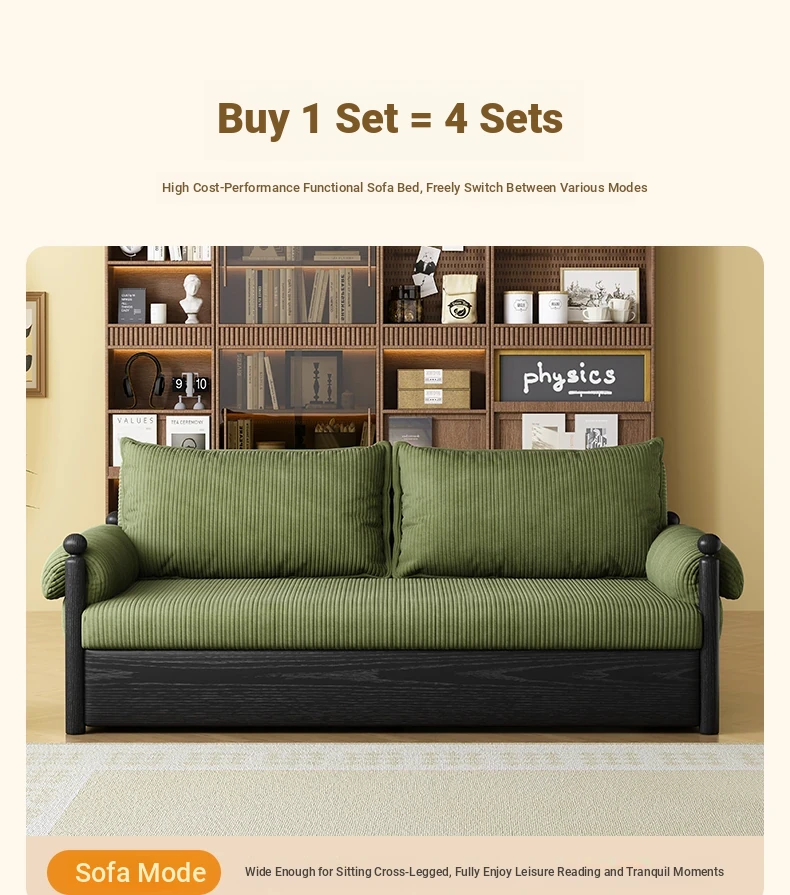 Yisheng Shuyin Solid Wood Sofa Bed - Modern Minimalist Foldable and Expandable Dual-Use for Living Room, Space-Saving Multifunctional Double Bed for Small Apartments