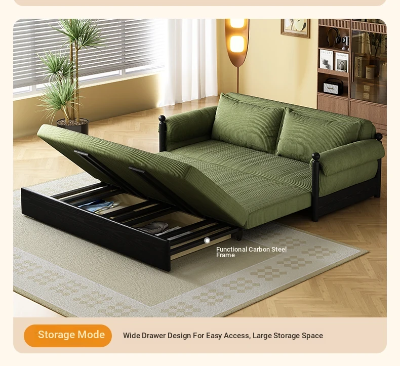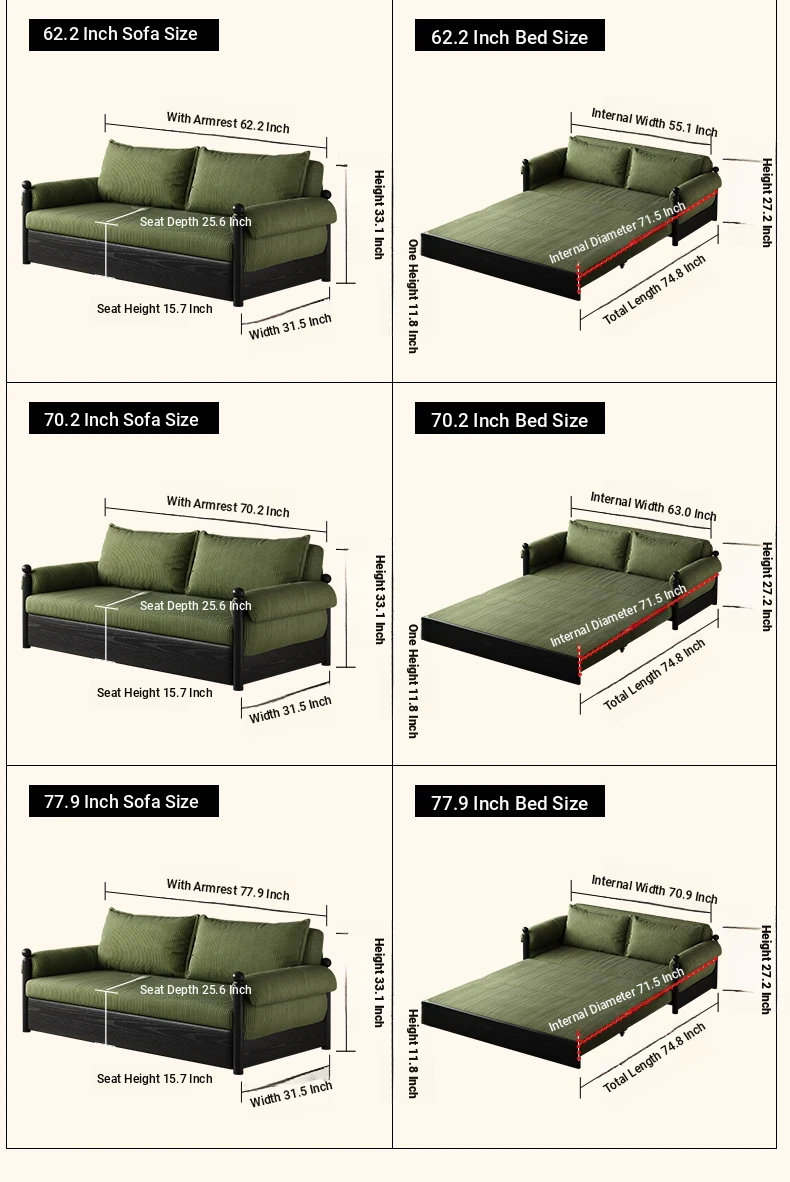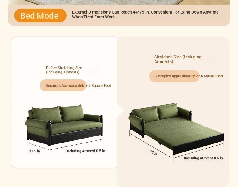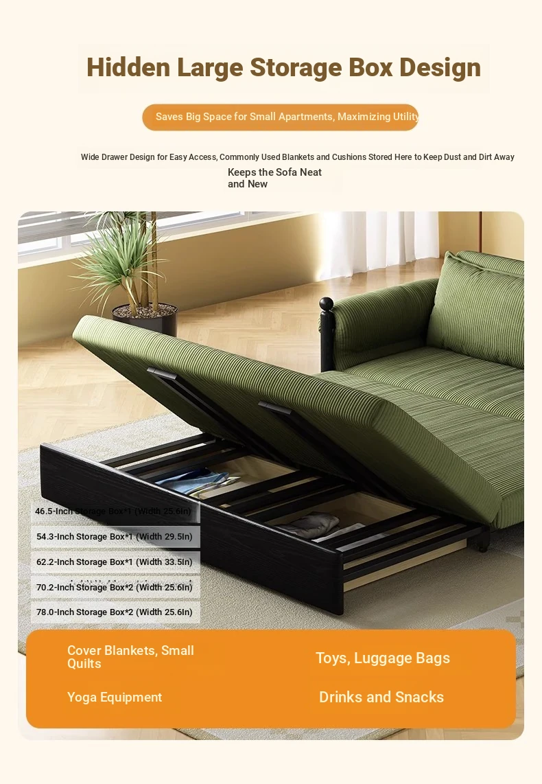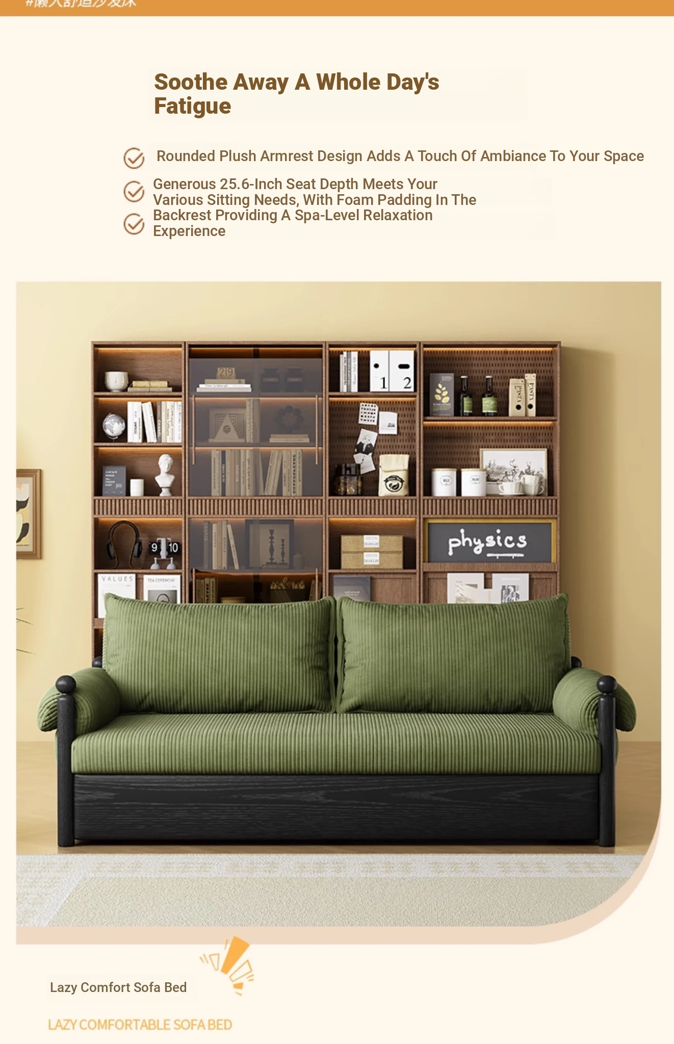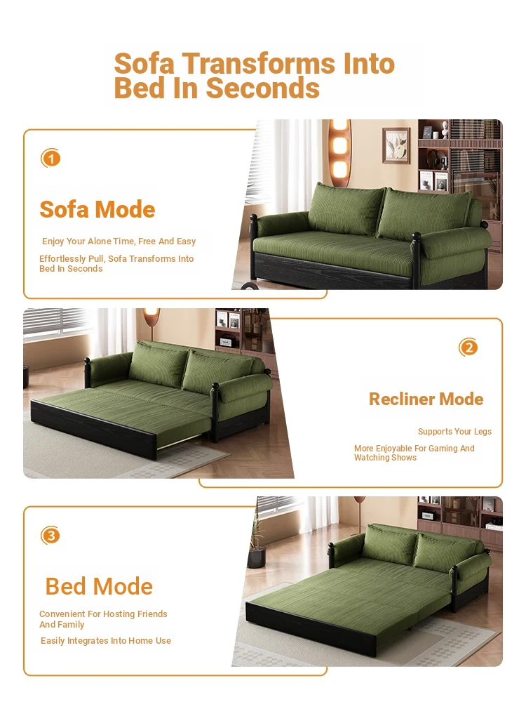Yisheng Shuyin Solid Wood Sofa Bed - Modern Minimalist Foldable and Expandable Dual-Use for Living Room, Space-Saving Multifunctional Double Bed for Small Apartments
