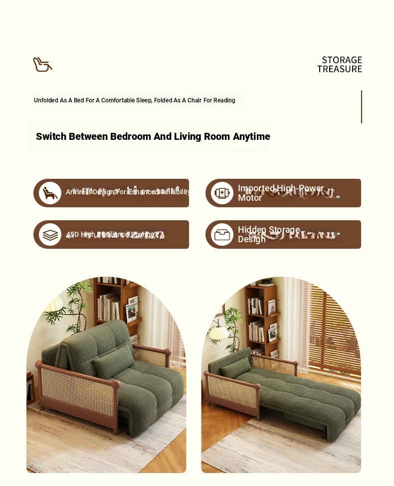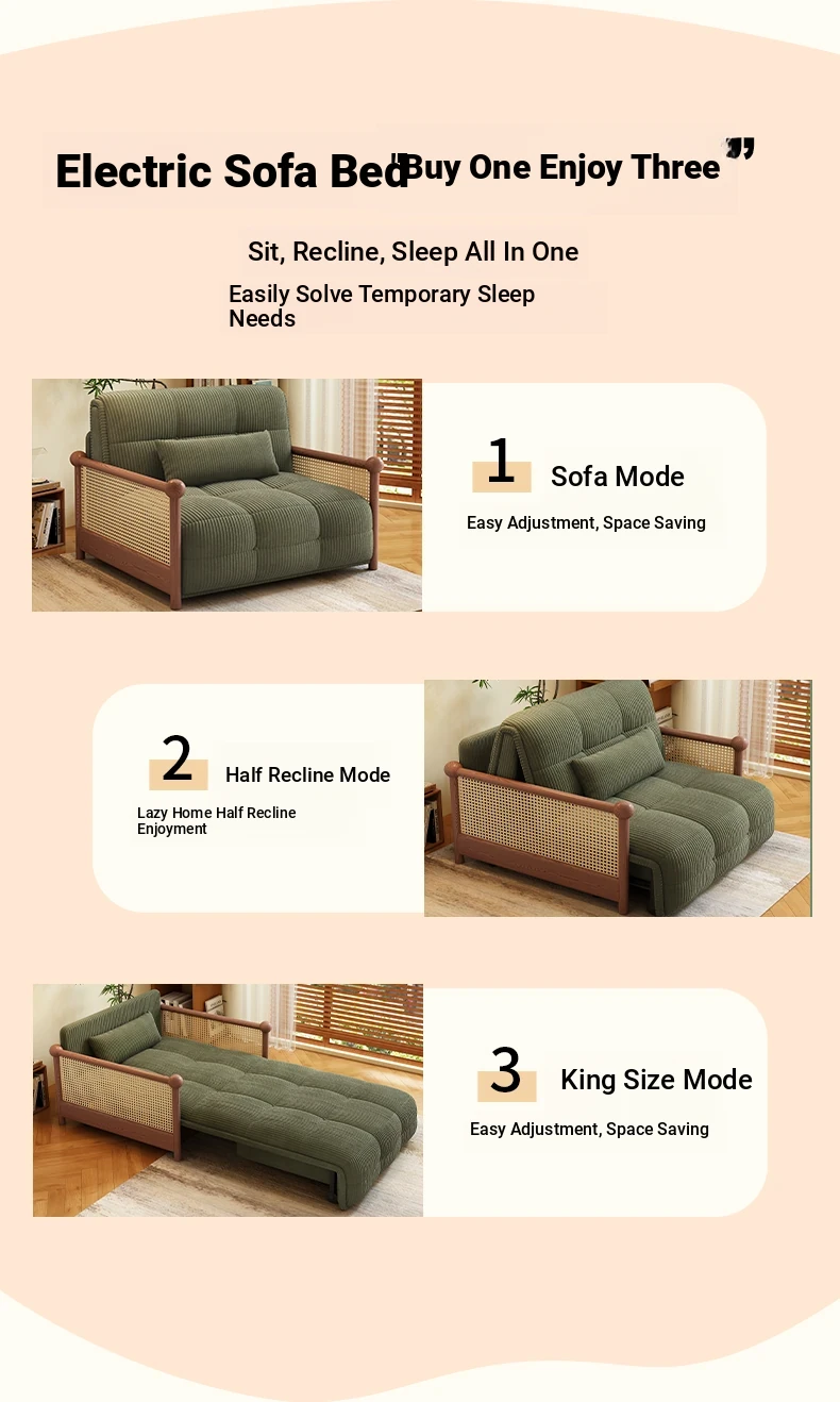 Yisheng Smart Electric Folding Sofa Bed - Modern Minimalist Multifunctional Expandable Double Bed for Small Spaces and Home Offices