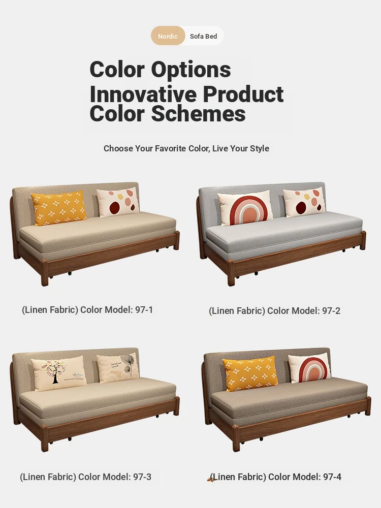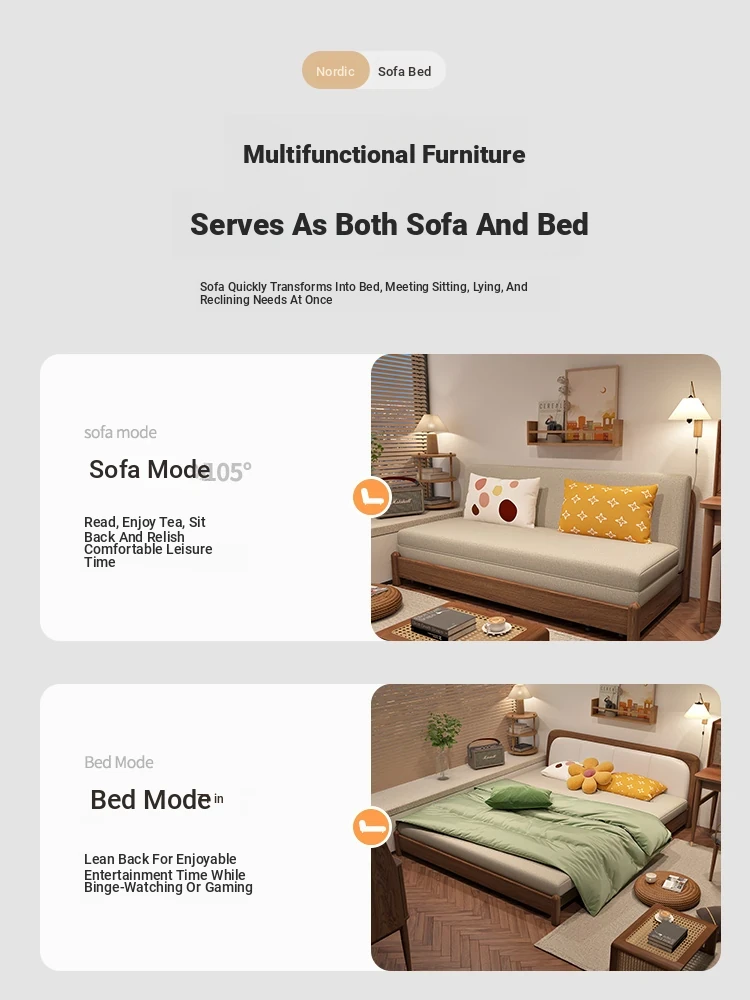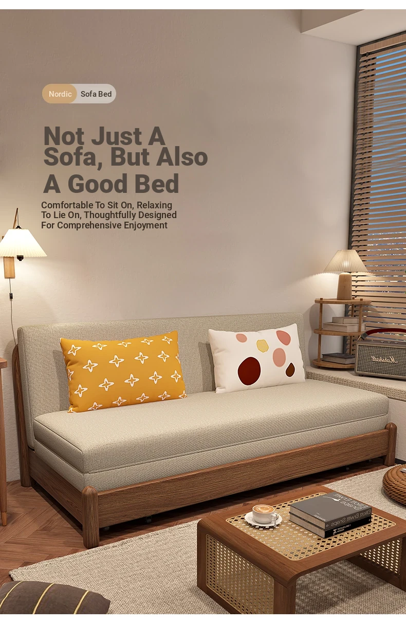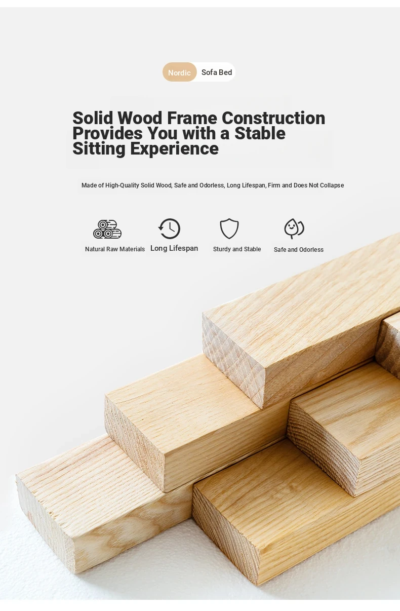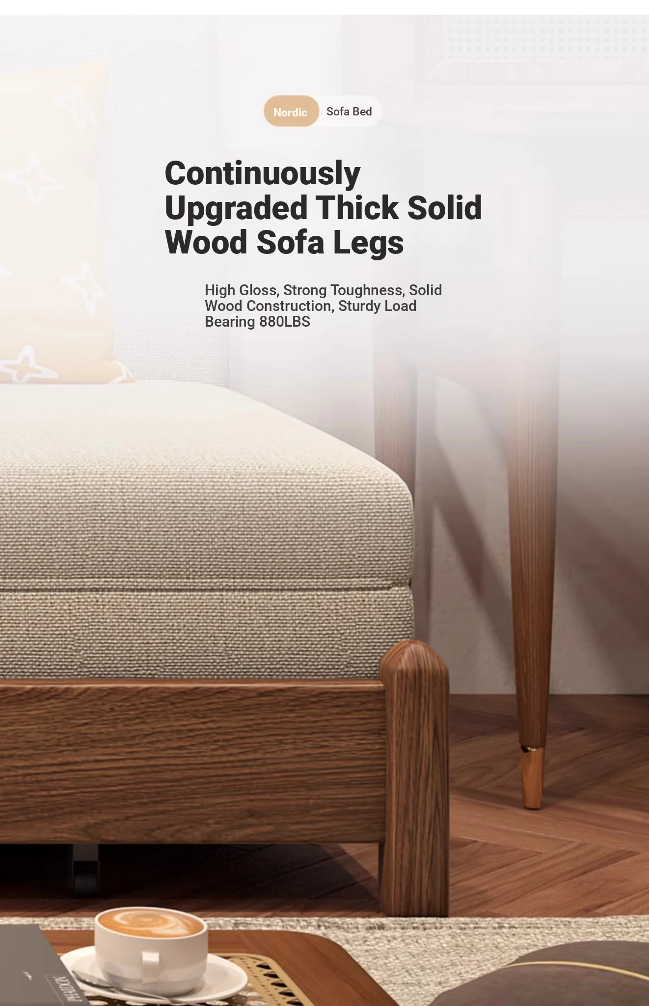 Yisheng Solid Wood Sofa Bed - Foldable Multifunctional Nordic Modern Design for Small Living Rooms, Stylish Fabric Sofa Bed for Couples