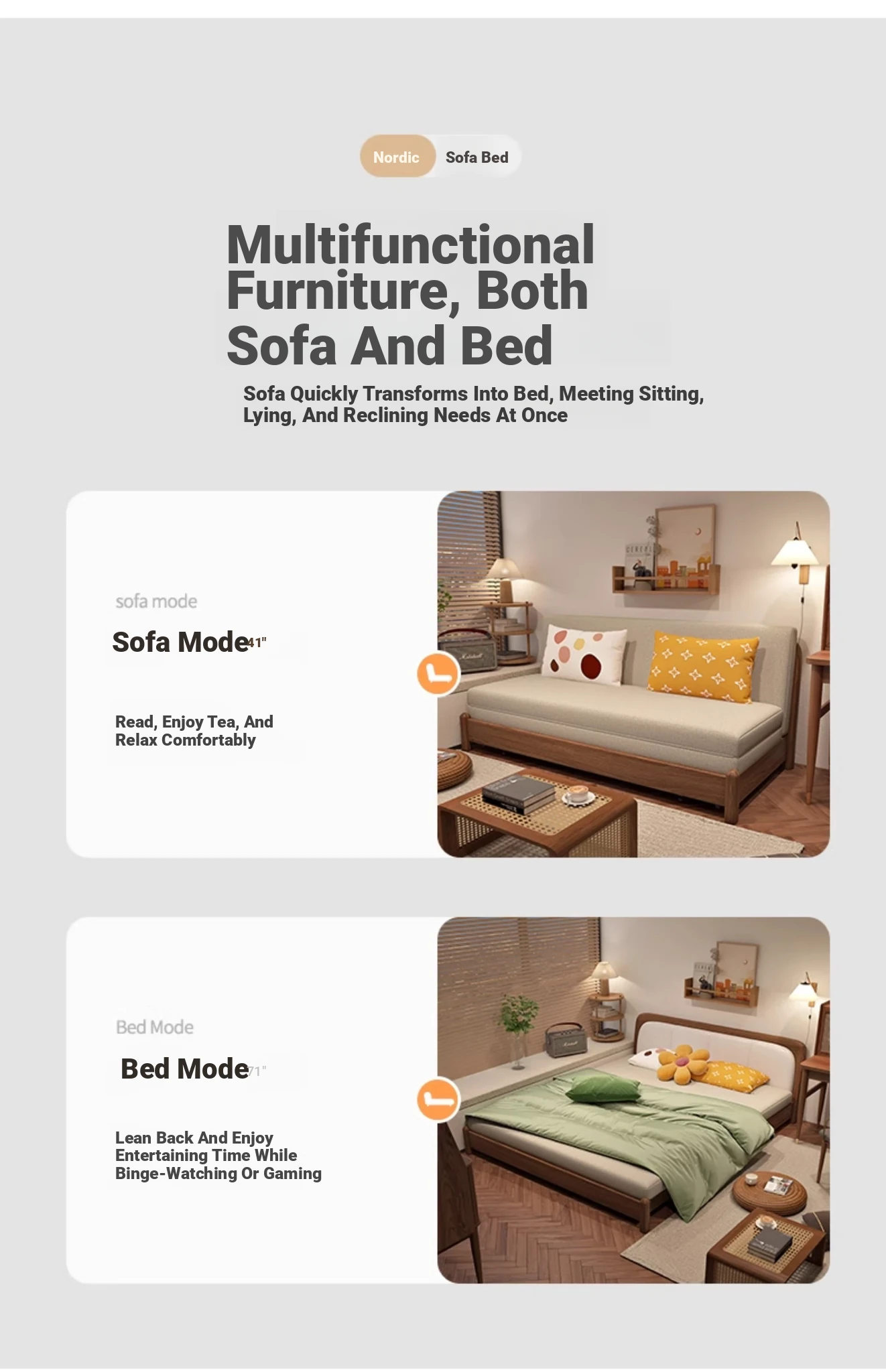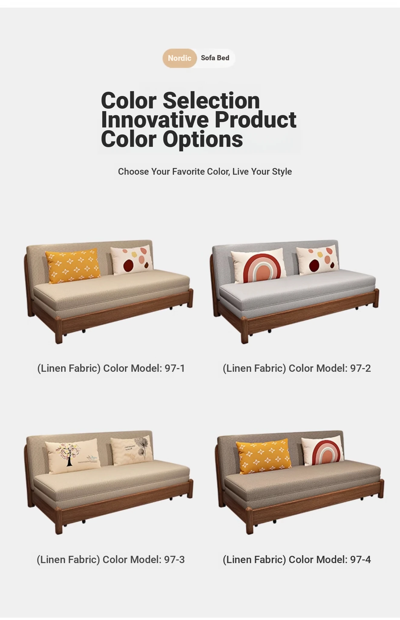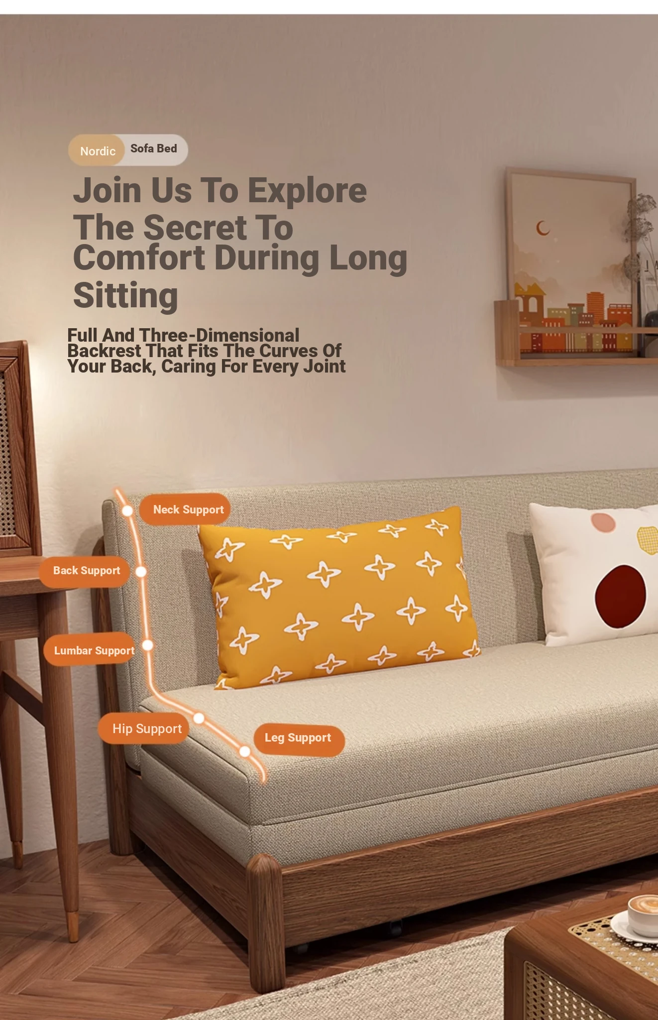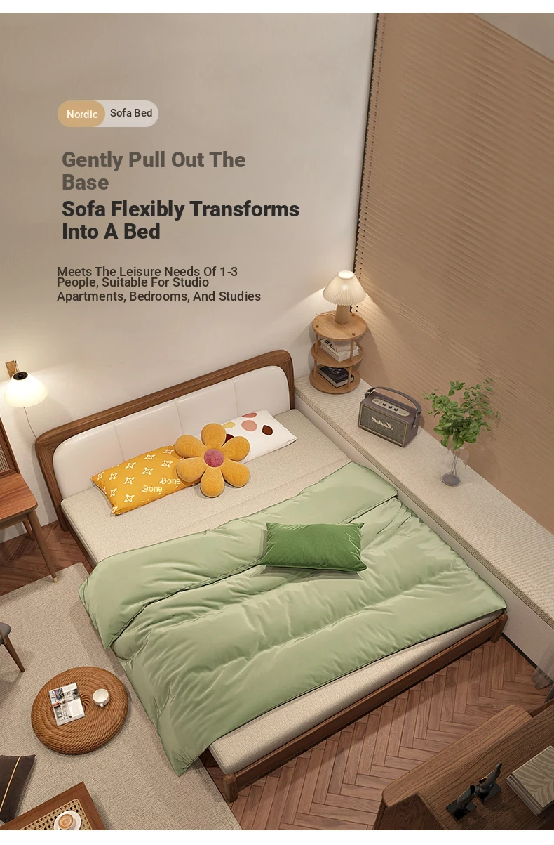 Yisheng Solid Wood Sofa Bed - Foldable Multifunctional Nordic Modern Design for Small Living Rooms, Stylish Fabric Sofa Bed for Couples