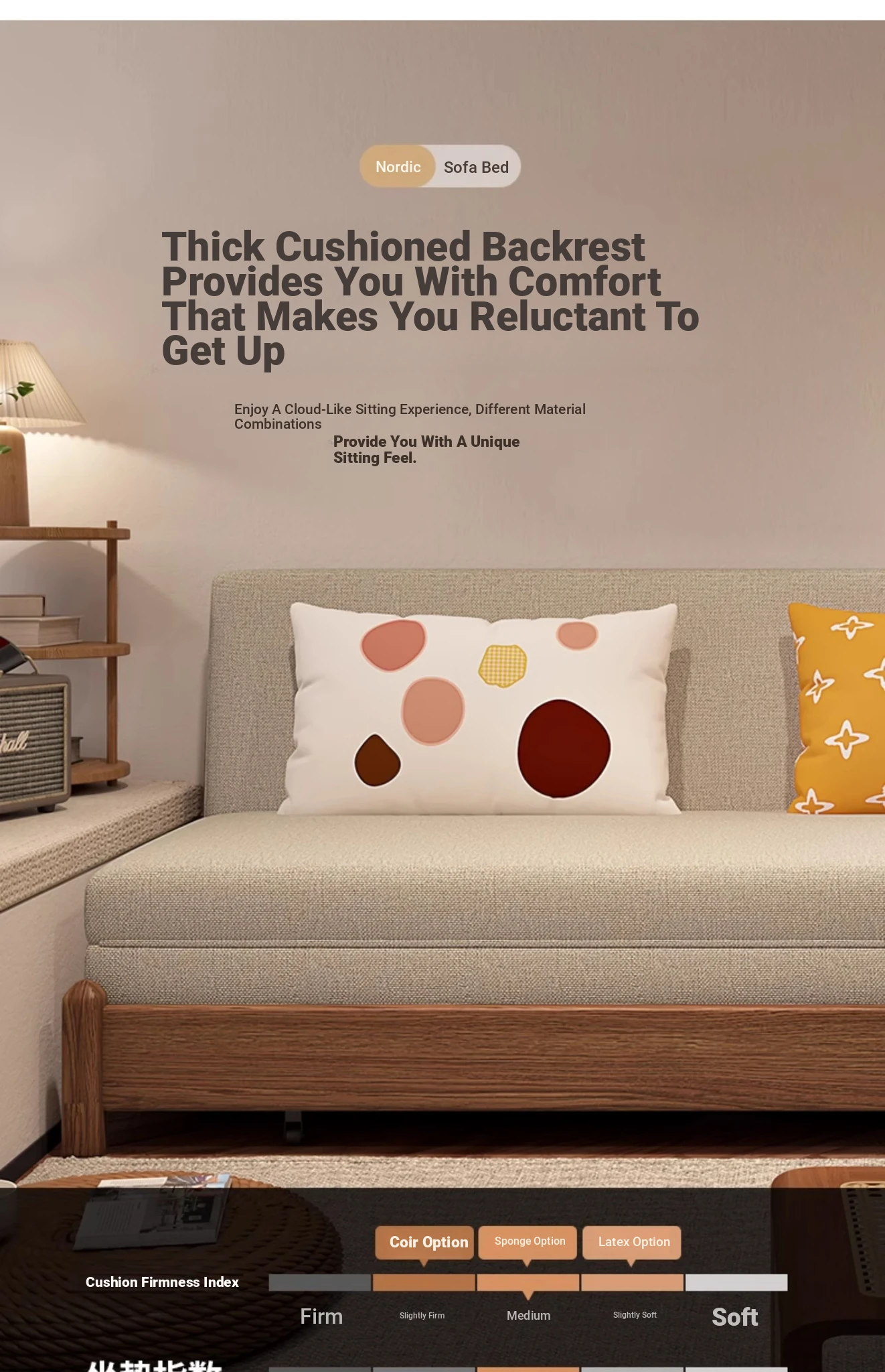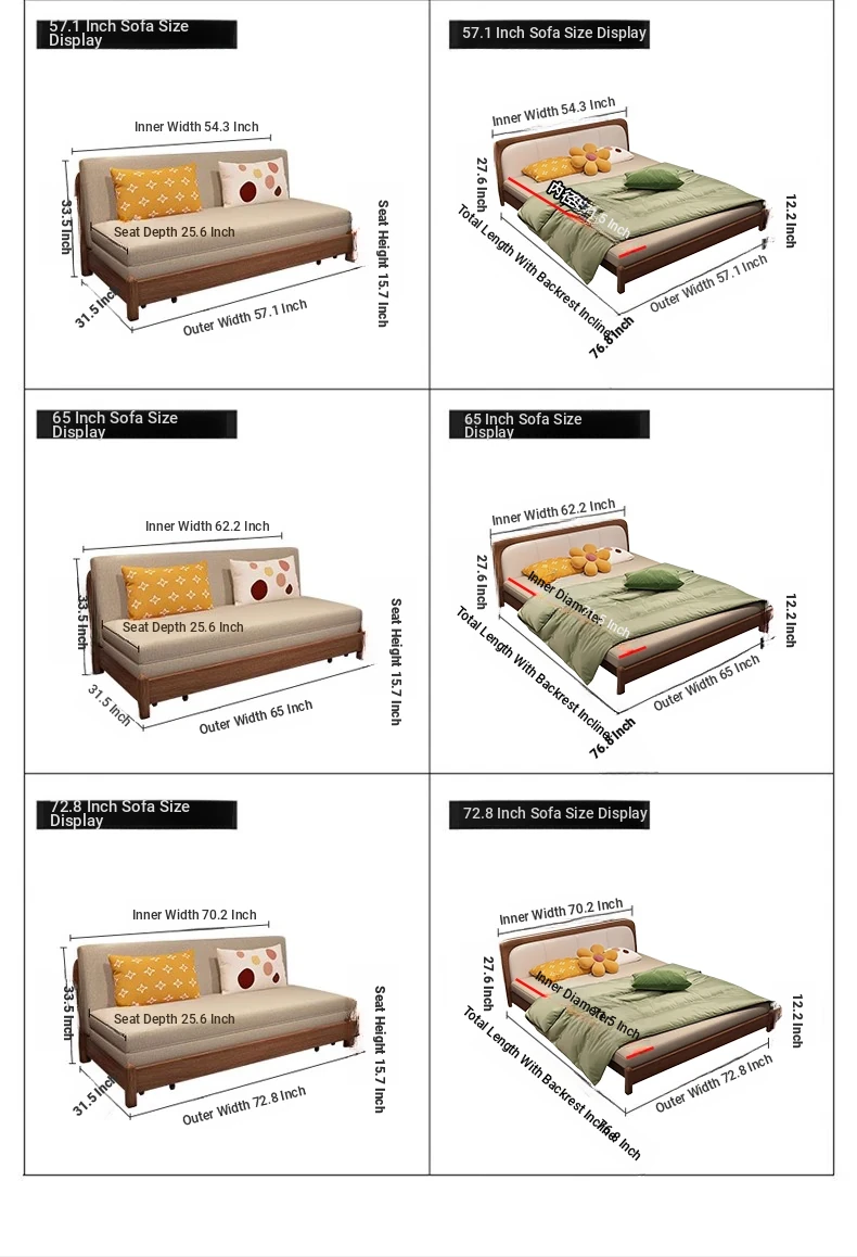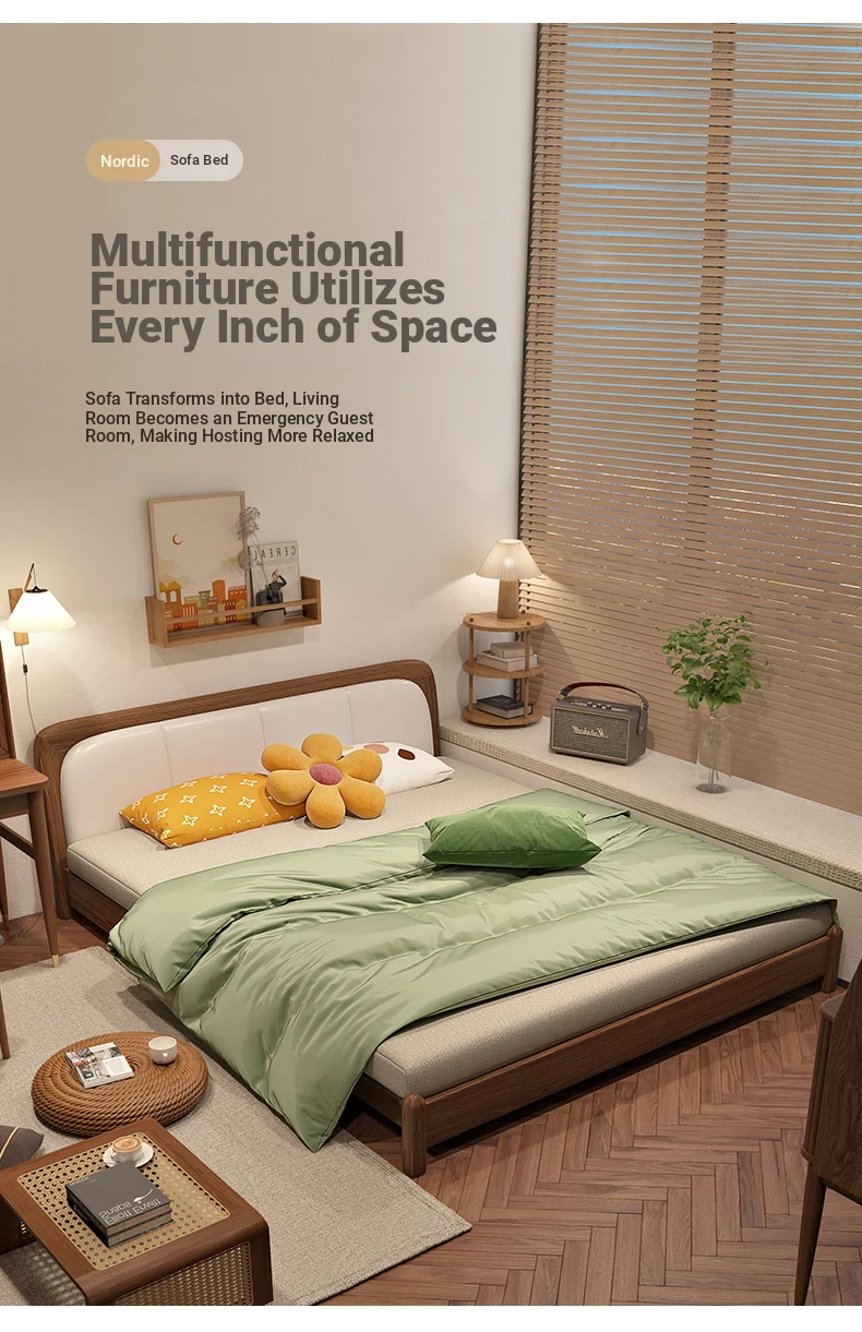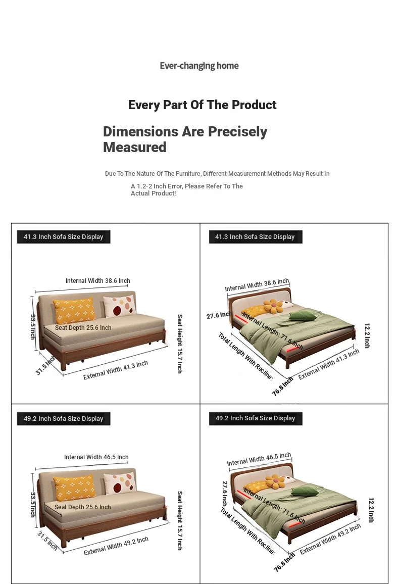 Yisheng Solid Wood Sofa Bed - Foldable Multifunctional Nordic Modern Design for Small Living Rooms, Stylish Fabric Sofa Bed for Couples