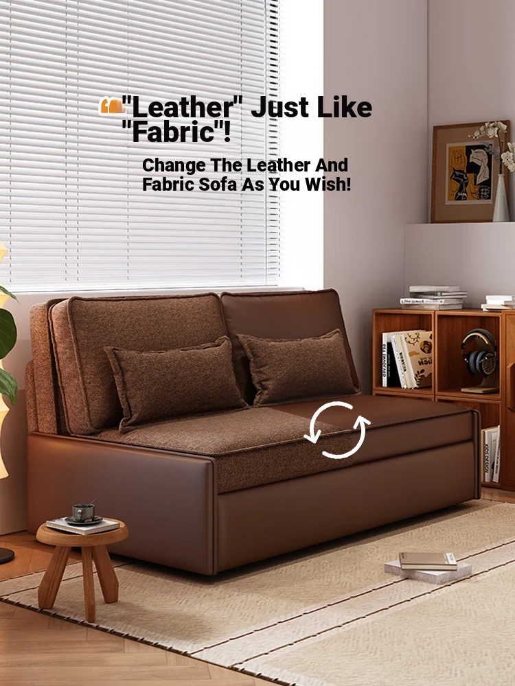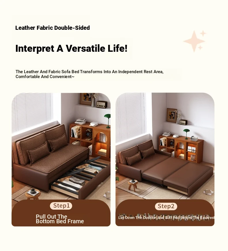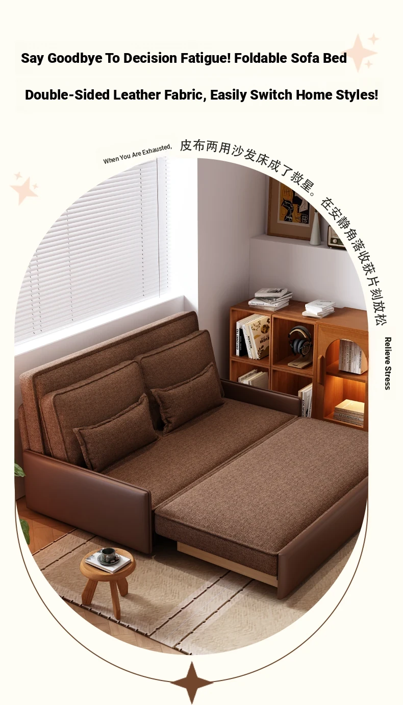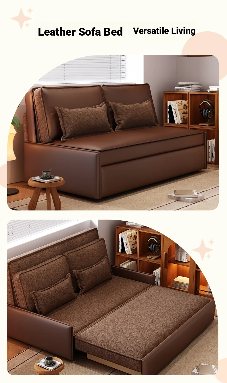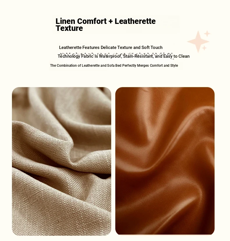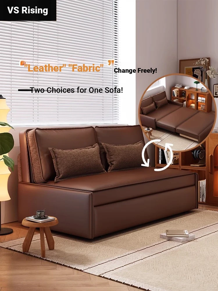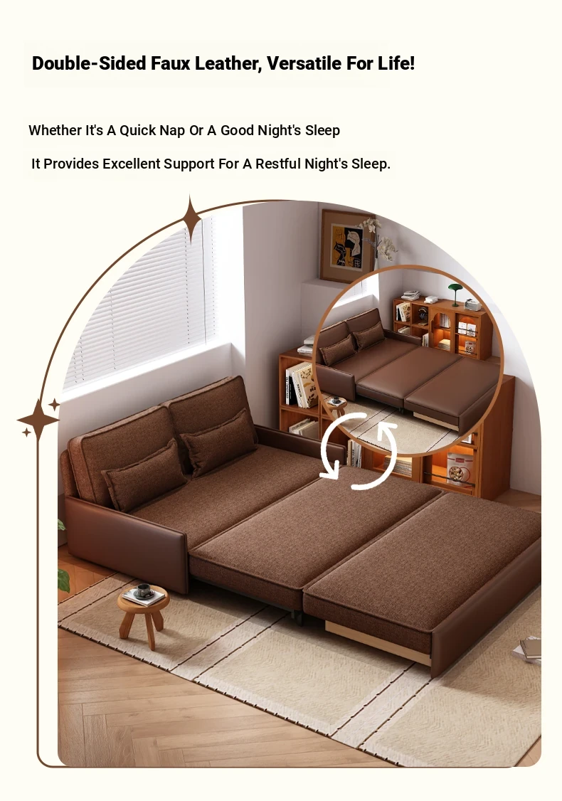 Yisheng Star Nest Solid Wood Sofa Bed - Modern Minimalist Folding Multifunctional Sofa in Two-Tone Leather Fabric for Living Room, Perfect for Style and Comfort!