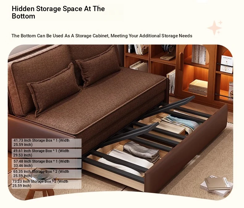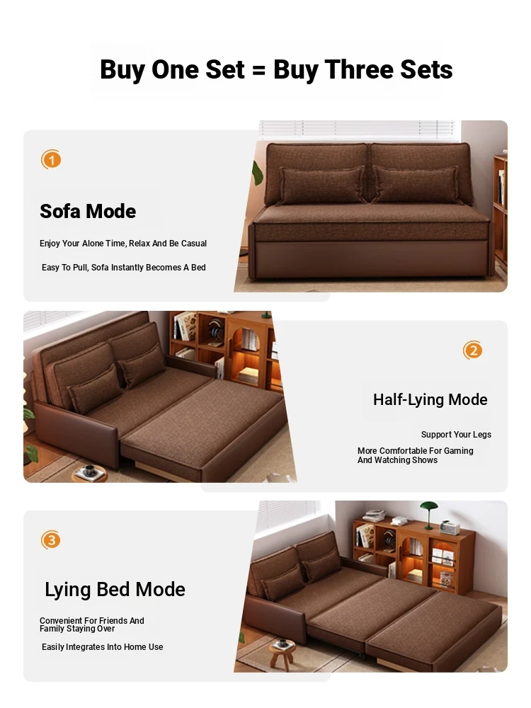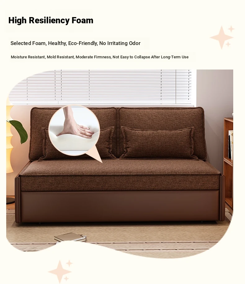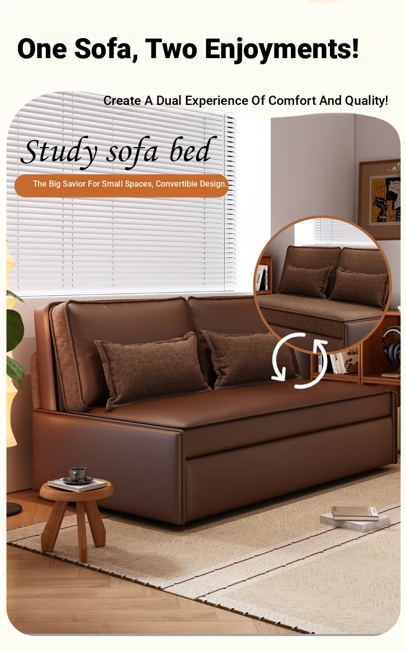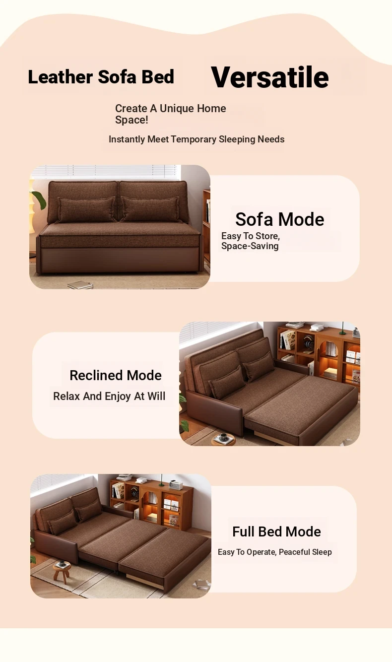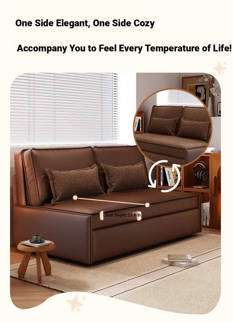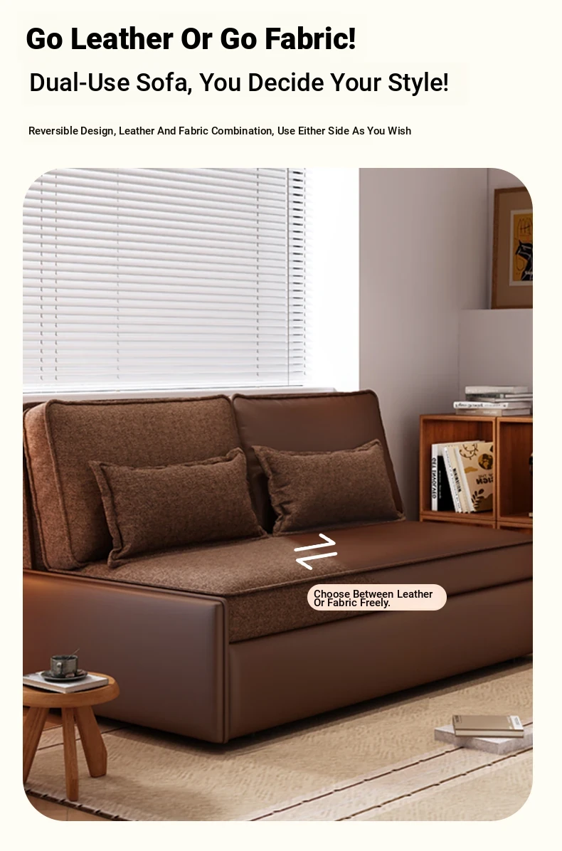 Yisheng Star Nest Solid Wood Sofa Bed - Modern Minimalist Folding Multifunctional Sofa in Two-Tone Leather Fabric for Living Room, Perfect for Style and Comfort!