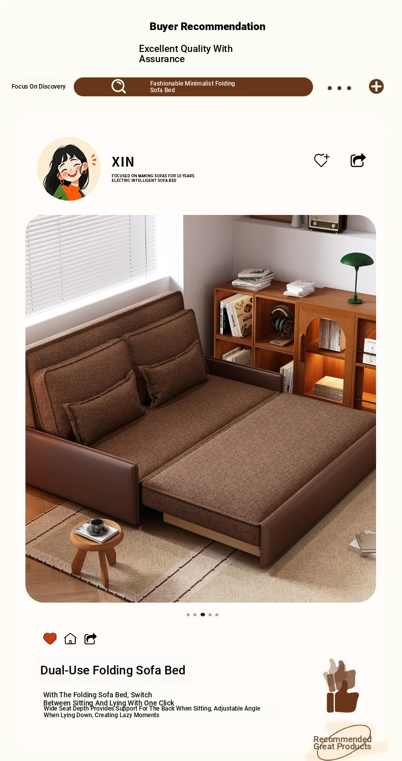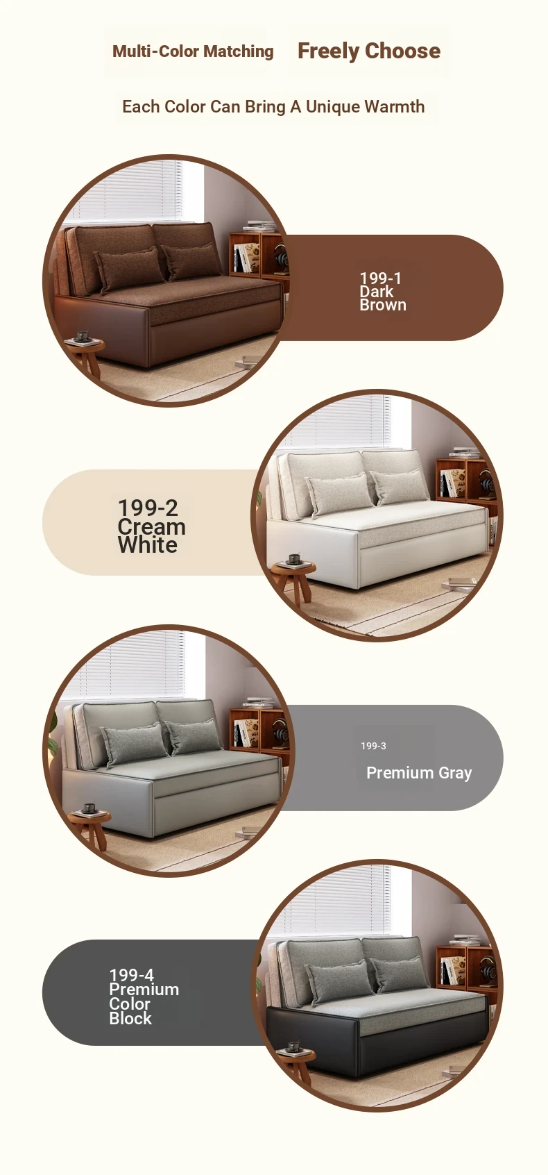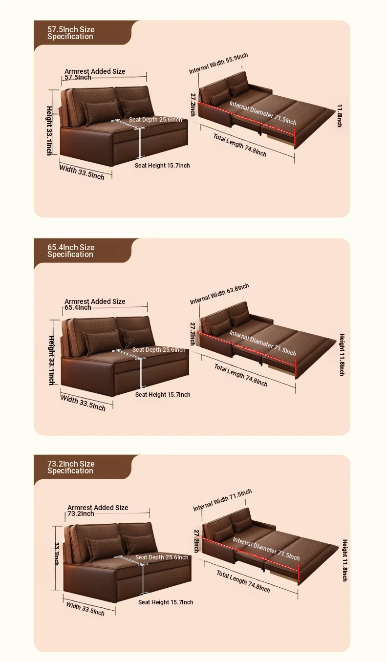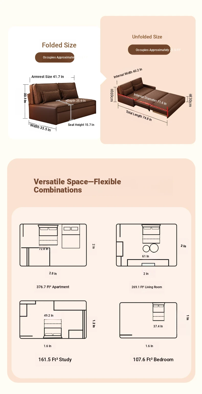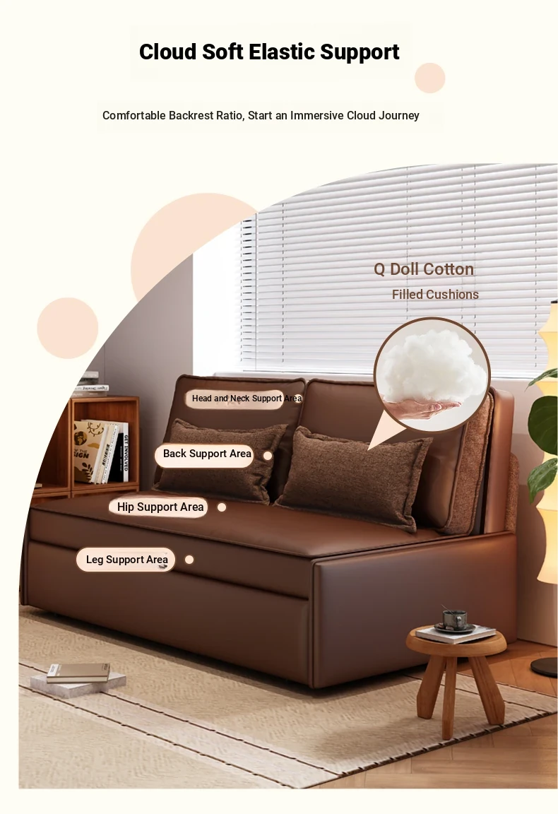 Yisheng Star Nest Solid Wood Sofa Bed - Modern Minimalist Folding Multifunctional Sofa in Two-Tone Leather Fabric for Living Room, Perfect for Style and Comfort!