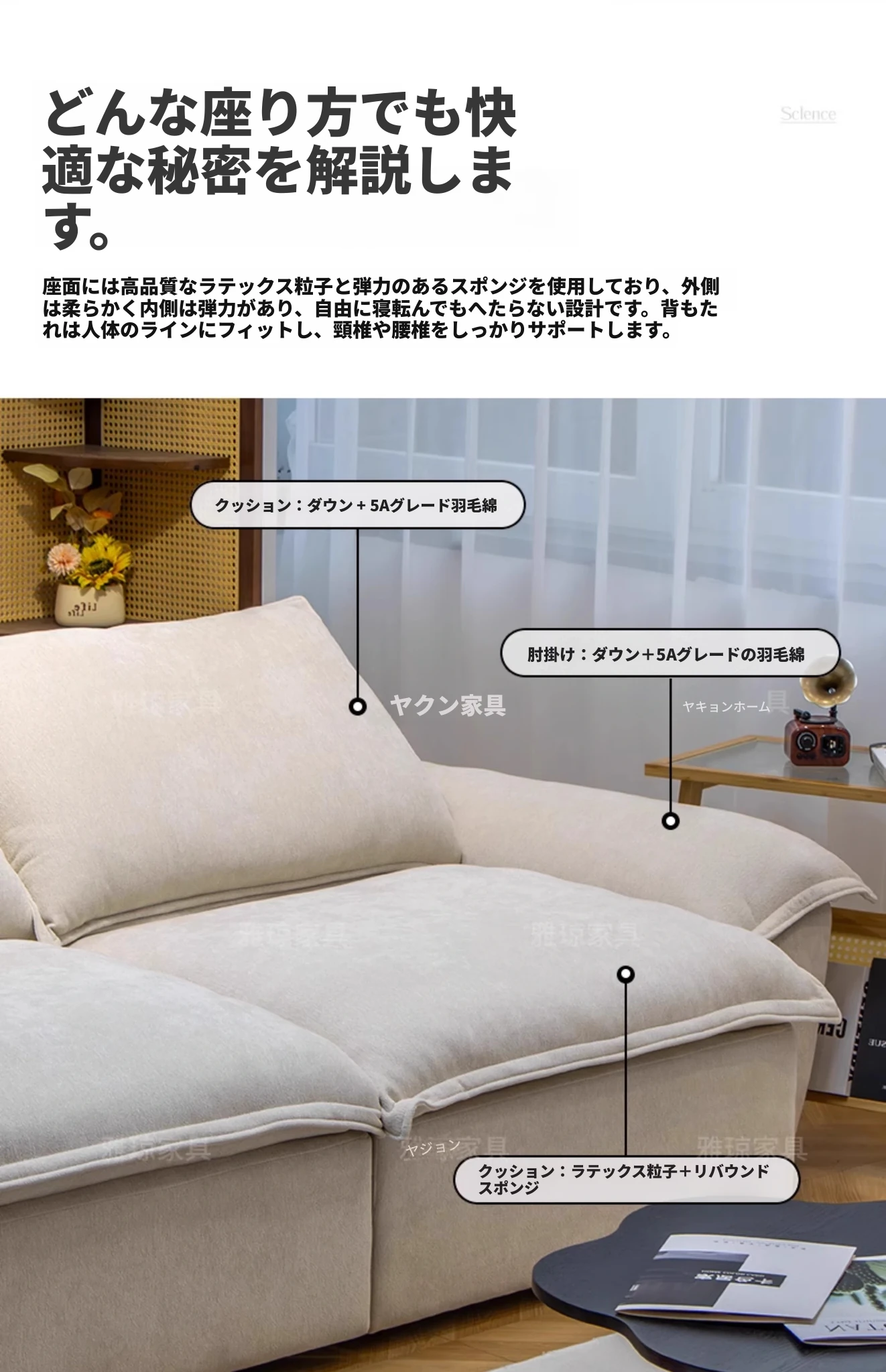 【肌触りの良いシェニール+ラテックスクッション+リバウンドスポンジ】