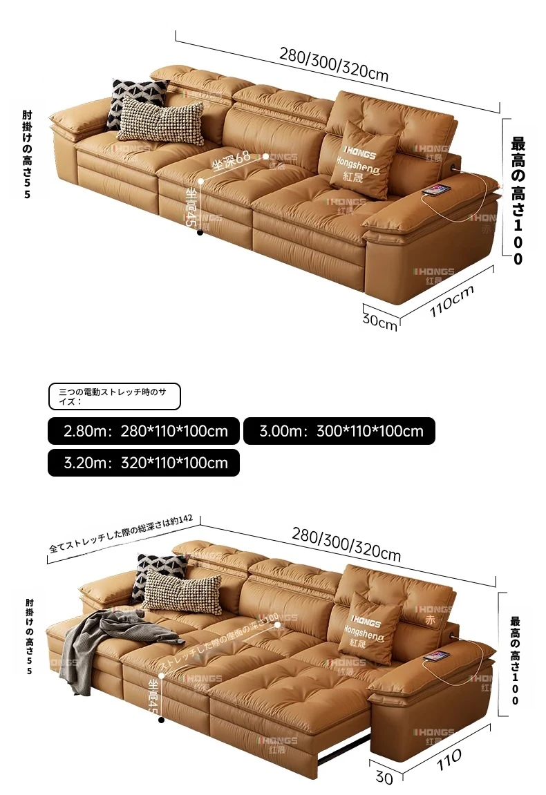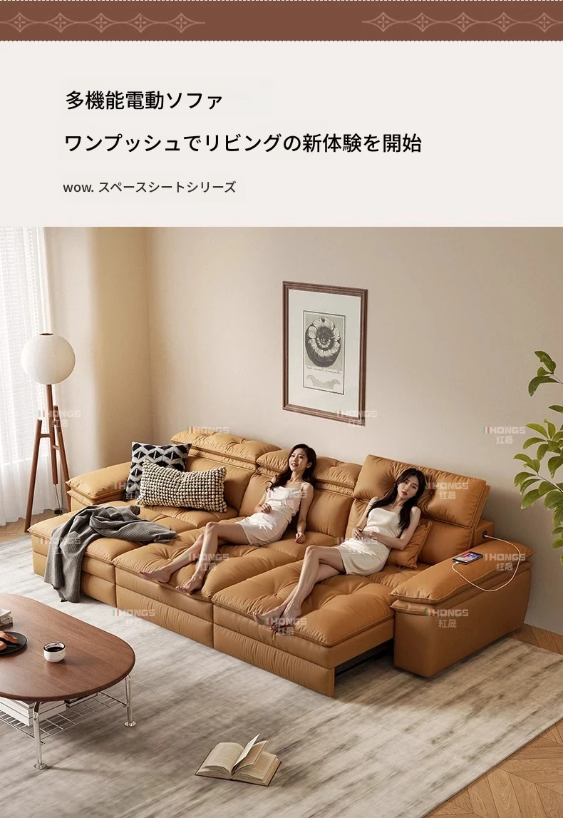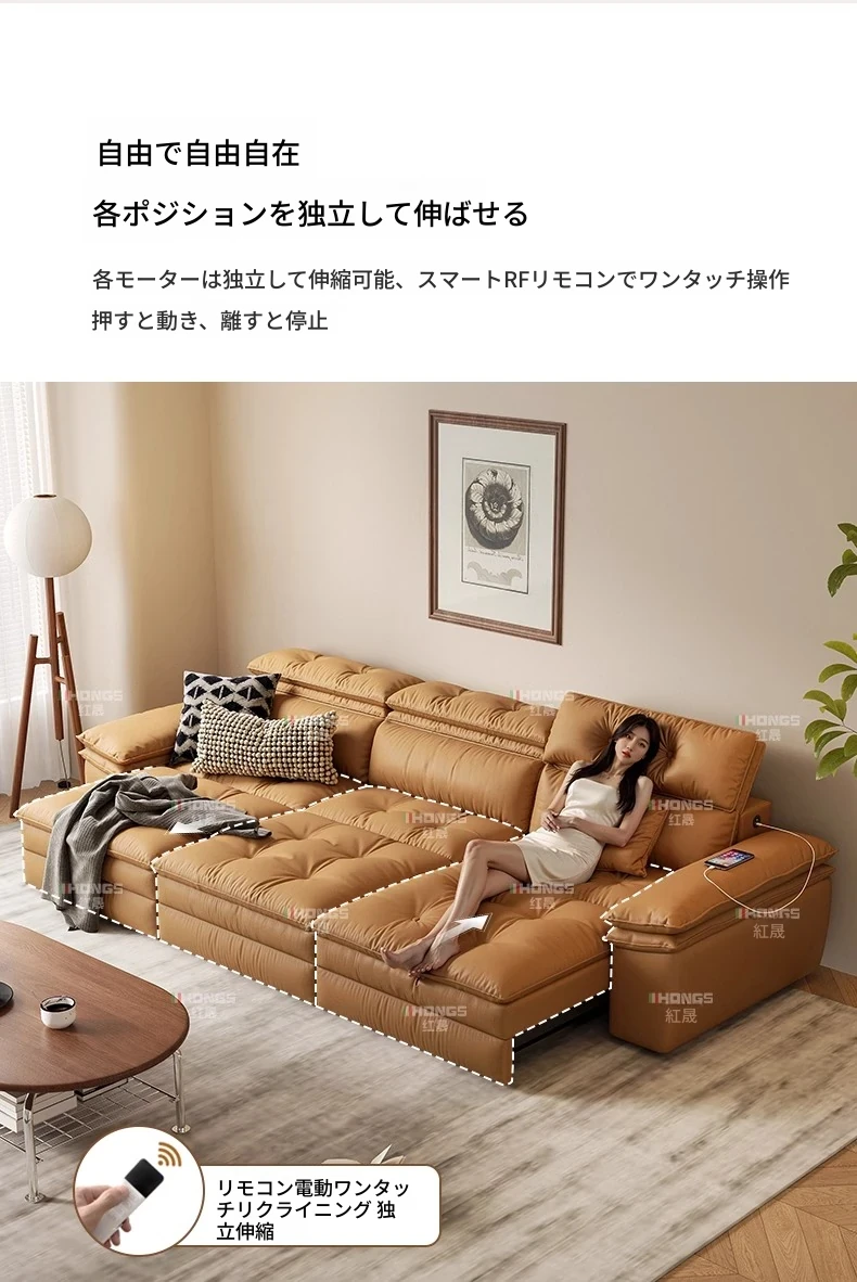 2025年最新モデル!電動伸縮ソファベッド - 小型リビングに最適、壁にぴったりフィットする真皮製ソファ!快適な調整機能搭載で、くつろぎのひとときをお届けします。