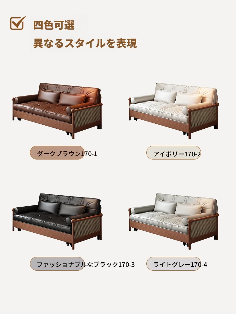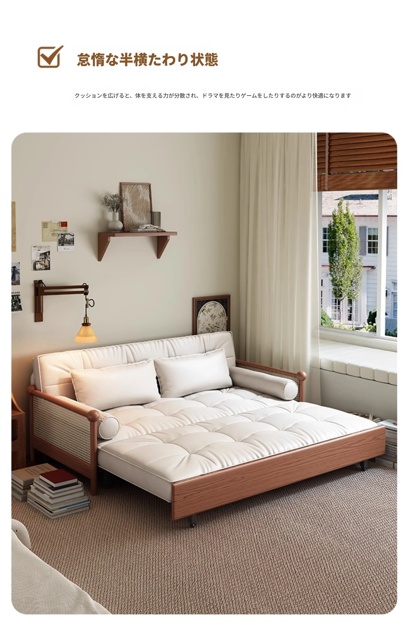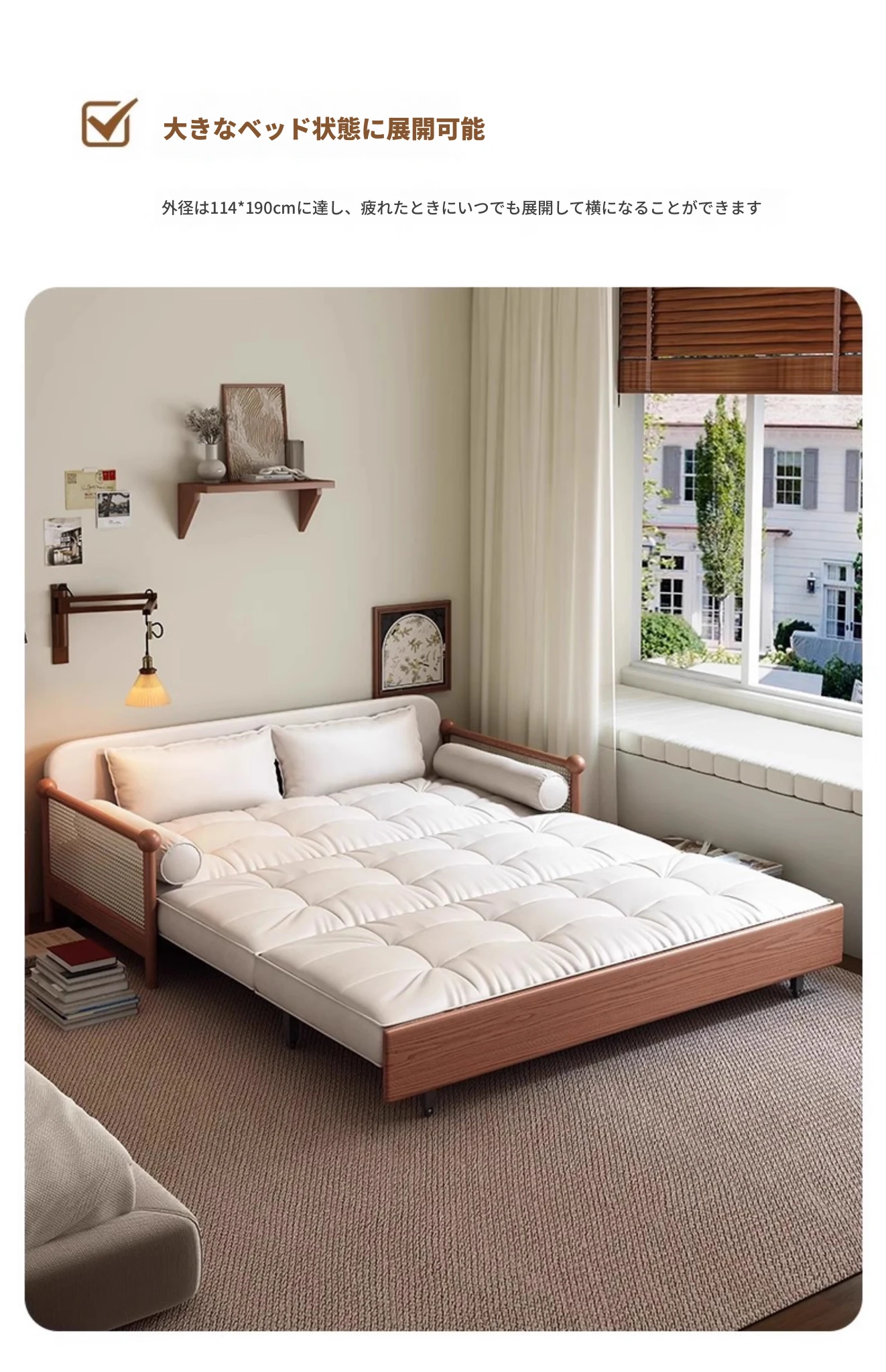2025年新作!高級本革ソファベッド - 折りたたみ式、二役をこなす!小型住宅に最適なダブル機能、伸縮可能な無垢材ソファで、快適なリビング空間を実現。