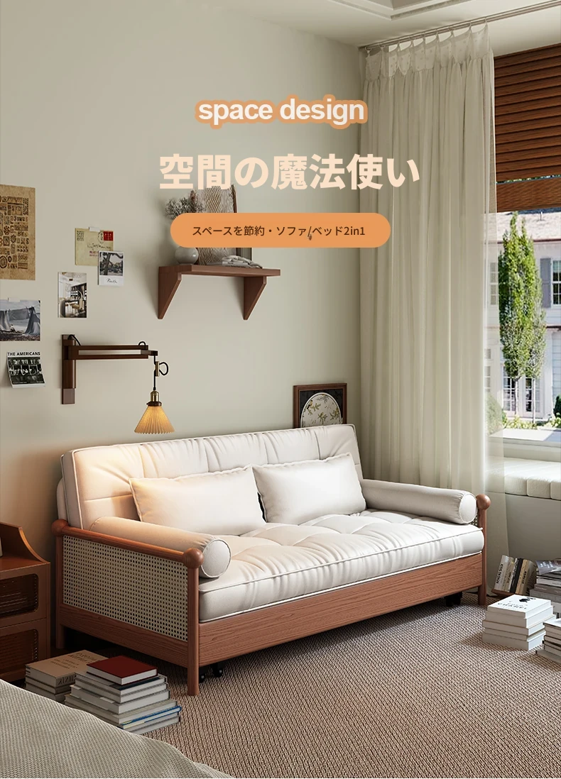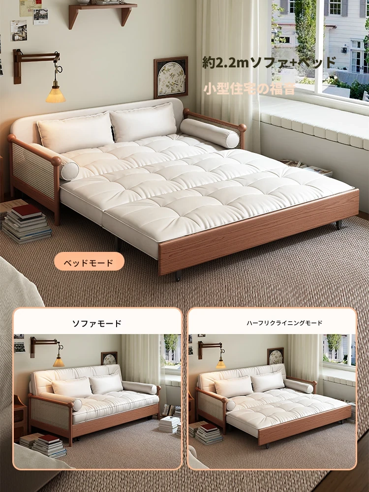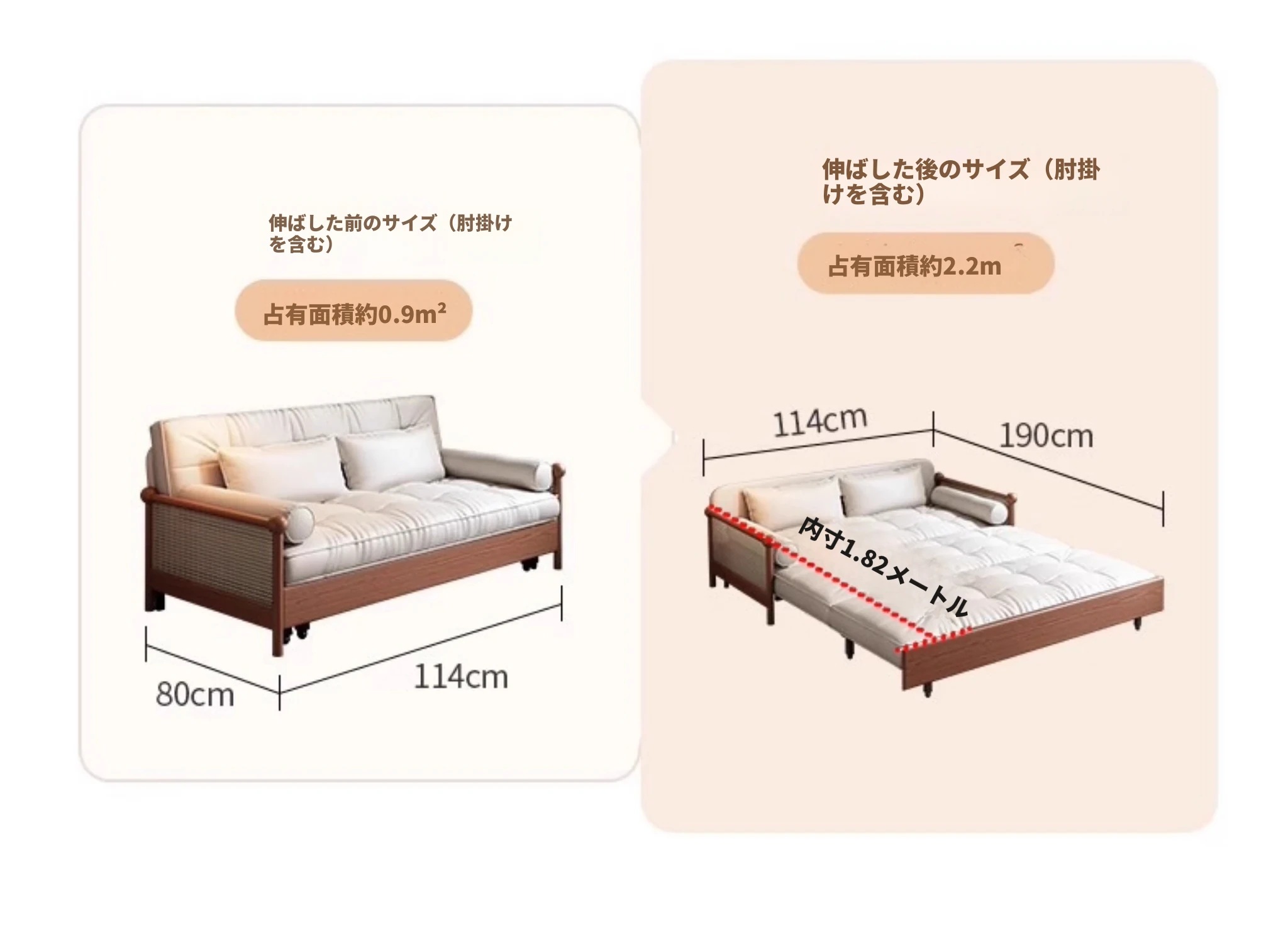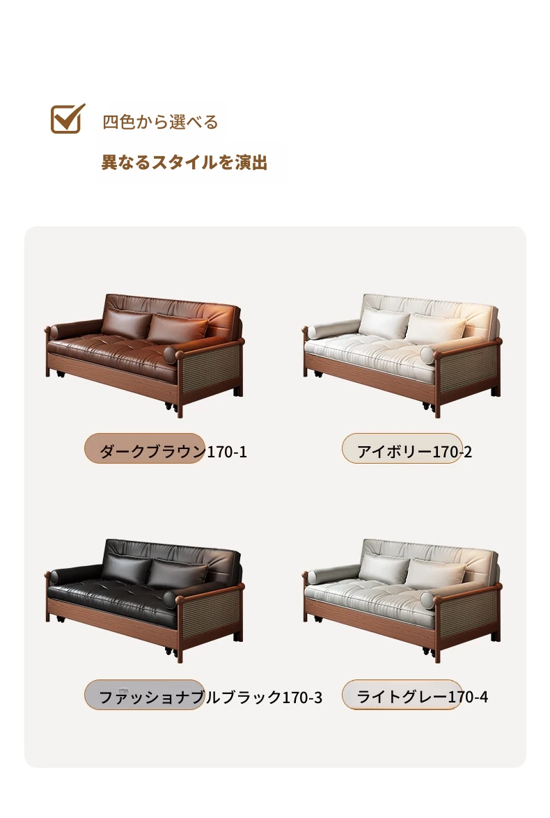 2025年新作!高級本革ソファベッド - 折りたたみ式、二役をこなす!小型住宅に最適なダブル機能、伸縮可能な無垢材ソファで、快適なリビング空間を実現。