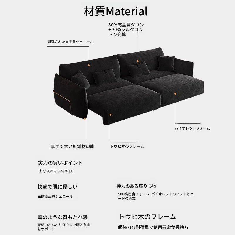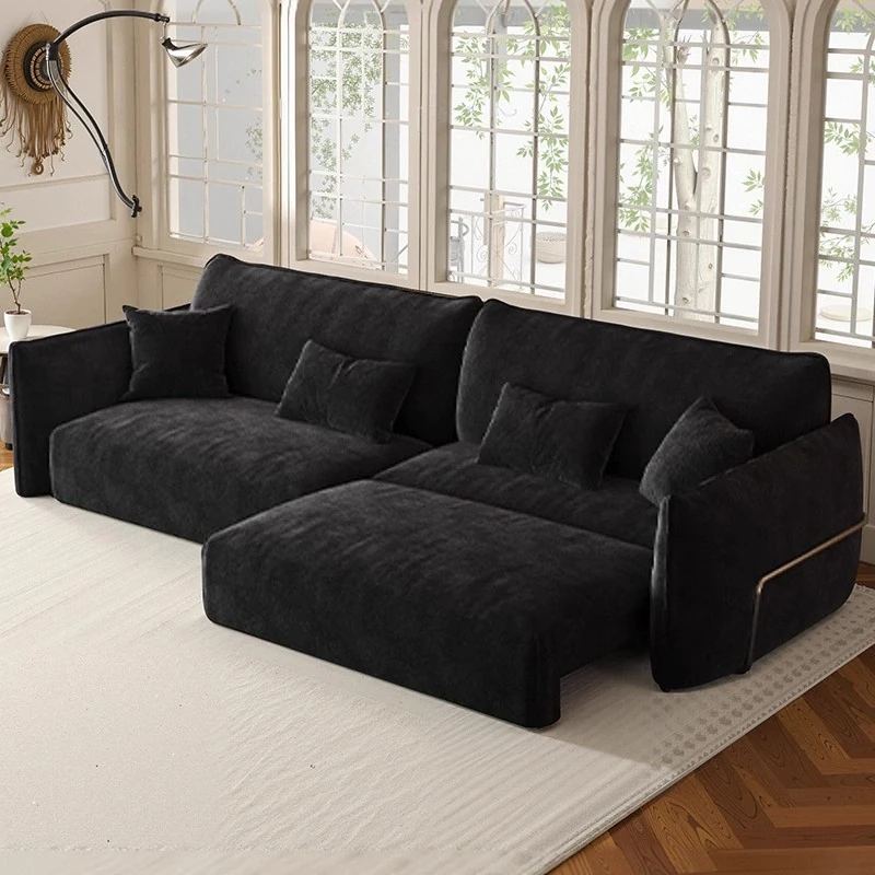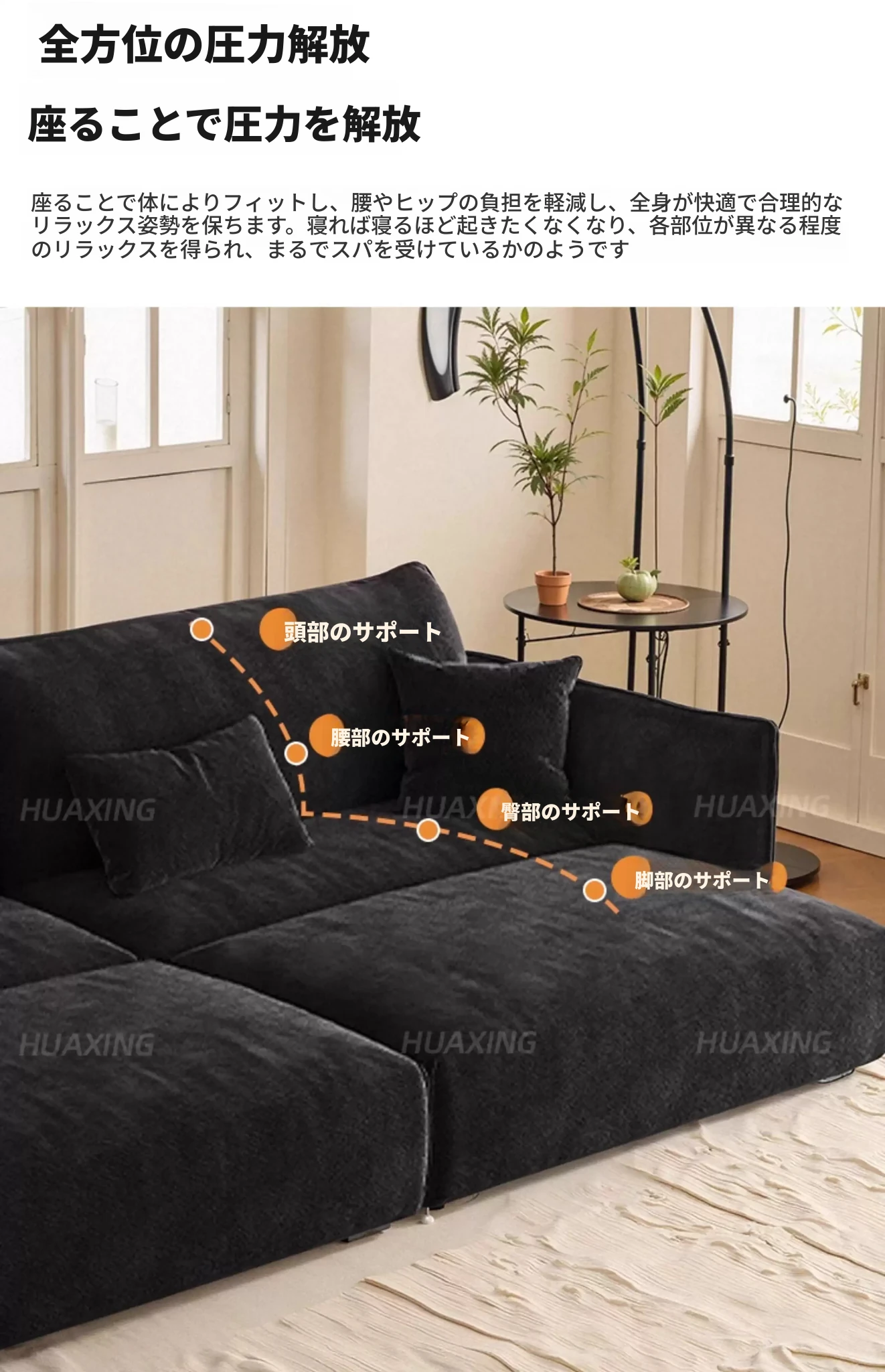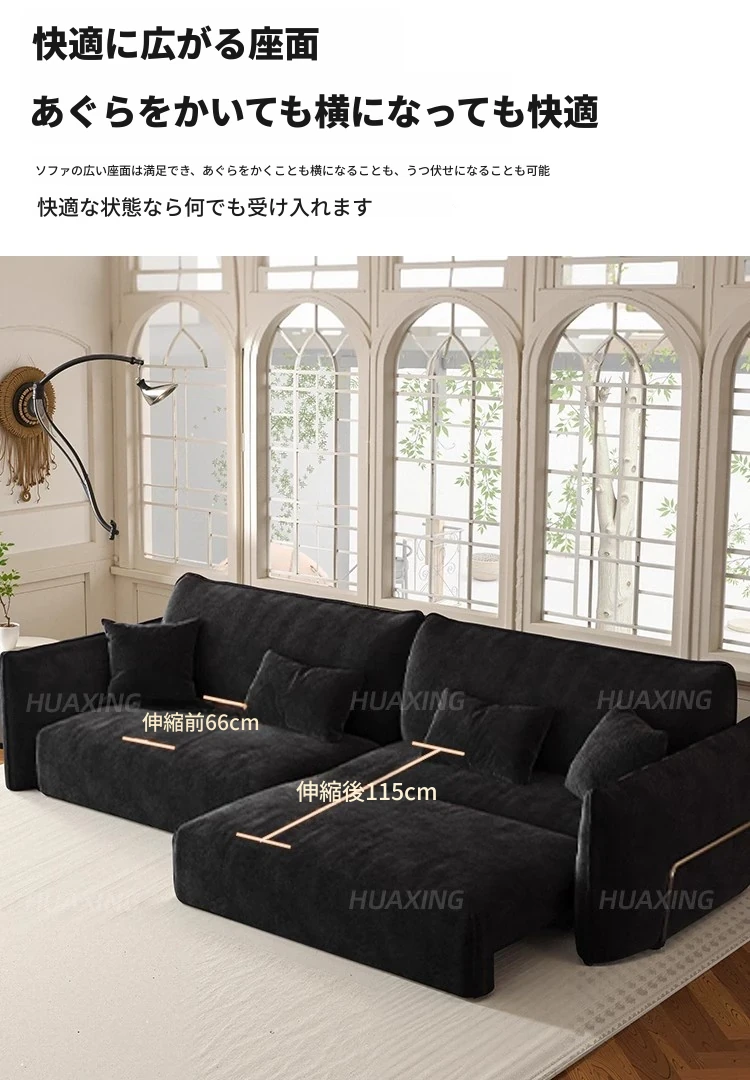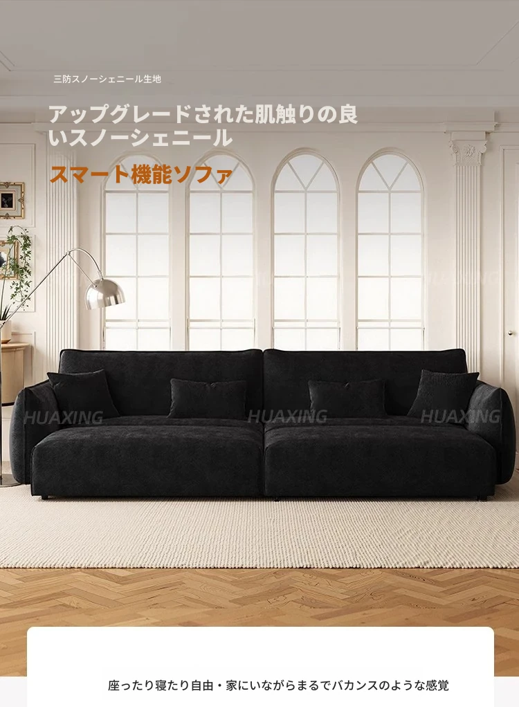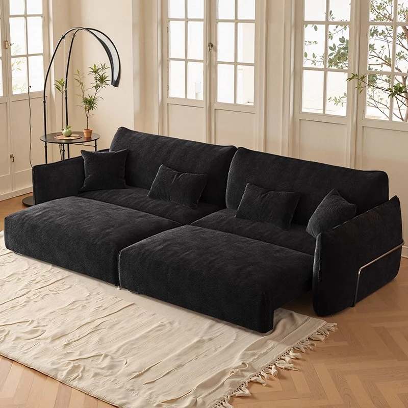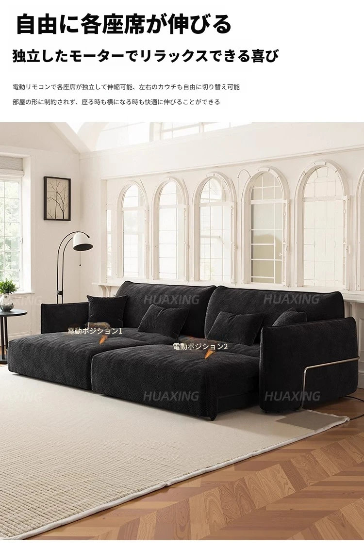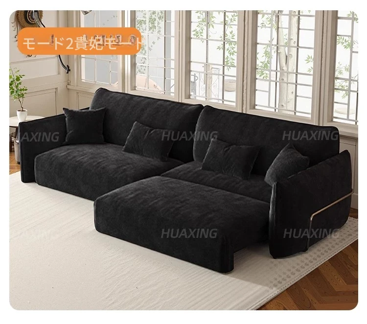 バウハウス風 チェニール布製 電動ソファベッド 大小兼用 レトロデザイン 伸縮可能な ストレートタイプ ソファで快適なリビング空間を実現!
