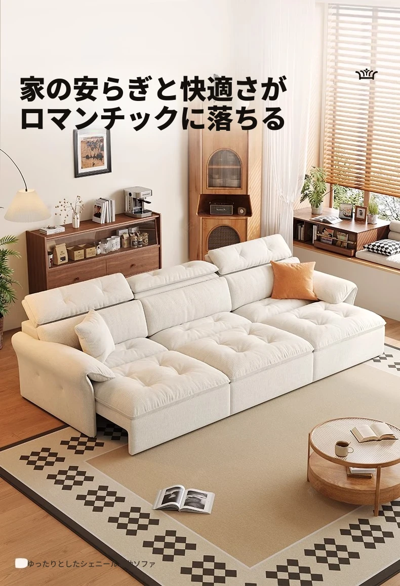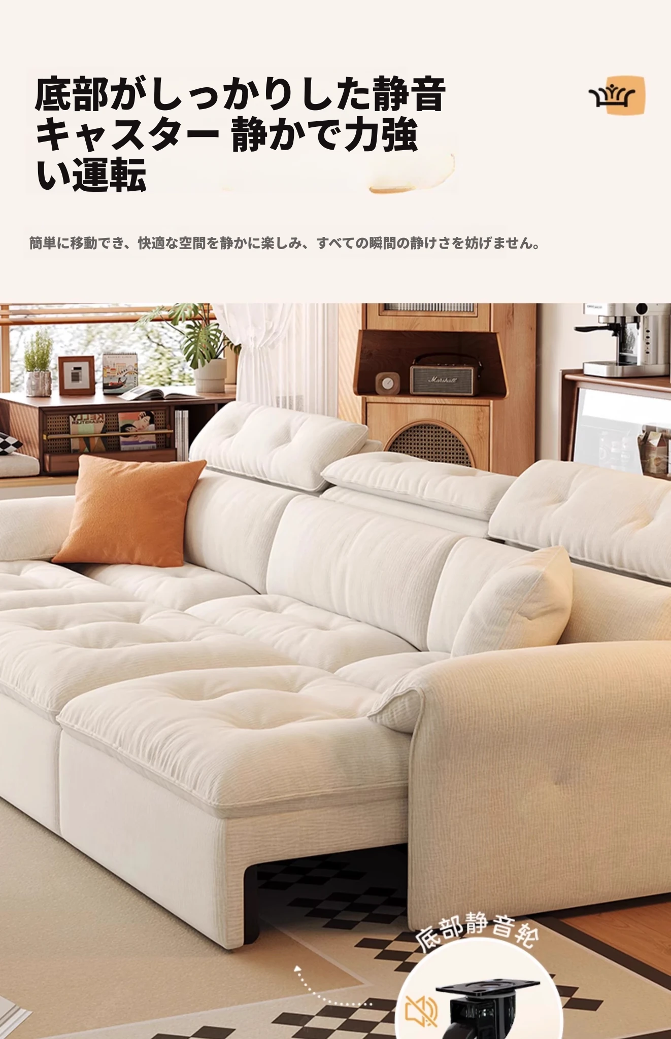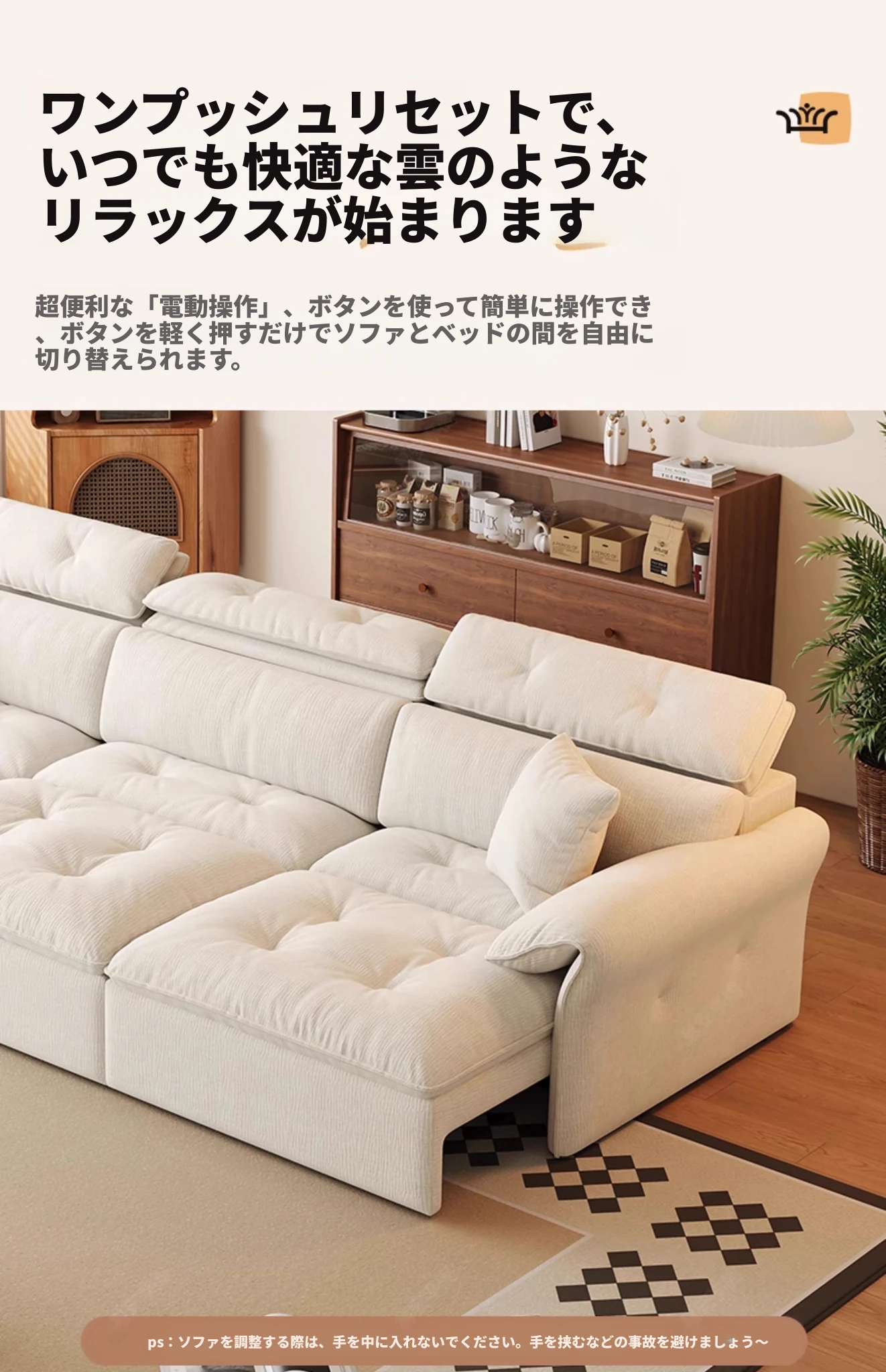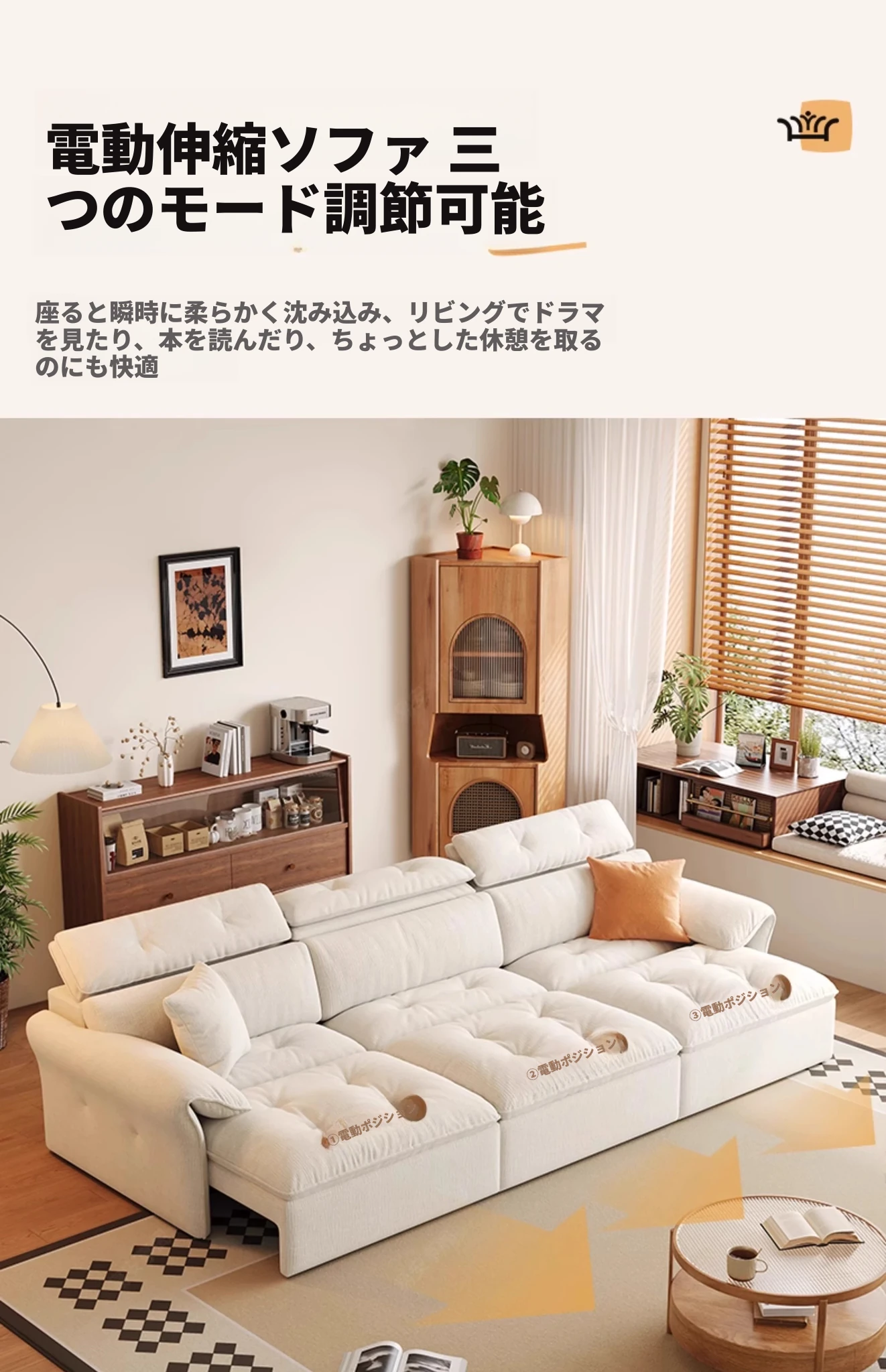 新作!雪尼尔電動ソファベッド、コンパクトサイズで省スペース!和風クリームスタイルの多機能リクライニングソファ、スタイリッシュなインテリアにぴったり!