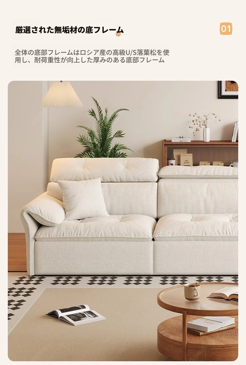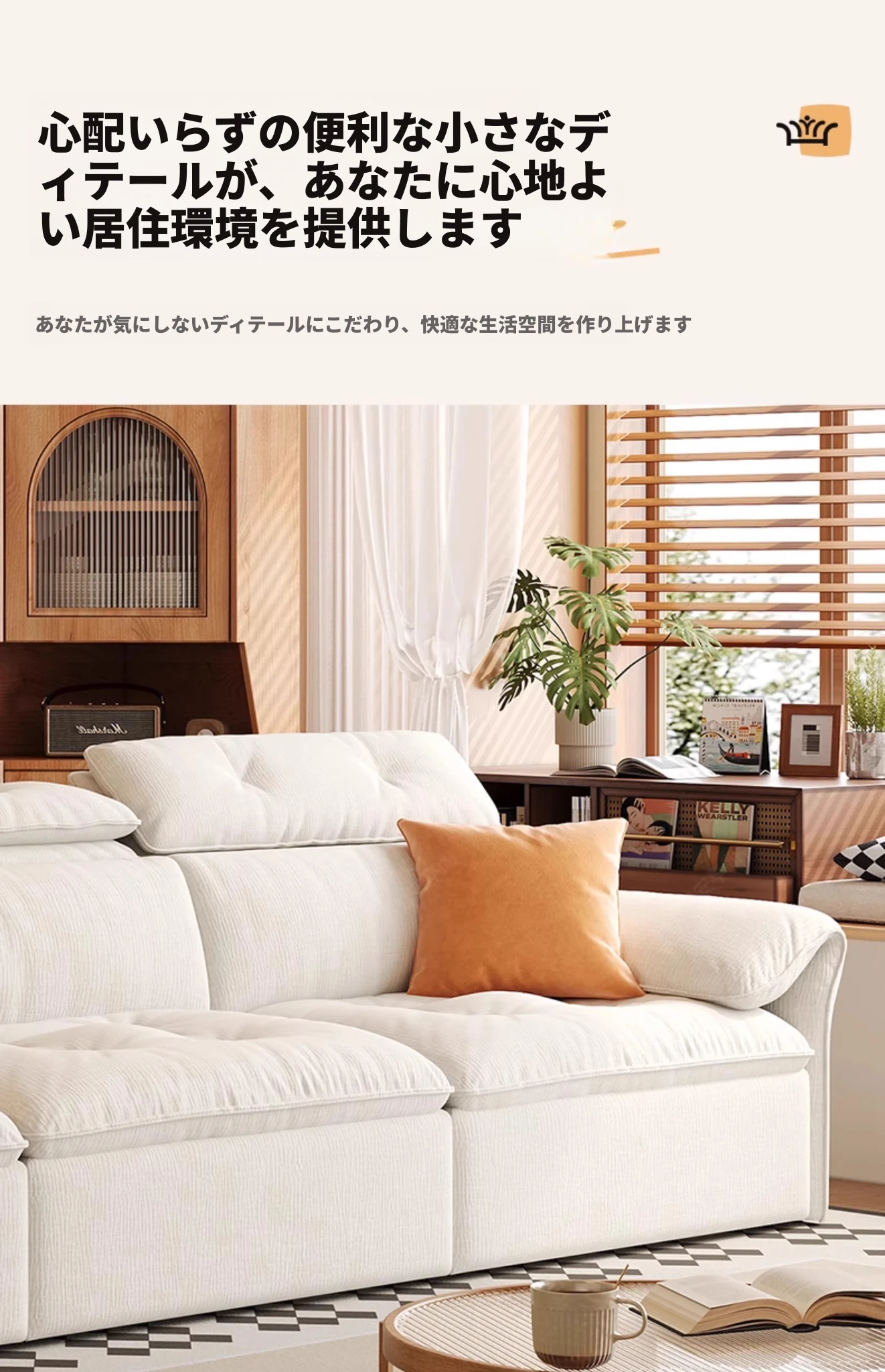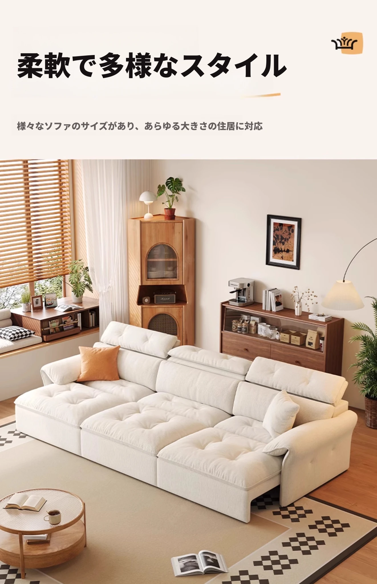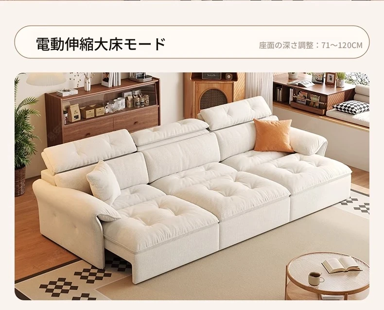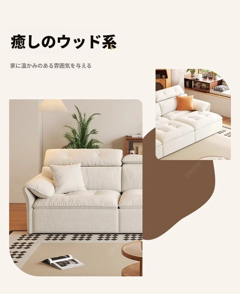 新作!雪尼尔電動ソファベッド、コンパクトサイズで省スペース!和風クリームスタイルの多機能リクライニングソファ、スタイリッシュなインテリアにぴったり!