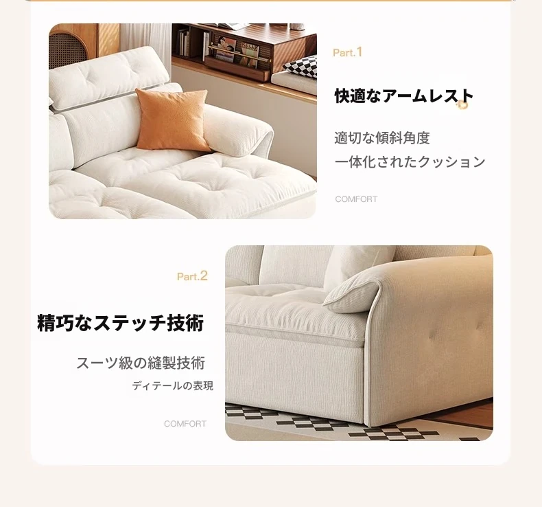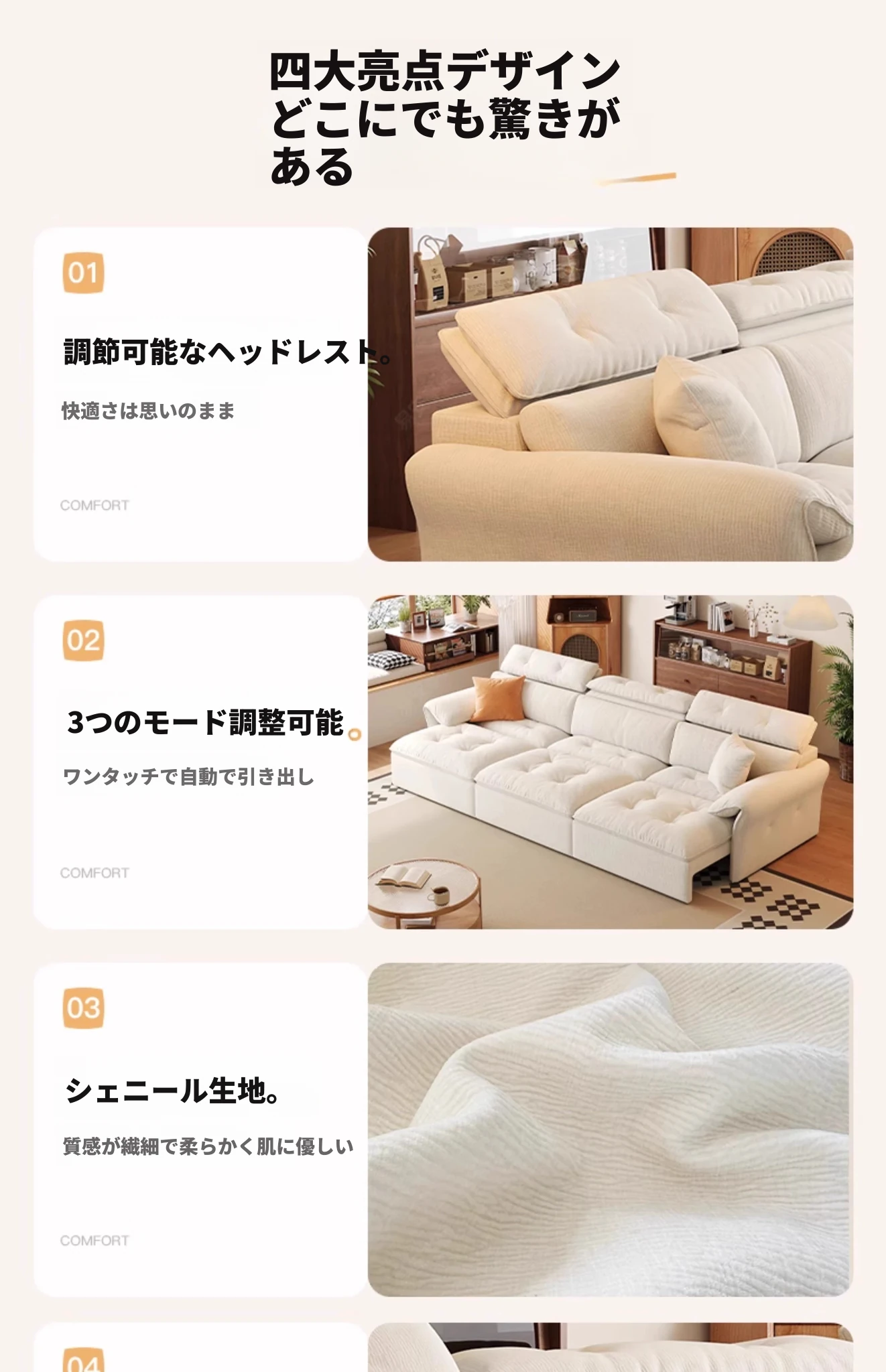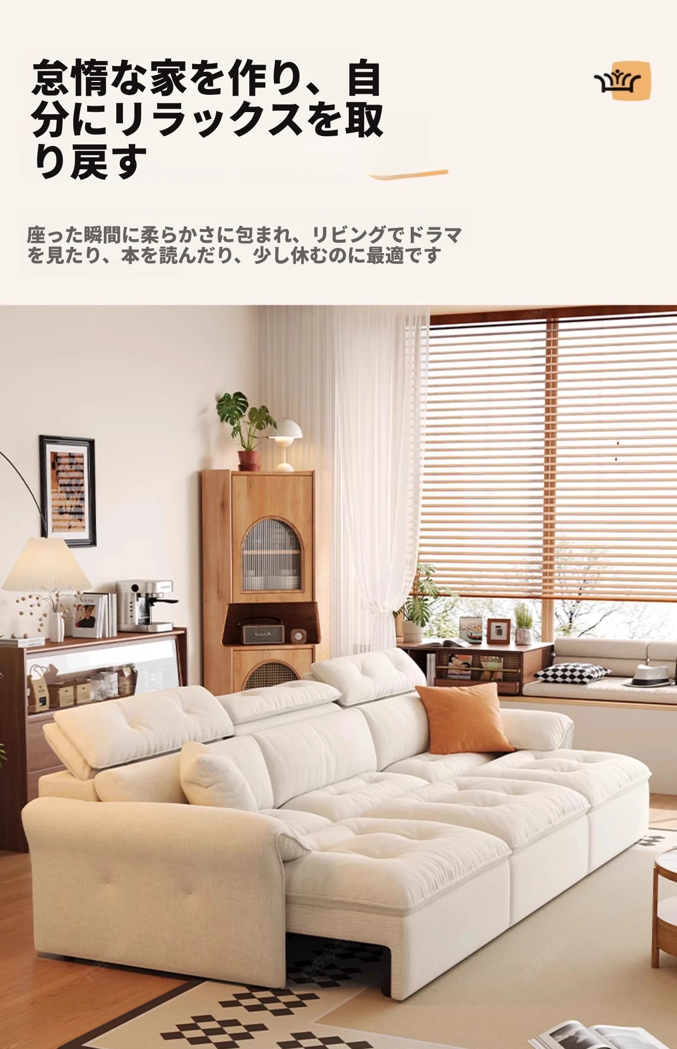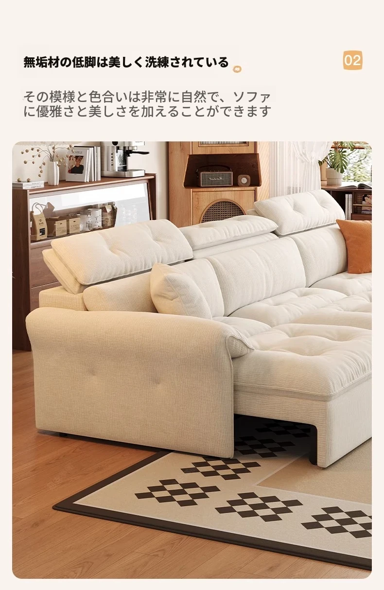 新作!雪尼尔電動ソファベッド、コンパクトサイズで省スペース!和風クリームスタイルの多機能リクライニングソファ、スタイリッシュなインテリアにぴったり!