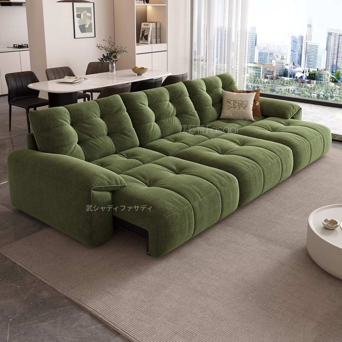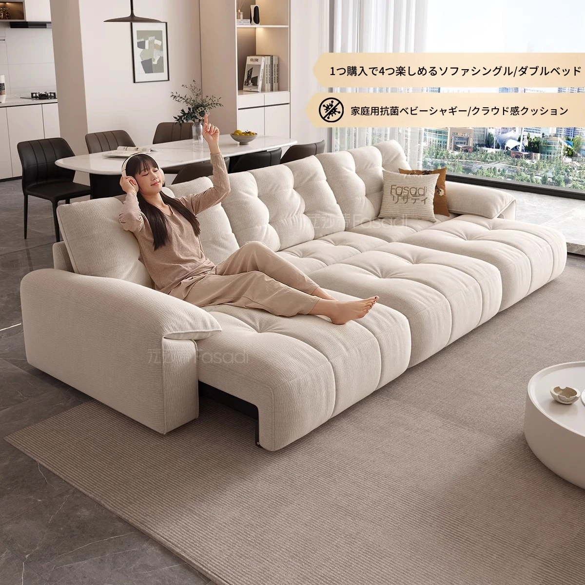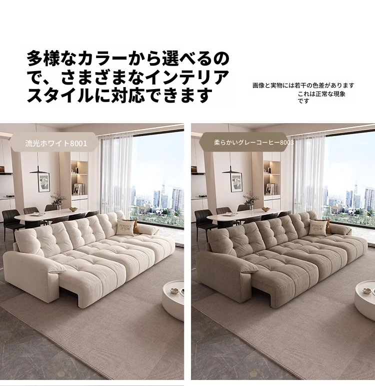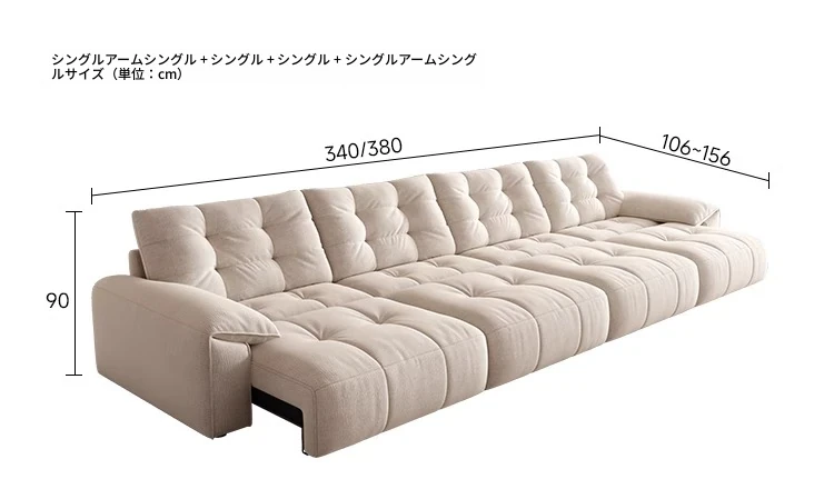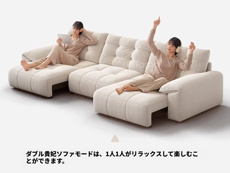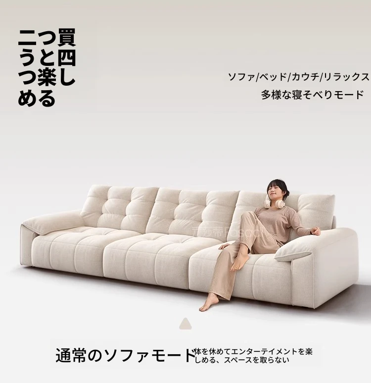 電動ソファベッド 二通りの使い方ができる!柔らかな布製、クリーム風デザインのリビング用折りたたみ式ソファ。壁にぴったりフィット、伸縮機能付きで快適な空間を実現!