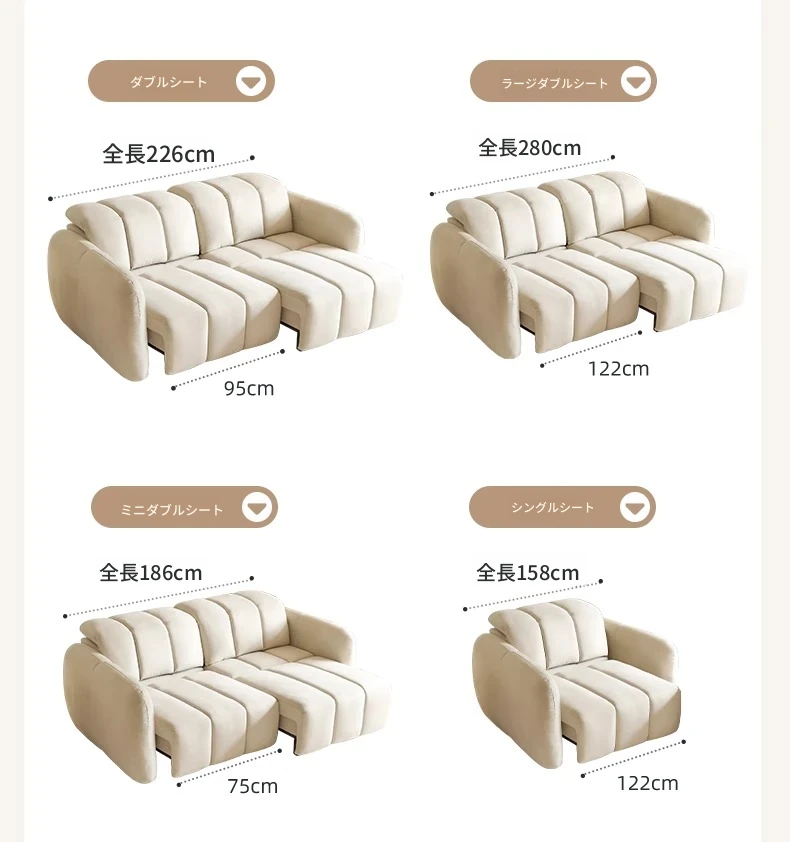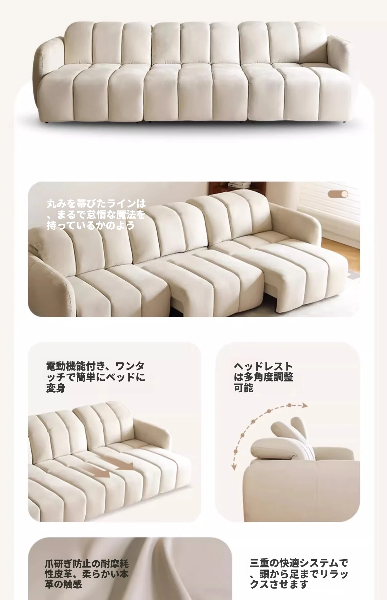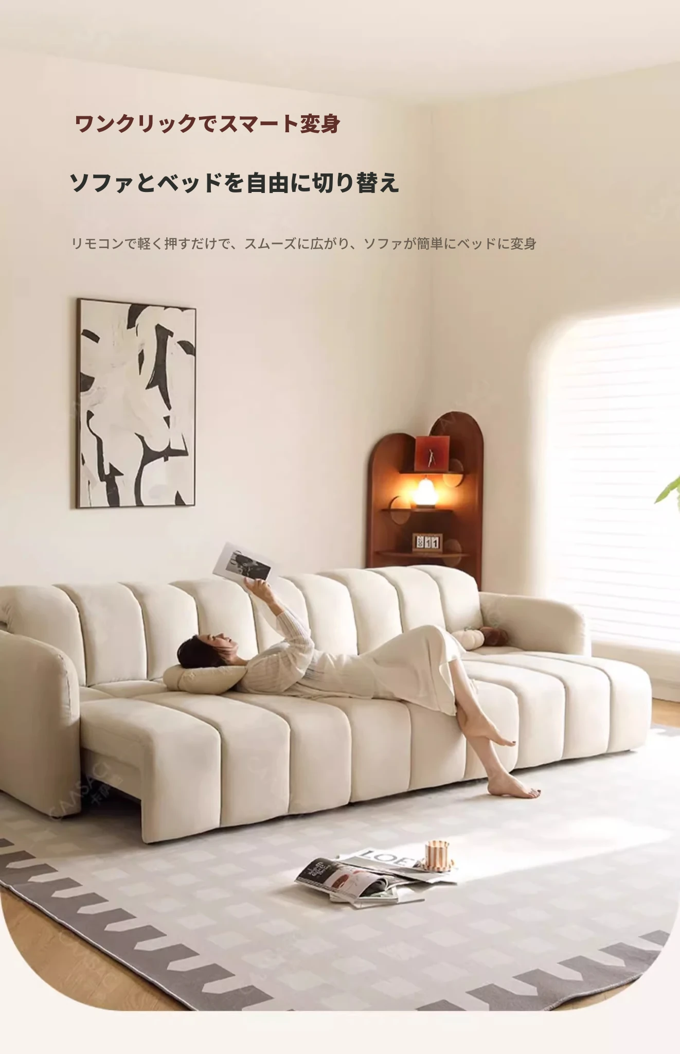クリーミーな風合いのピアノキーソファ!多機能電動伸縮&調整可能、猫の爪にも優しい布製フロッキングソファベッド。リラックス空間を演出し、快適な睡眠をサポートします!
