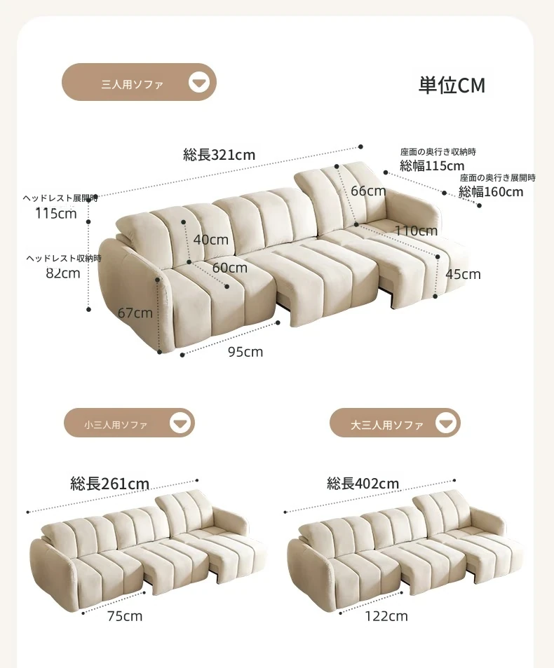 4.02メートルトリプルソファ【トリプル電動伸縮】