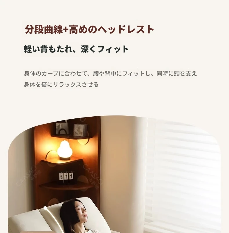 【マットなベルベット生地+5段調節可能なヘッドレスト】